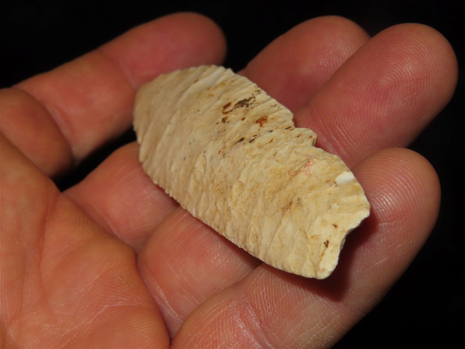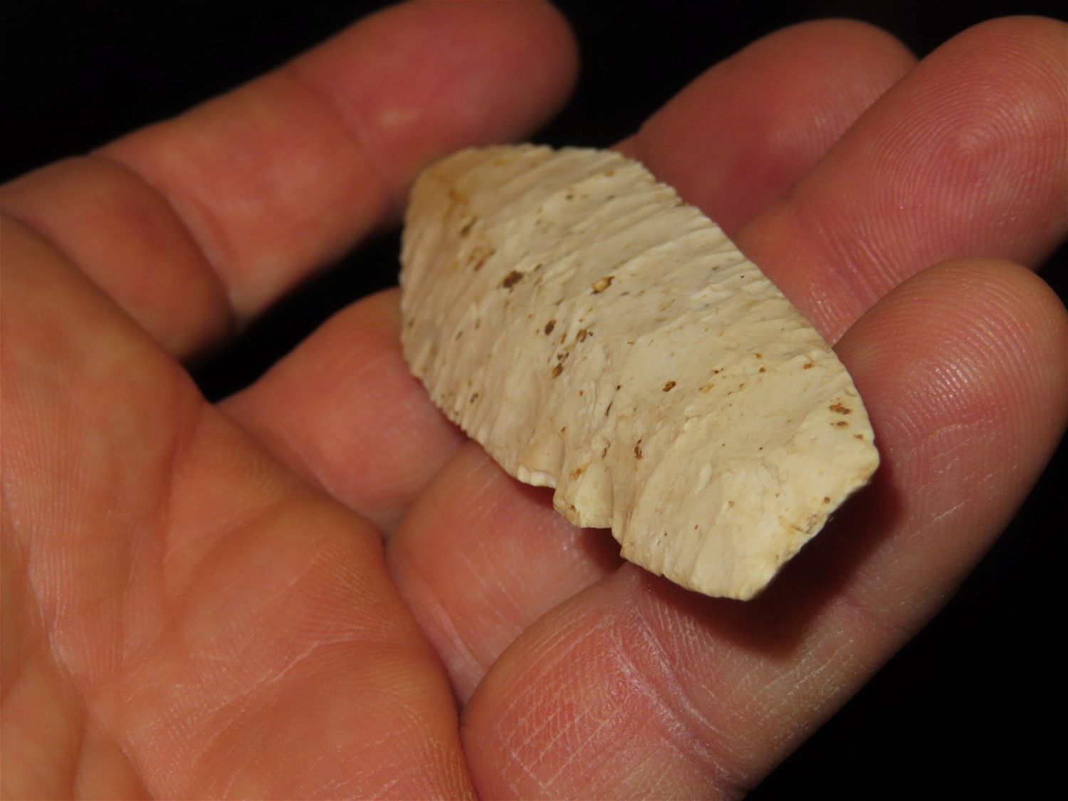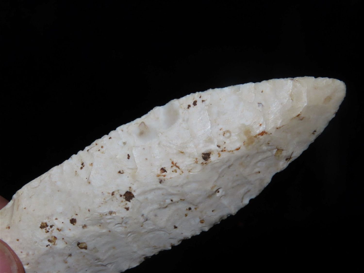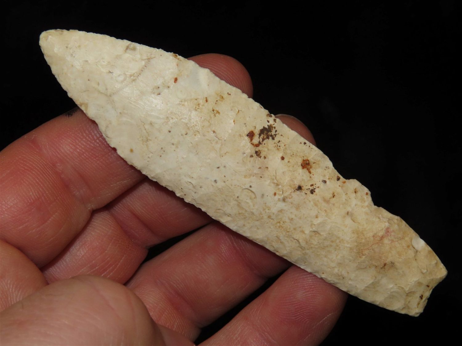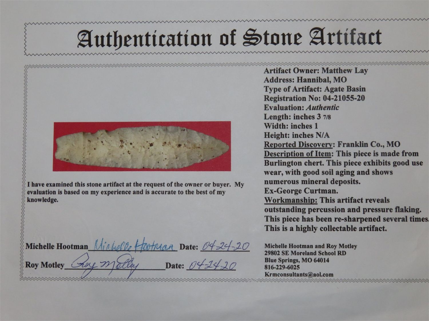 3.7/8" Agate Basin, Motley COA, Found in Franklin CO MO. Burlington Chert, Very well flaked with nice median ridge. Ex George Curtman