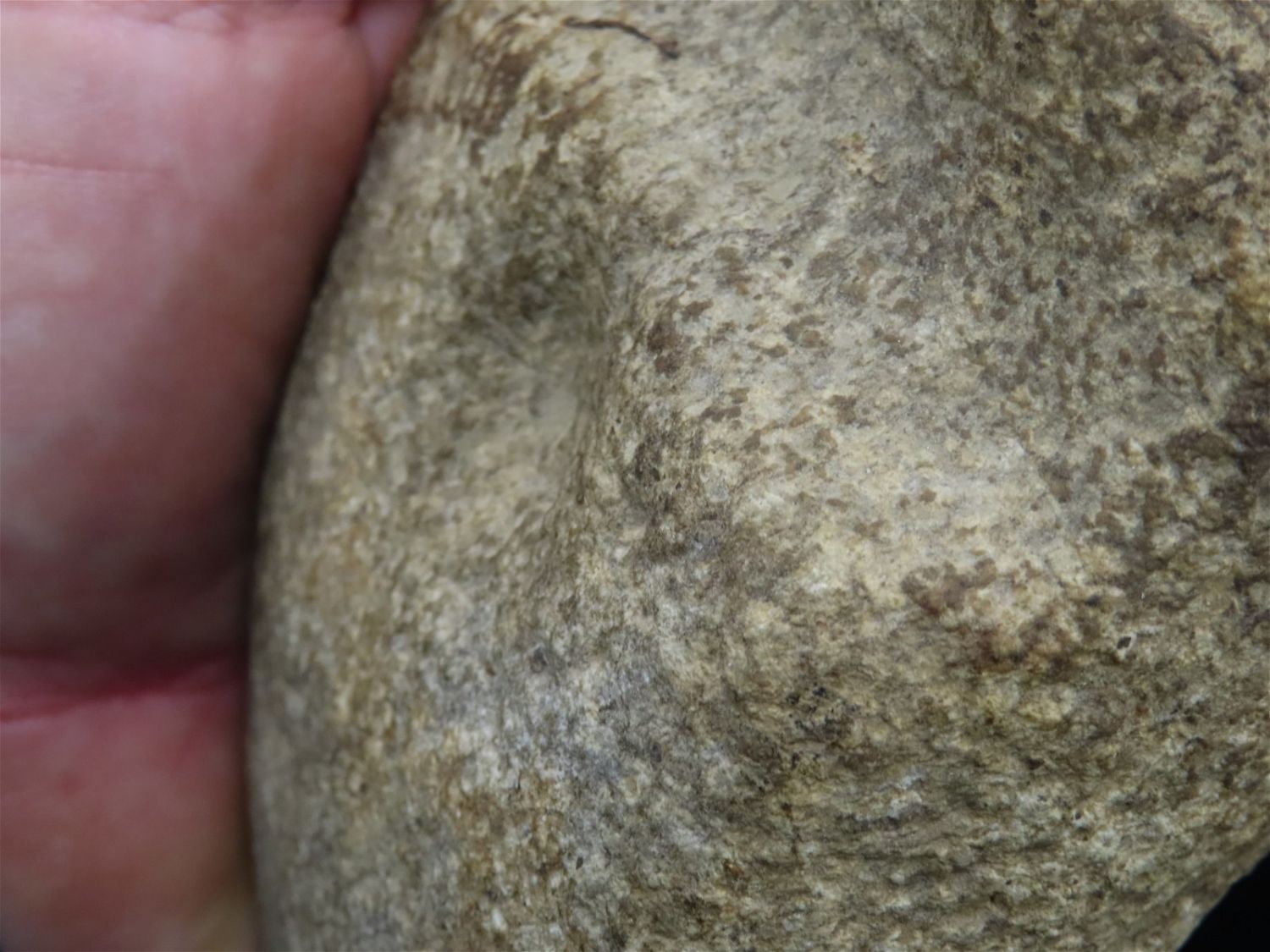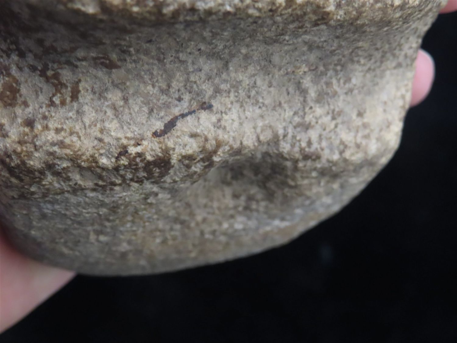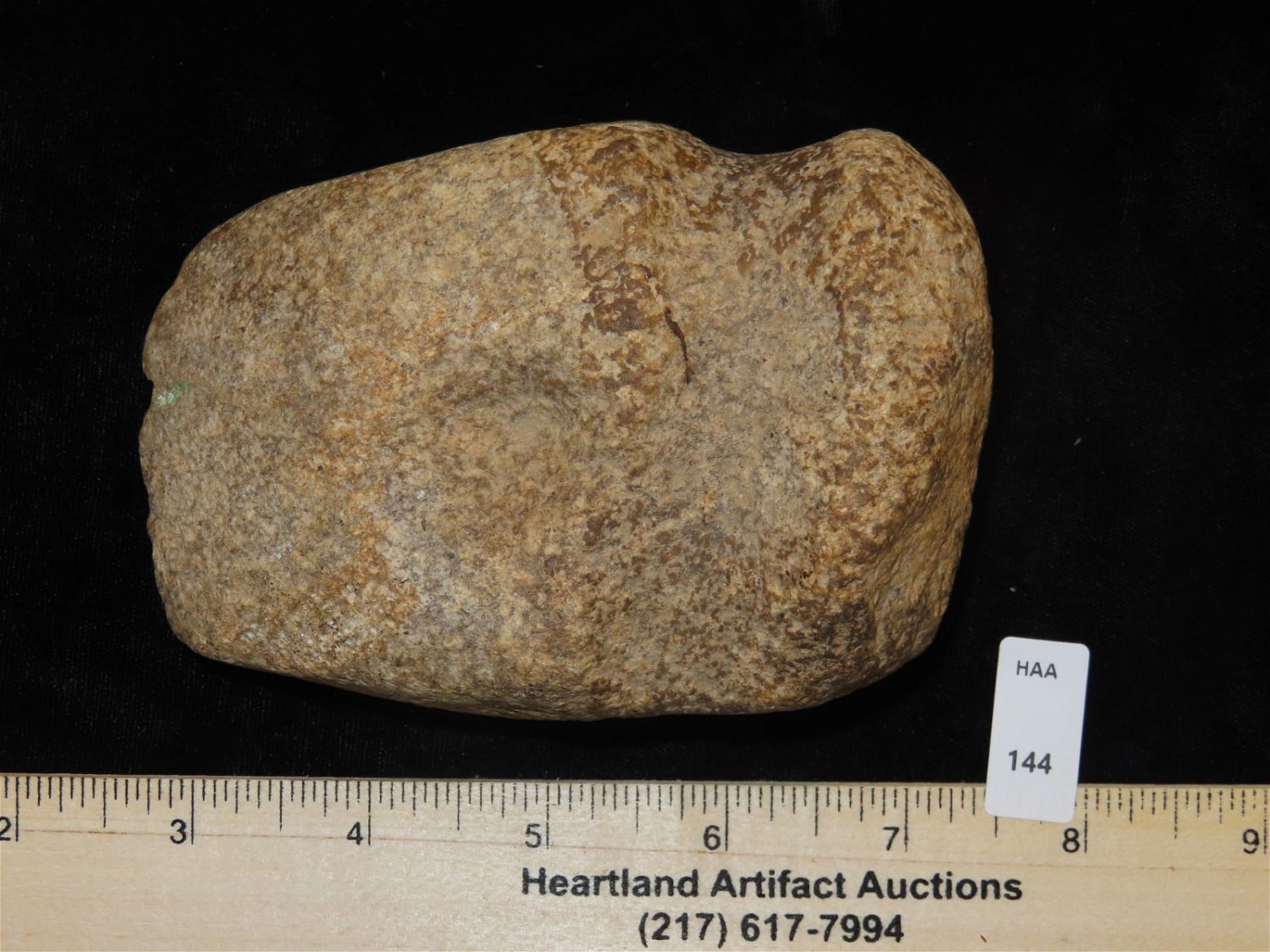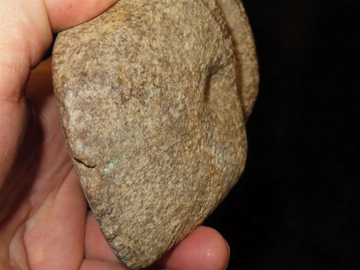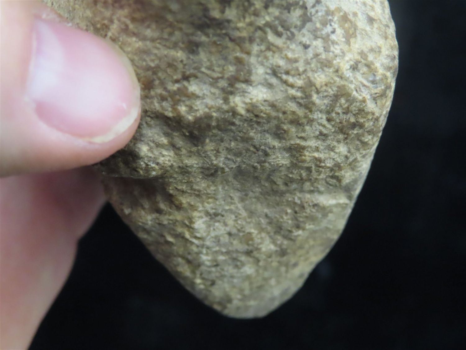 4.1/2" True Pocket Axe. 3/4 Groove. Has 3 intentially made dimples. One on each face and one one the top of the axe. Found in Illinois.