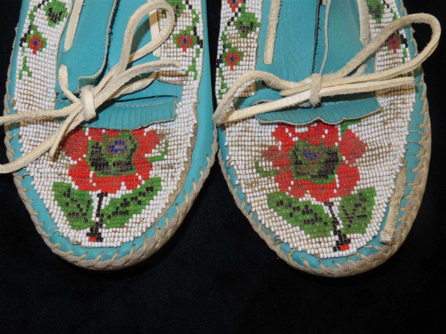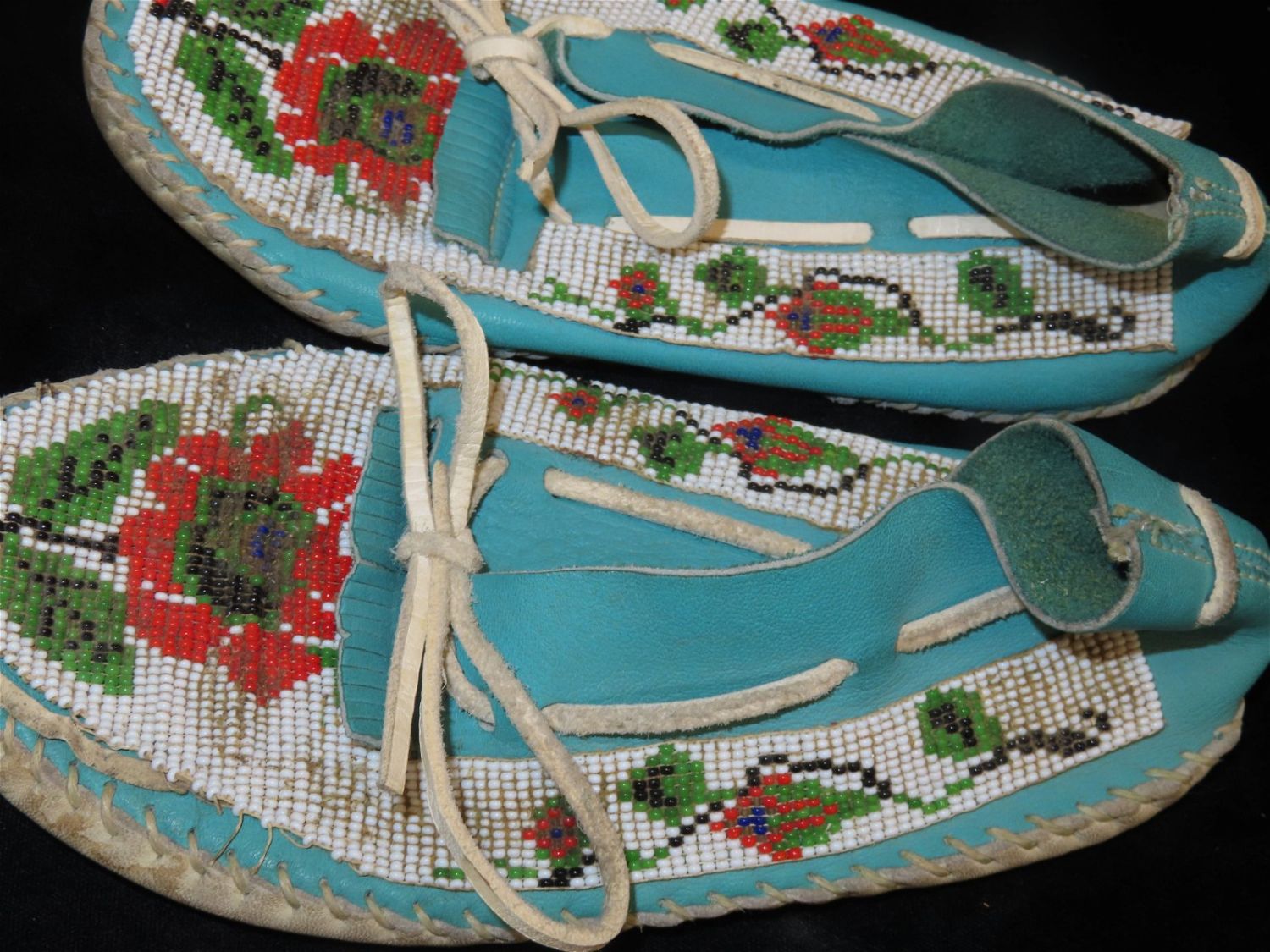 Very Pretty Ladies Moccasin Pair, Colorful Flower Beaded Patern, Native American Moccasins