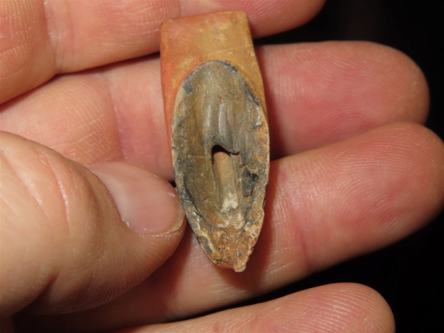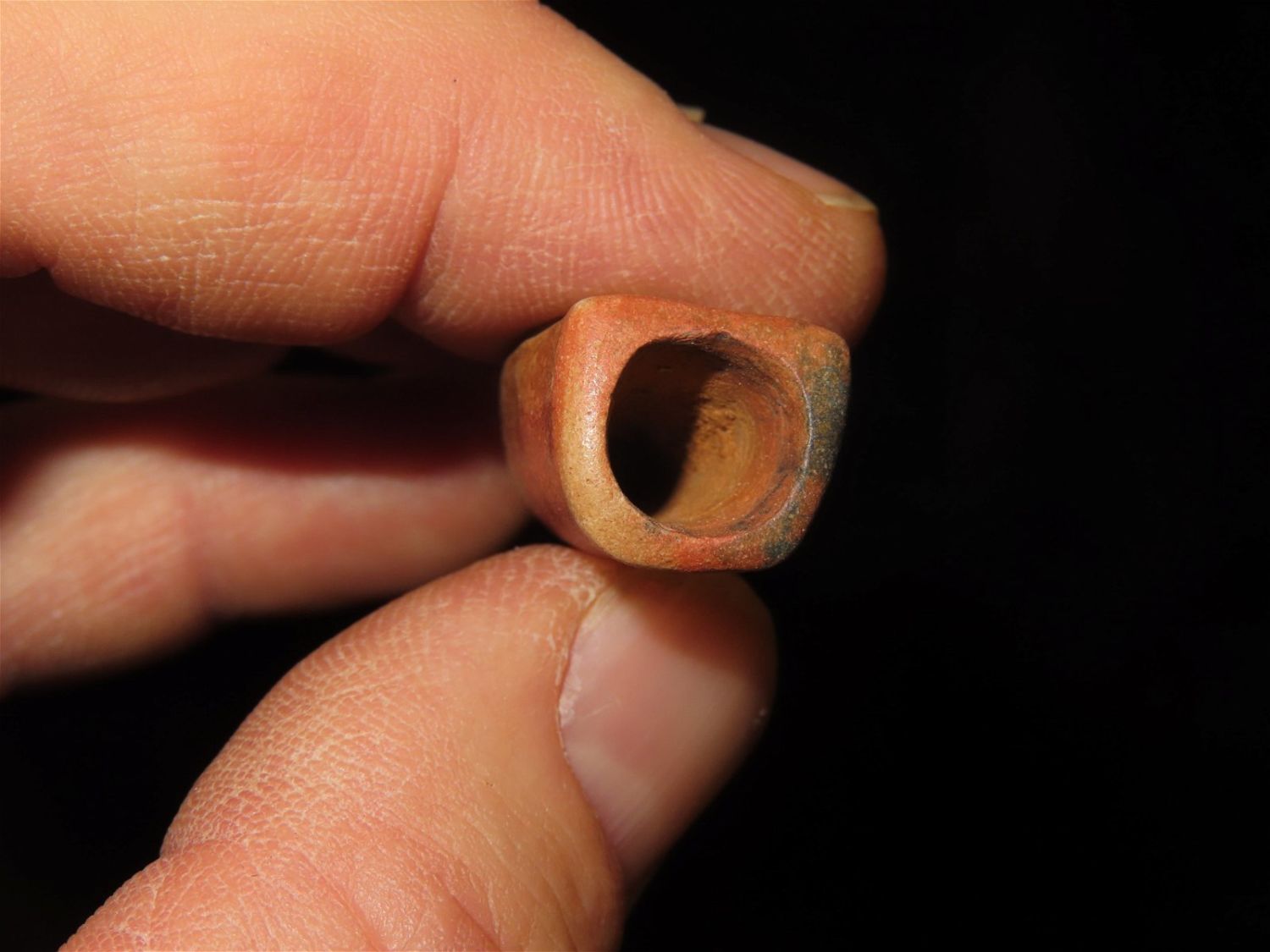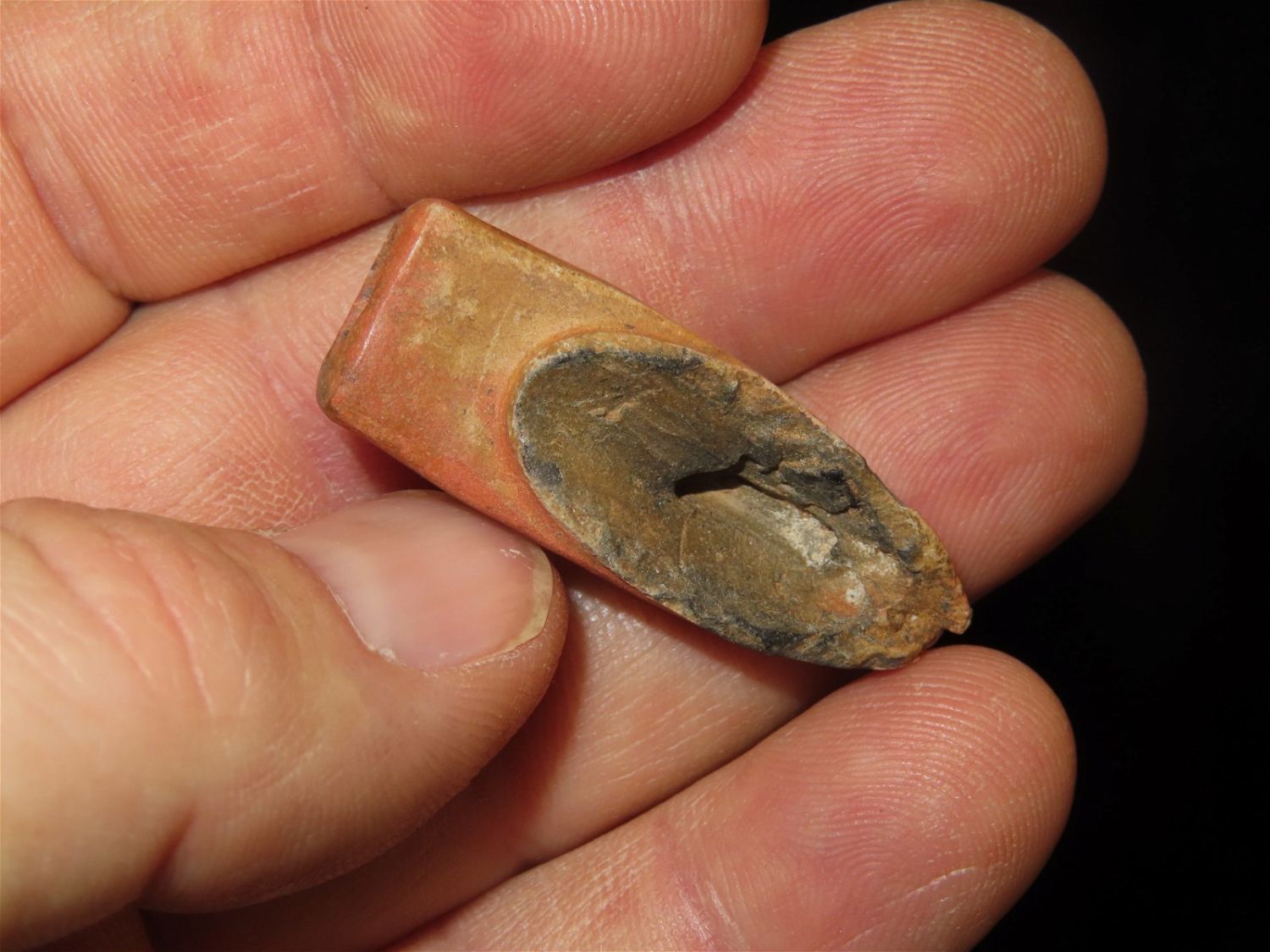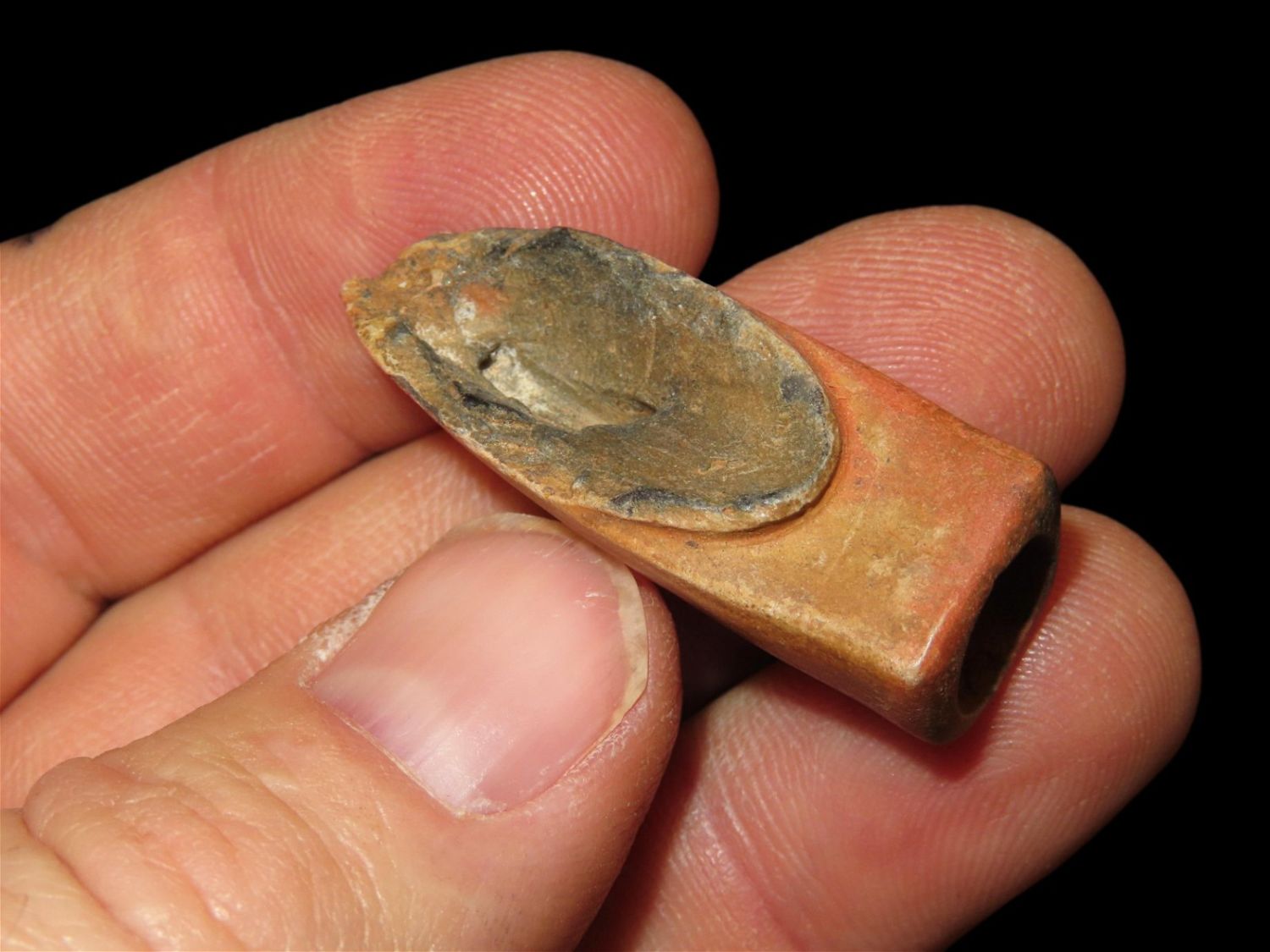 1.5/8" Salvaged Disc Pipe, Catlinite. Early Historic and well used.