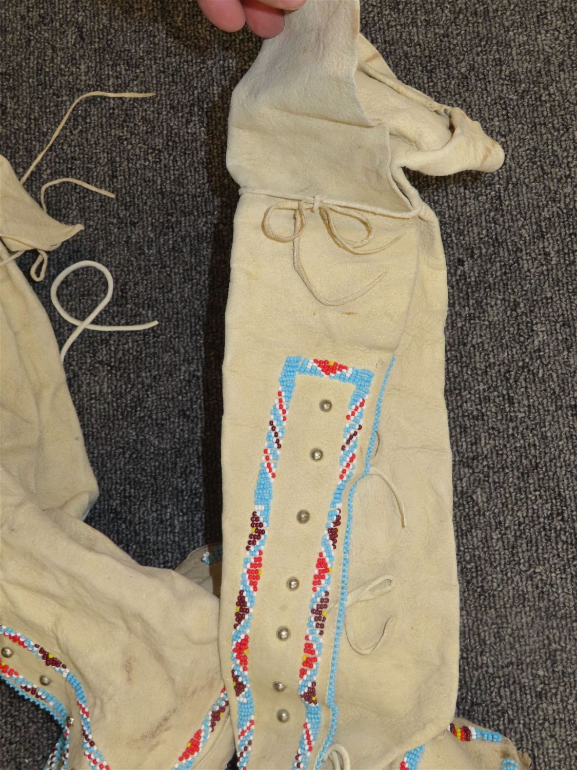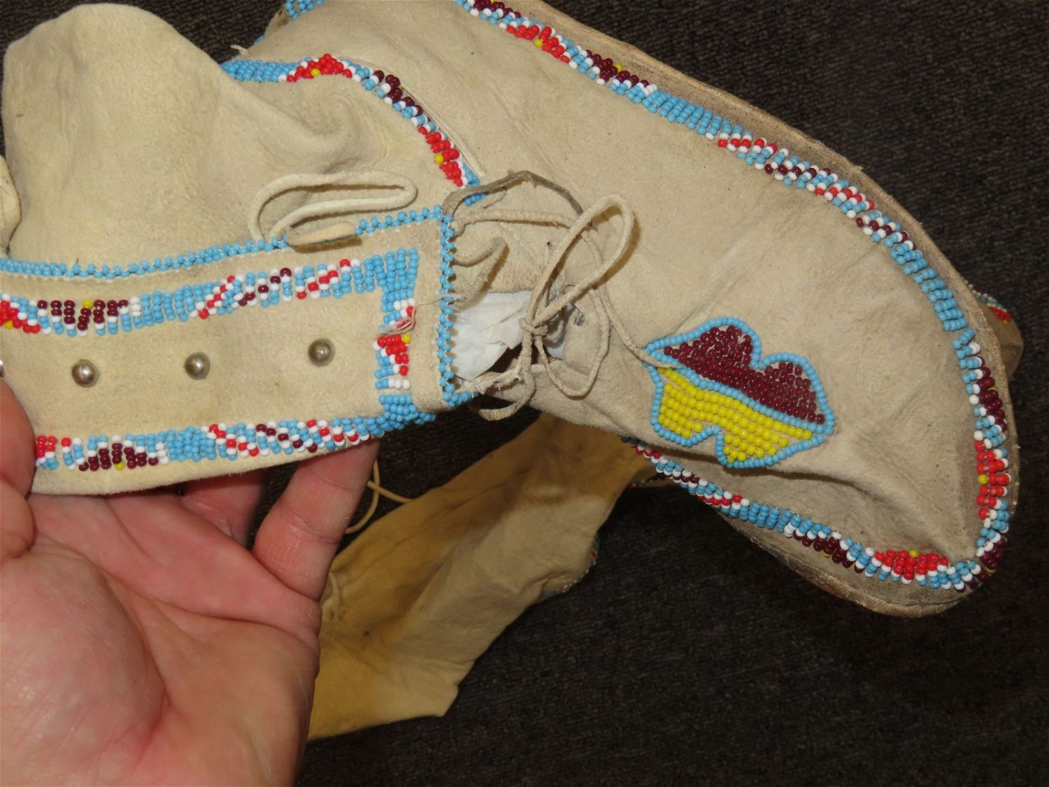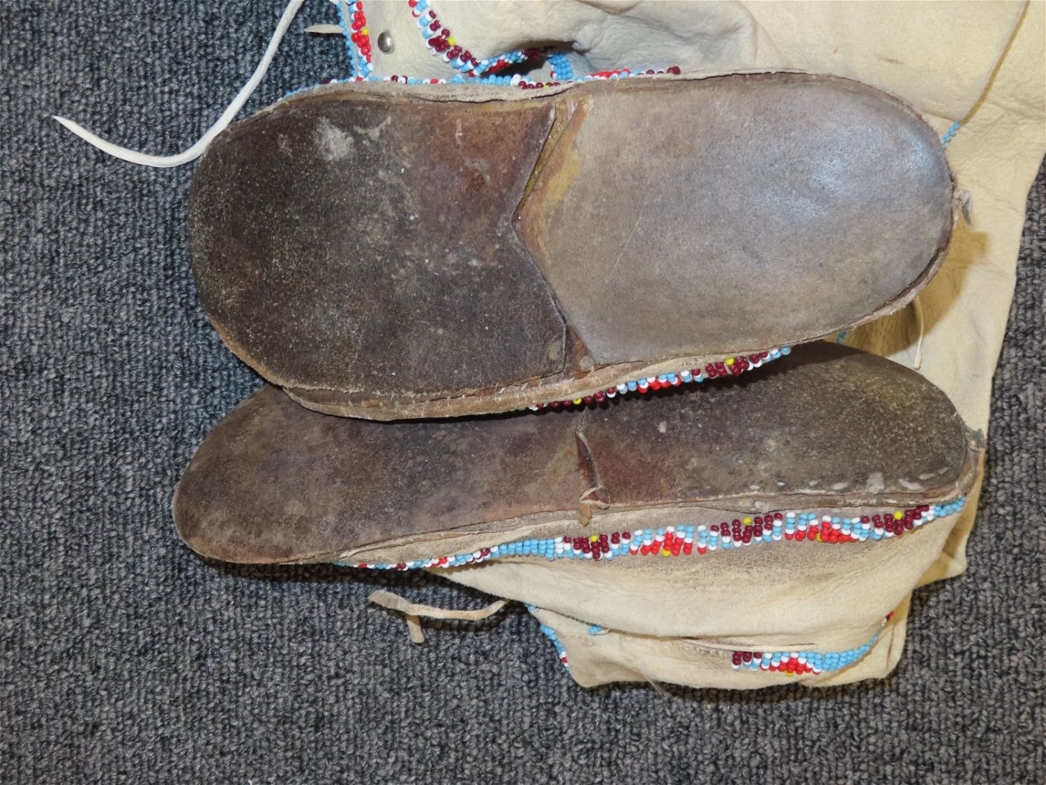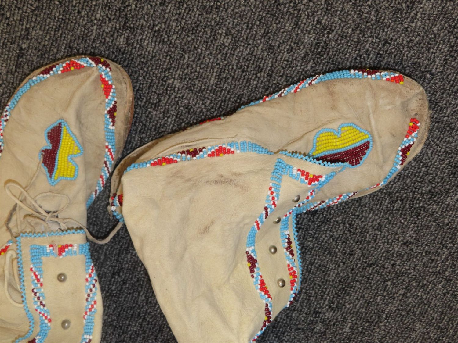 Beaded Native American Moccasin Boots, well worn, nice designs