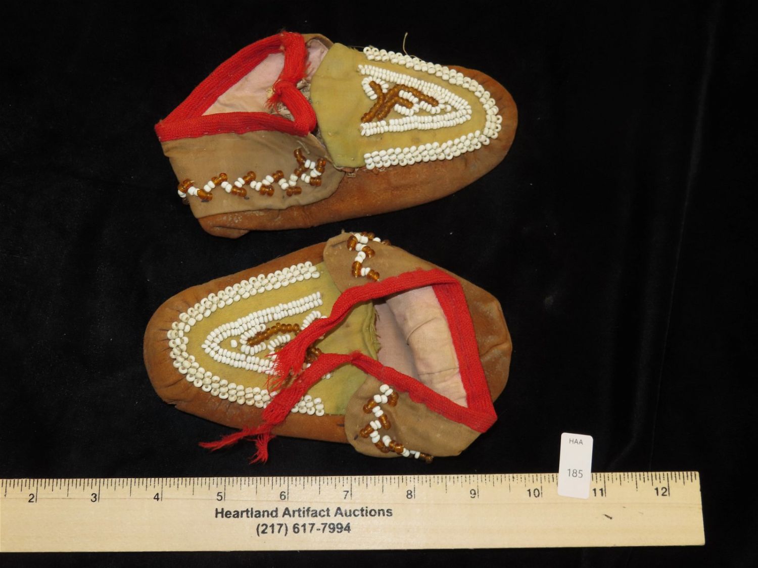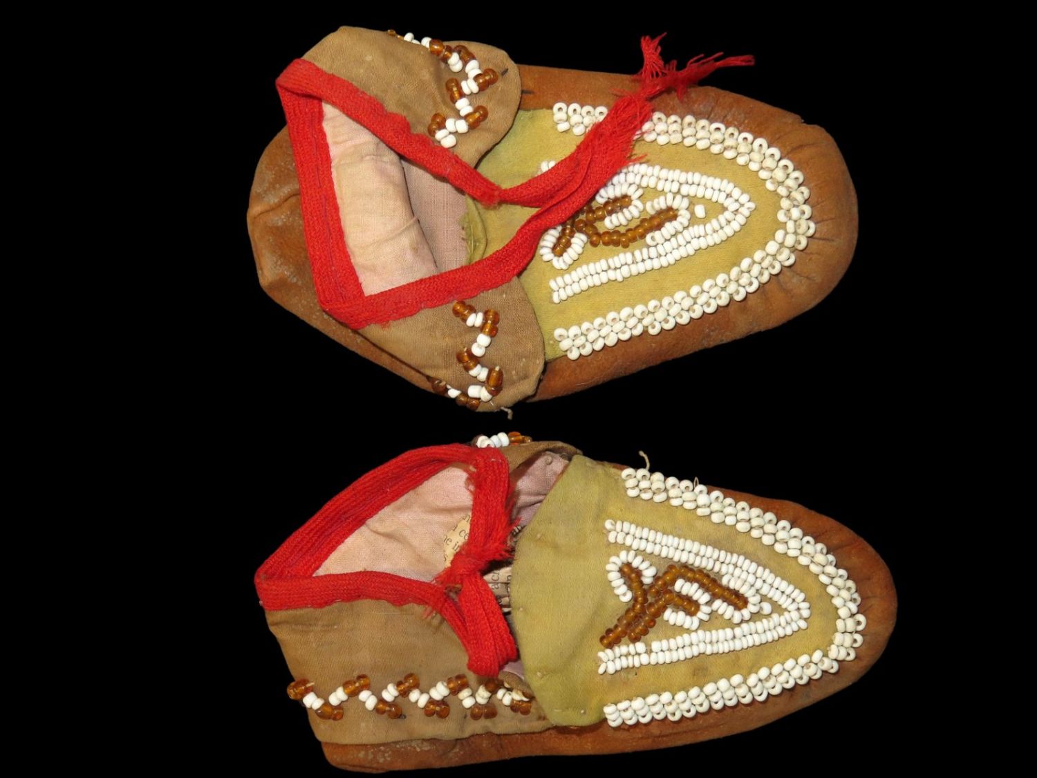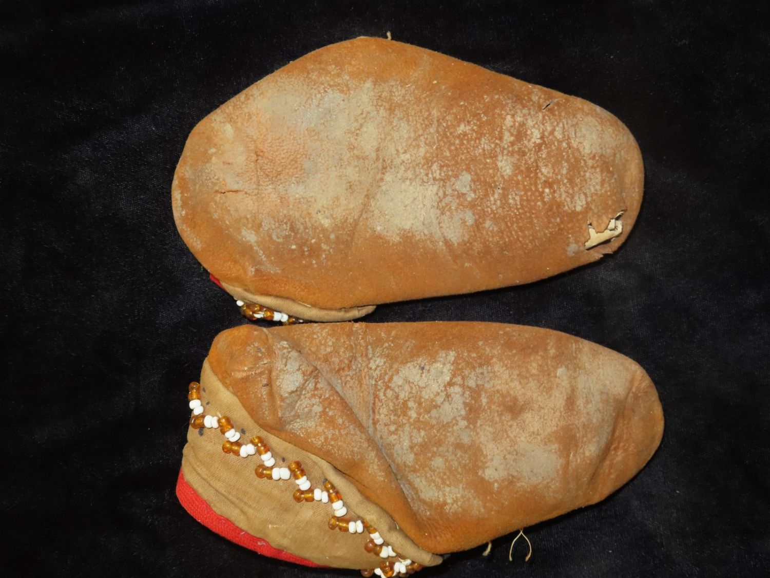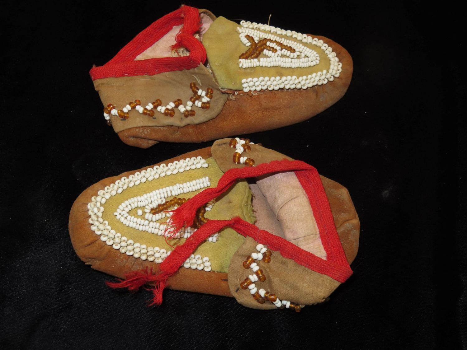 Native American Moccasin Pair, Childs Size. Well Used.