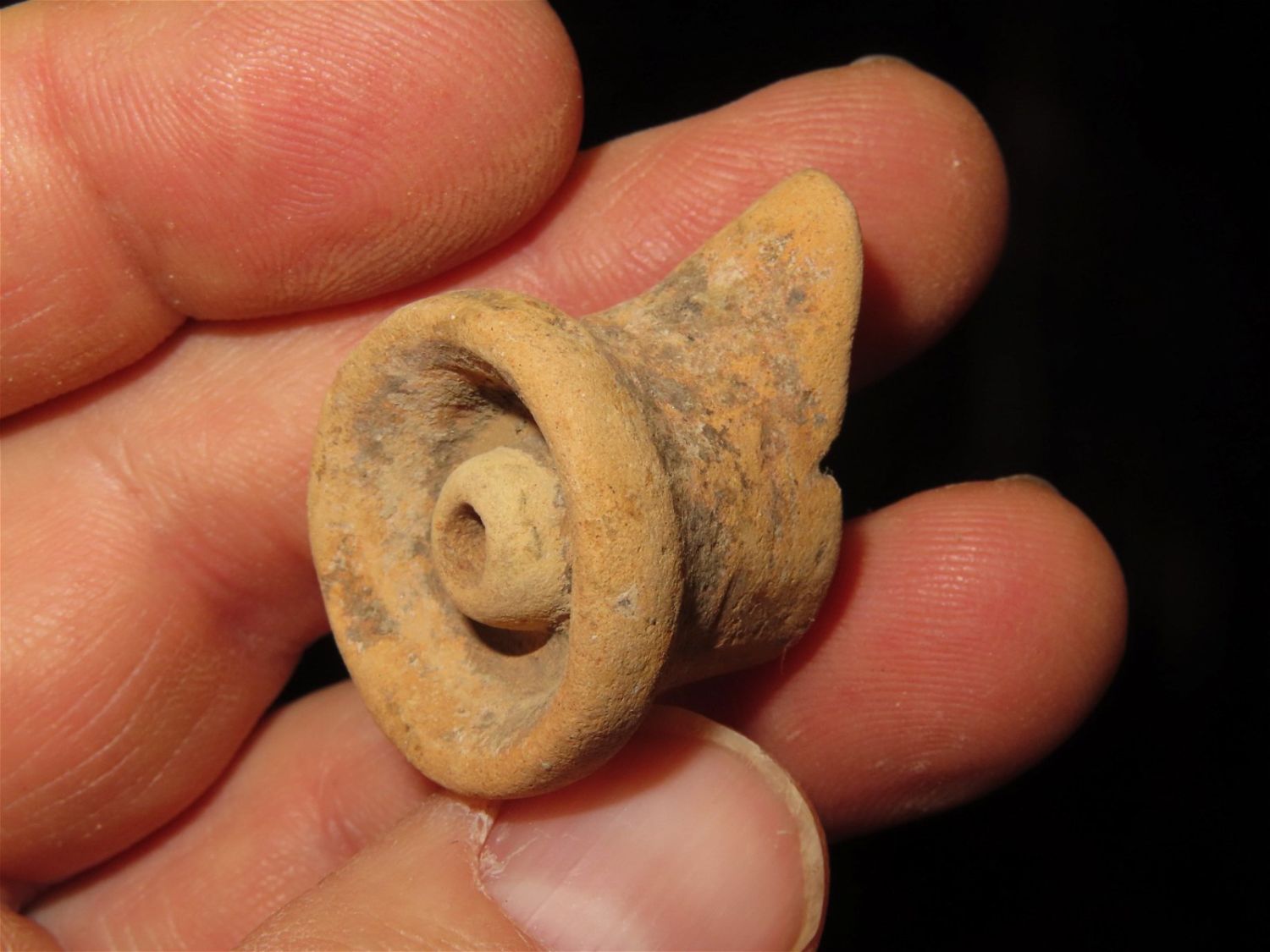 3/4" Pre Columbian Pottery Ear Spool, Nicely Styled.