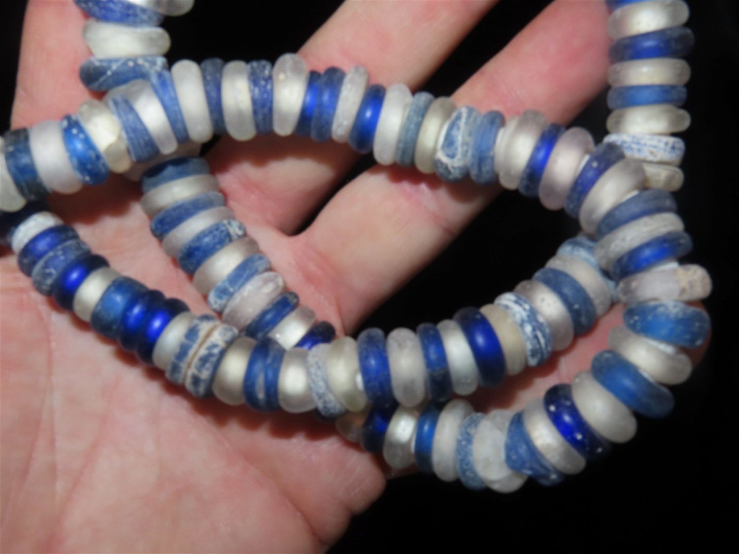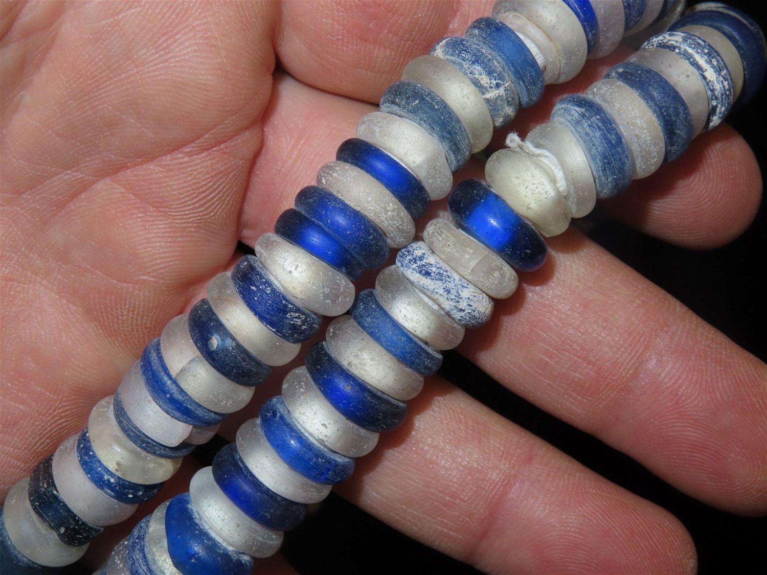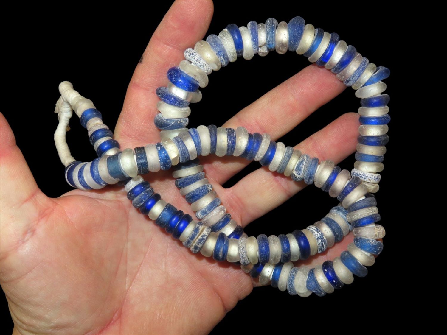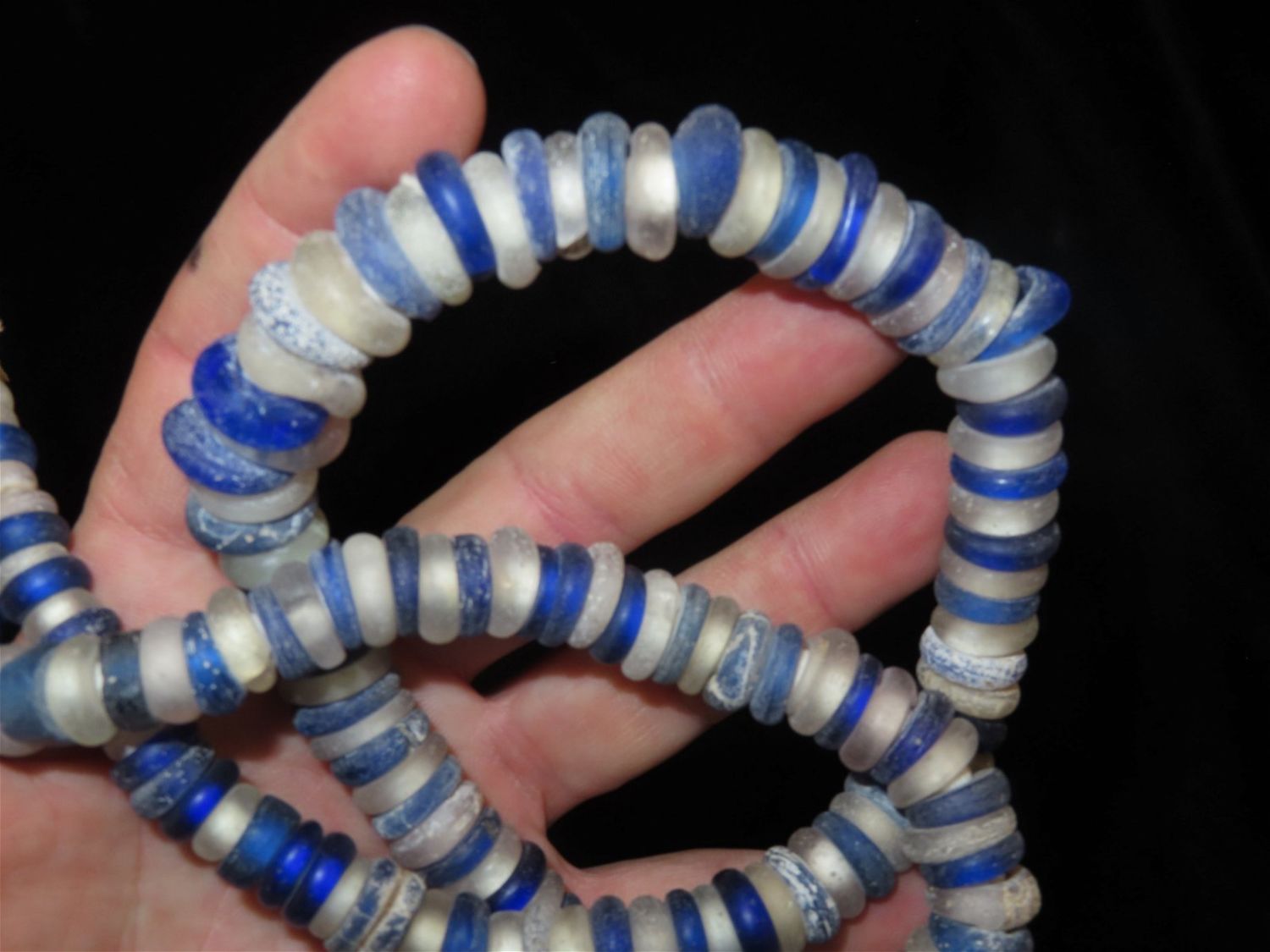 Amazing Strand Of Historic Glass Trade Beads, Disc Beads, Cobalt Blue.