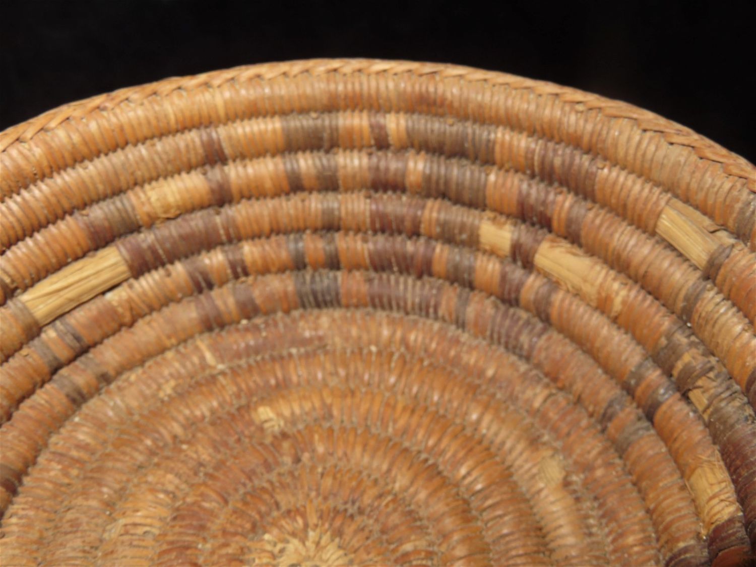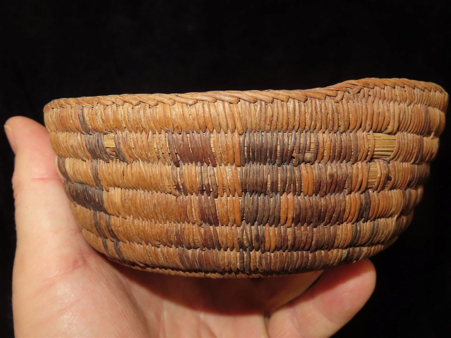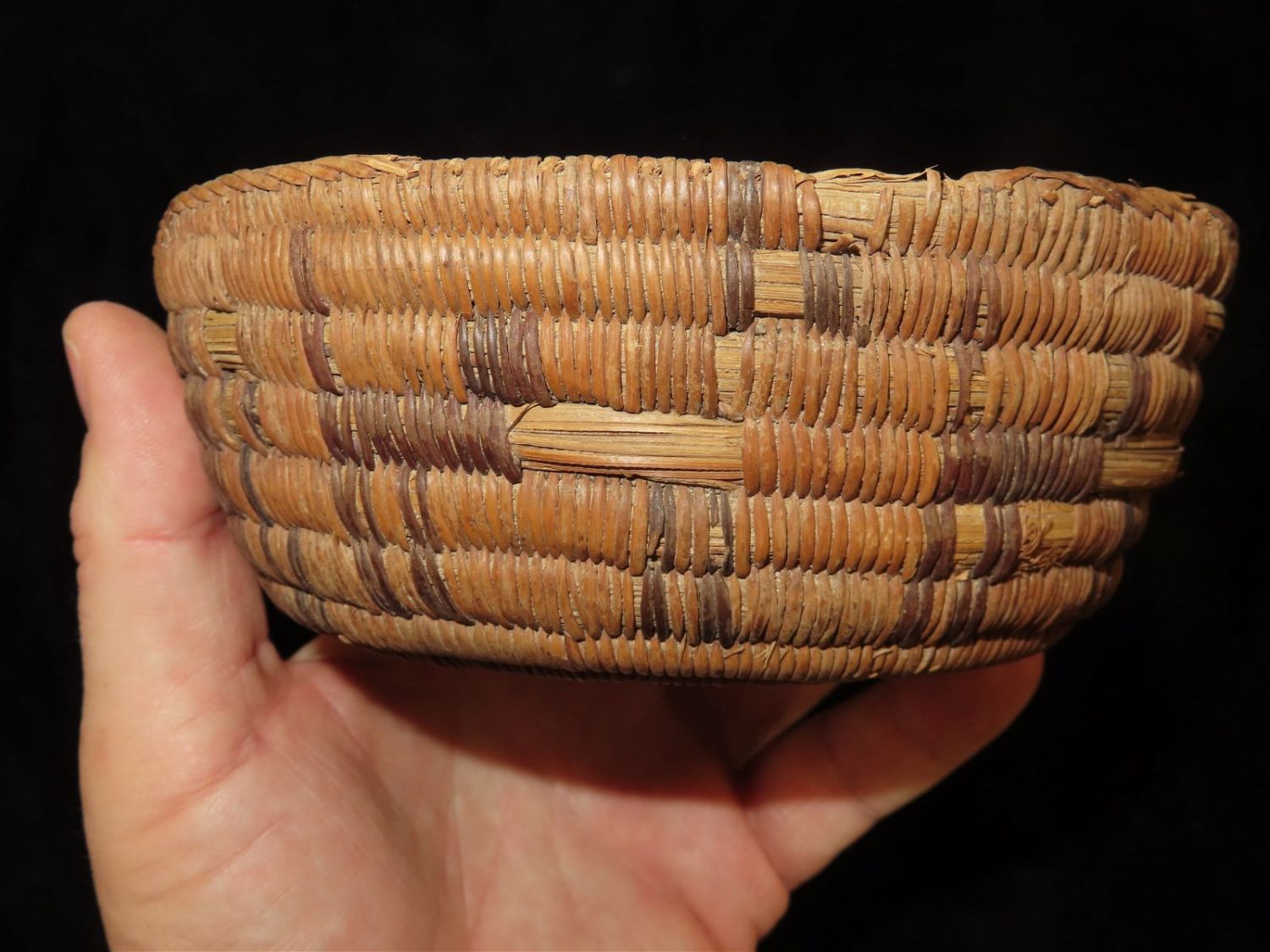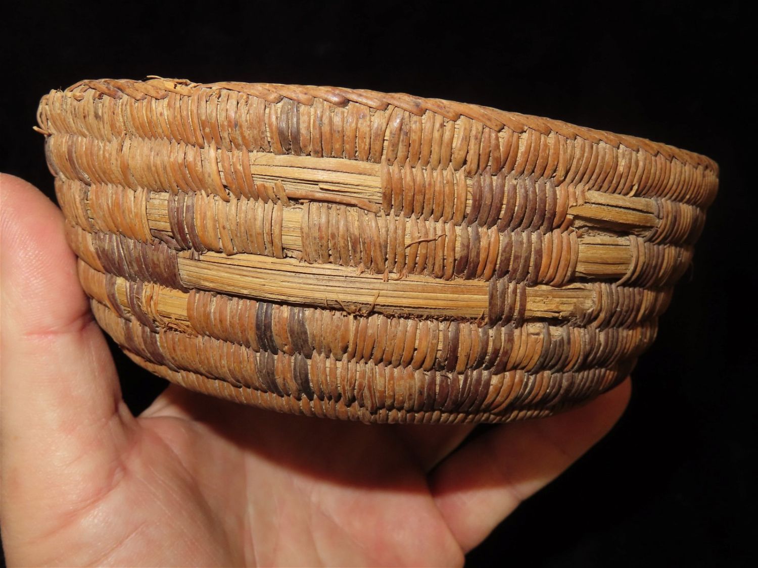 5.1/2" Dia Pre Columbian Woven Reed Basket. Nicely Made, Likely from Peru.