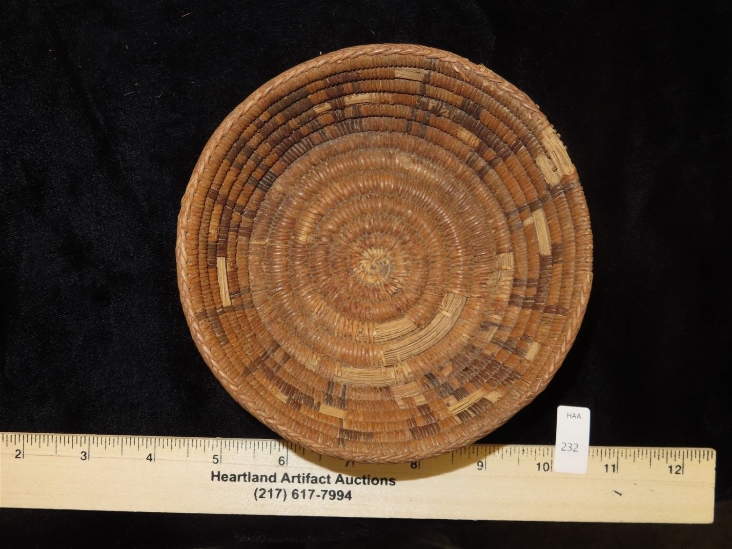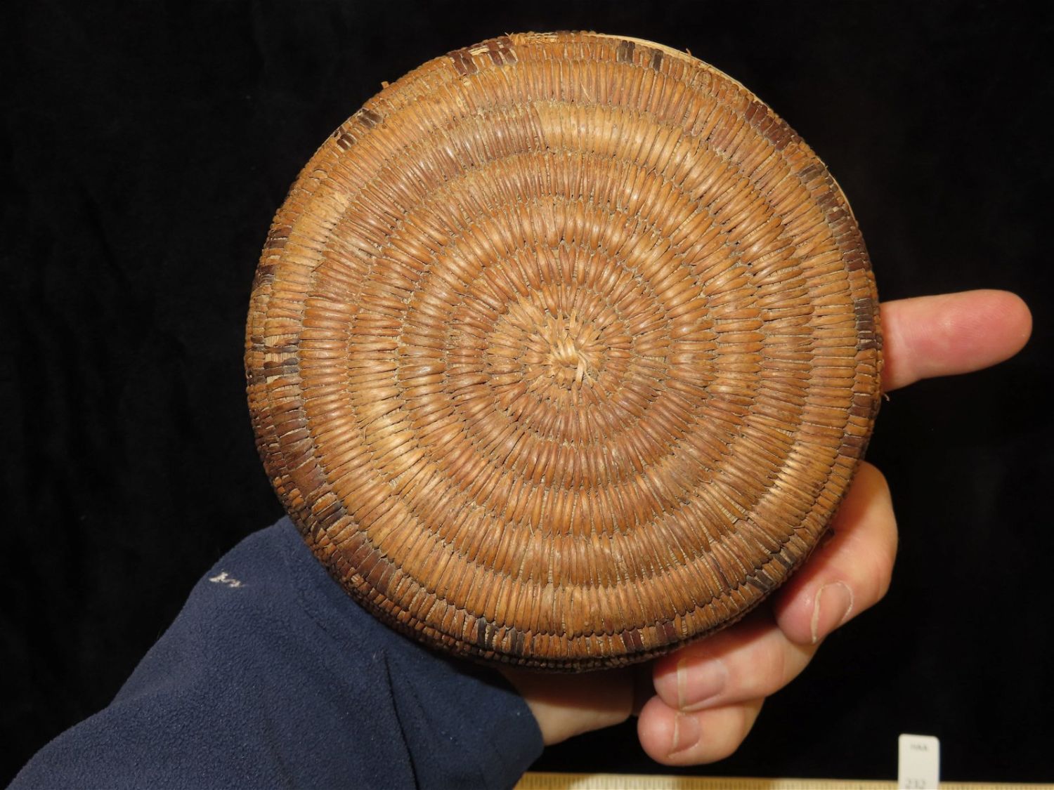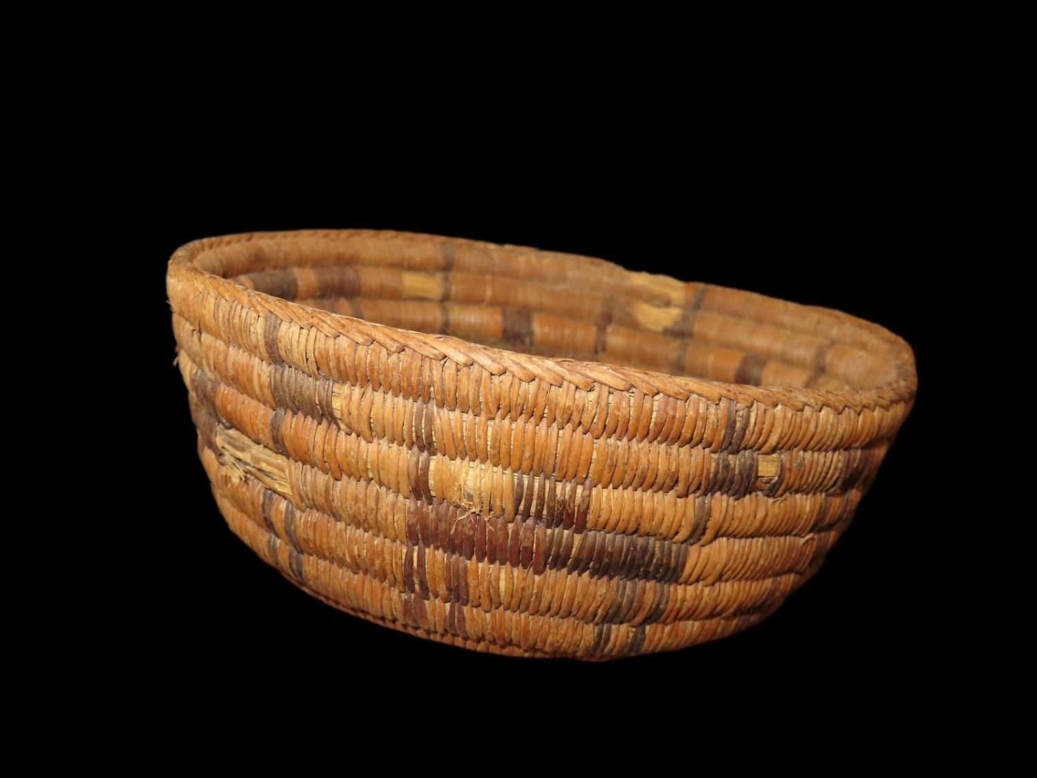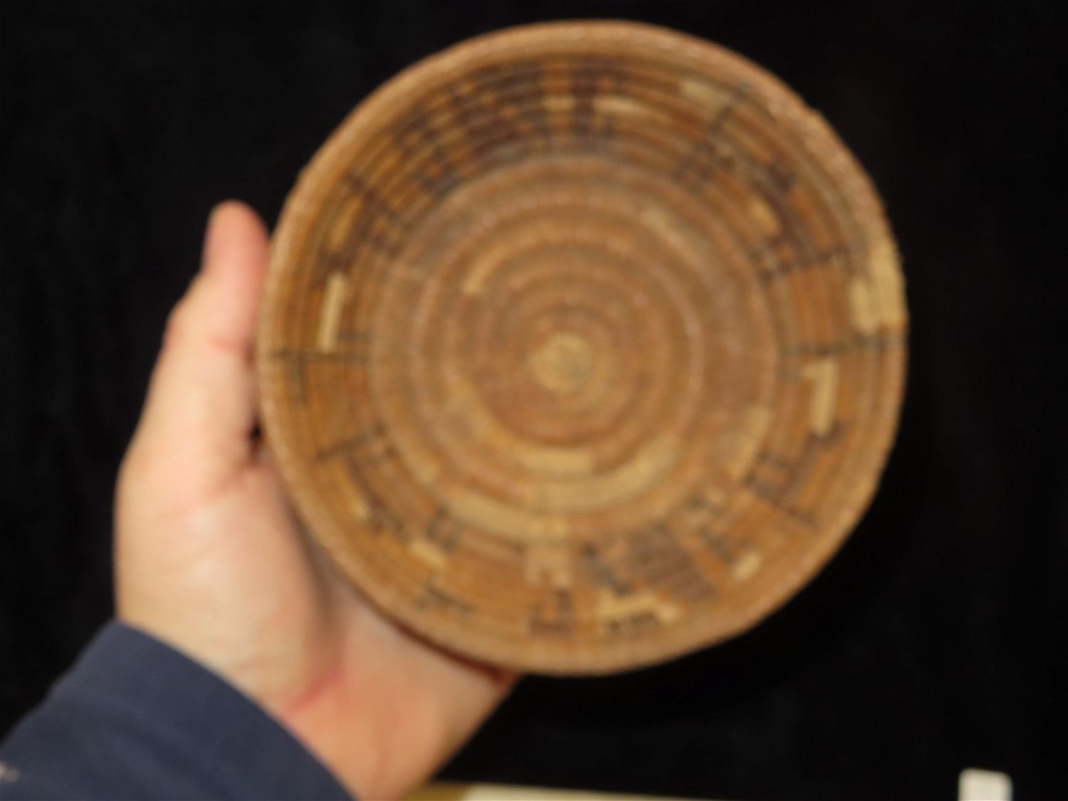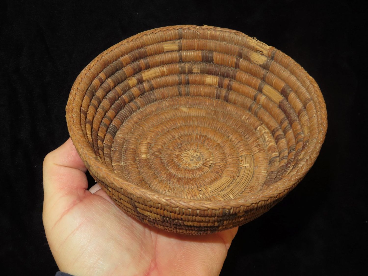 5.1/2" Dia Pre Columbian Woven Reed Basket. Nicely Made, Likely from Peru.