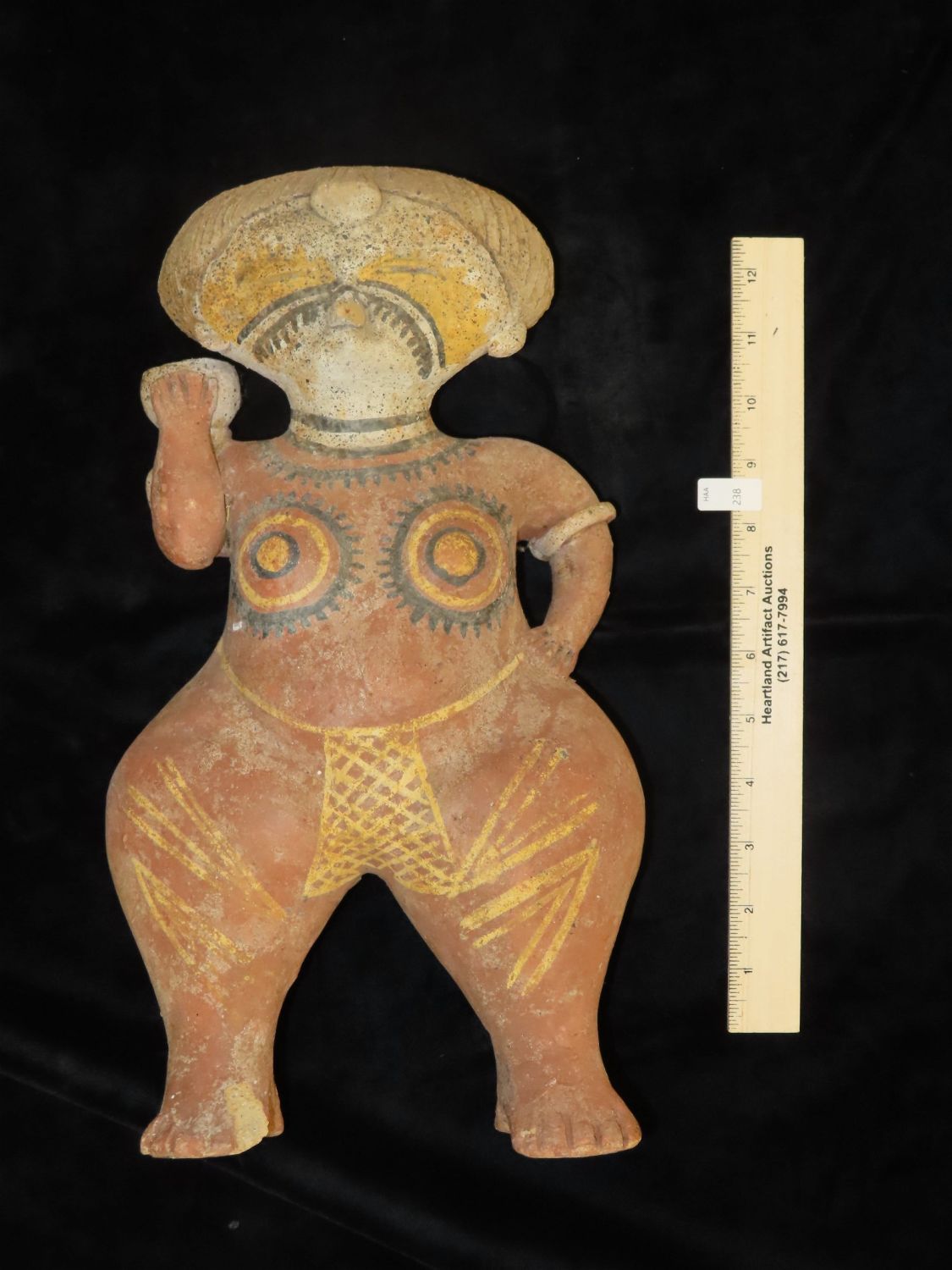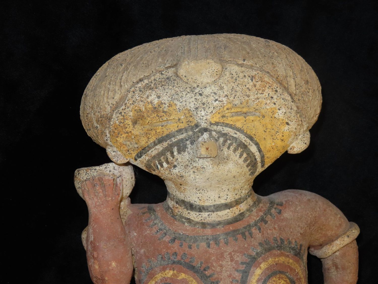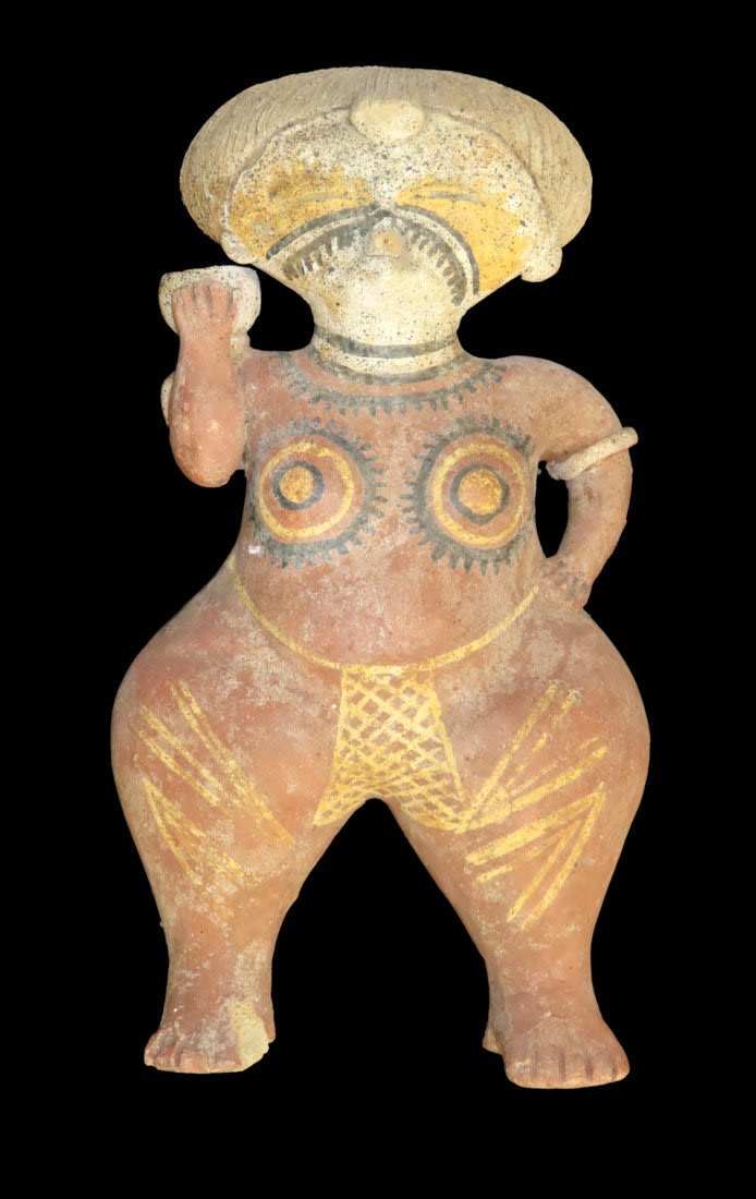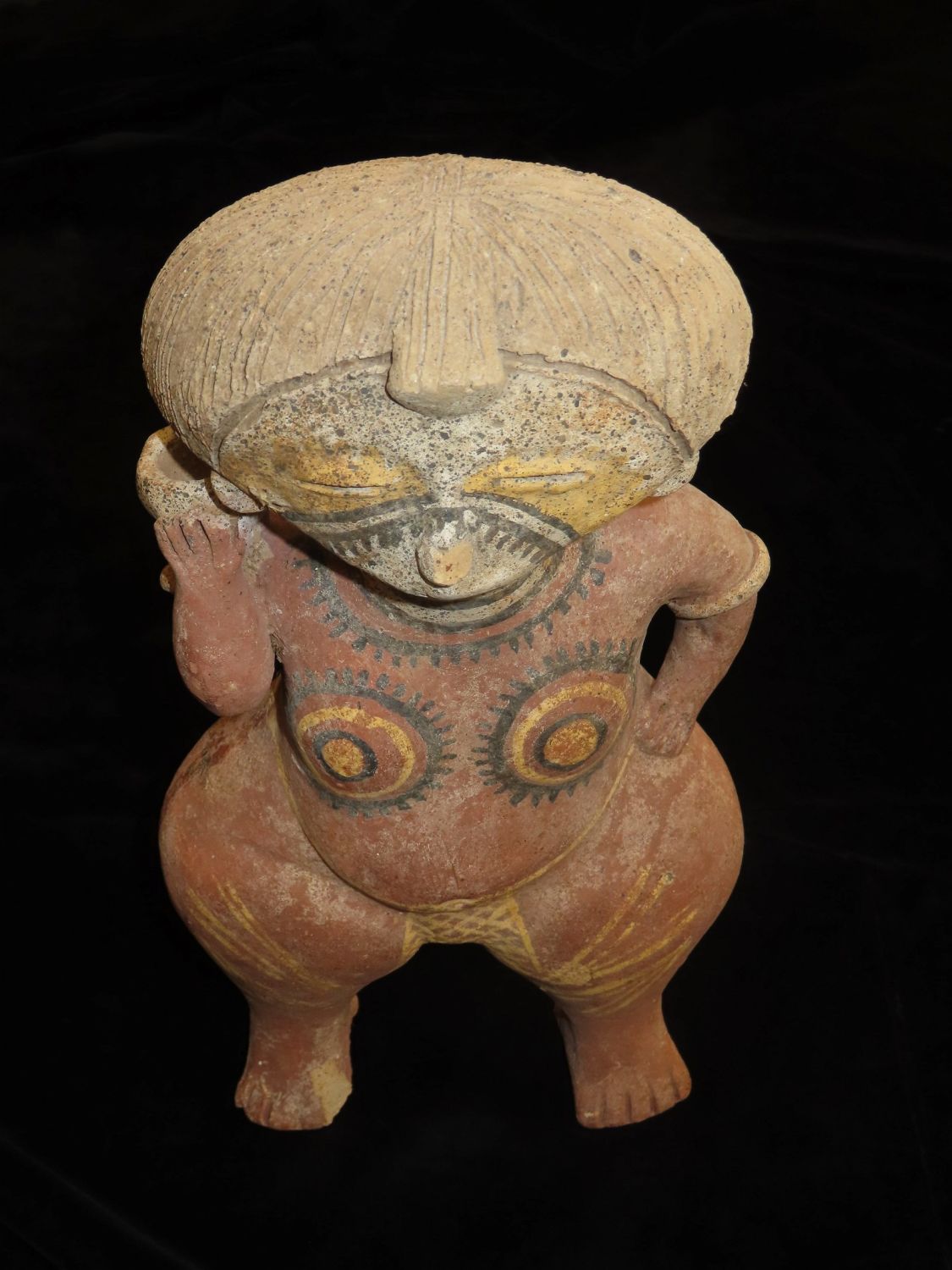 Large Human Effigy Pottery Vessel, Nicely Painted, Pre Columbian Pottery Vessle, South America. 14" Tall, Large. Likely early 1900’s.