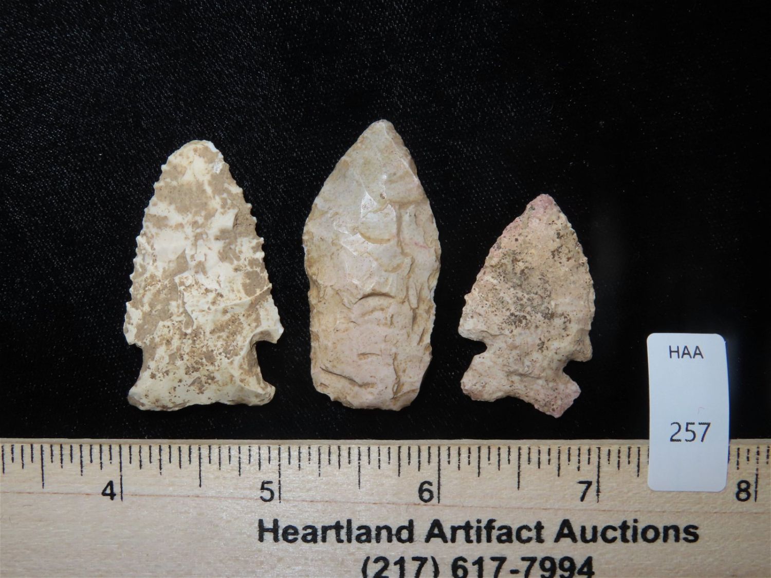 Grouping of Arrowheads, This collection was the property of the Leonard & Vivian Nelson Estate. They were life long farmers in the Dekalb County Illinois area with ancesteral roots in the Dekalb area for generations beginning in the mid 1800’s.