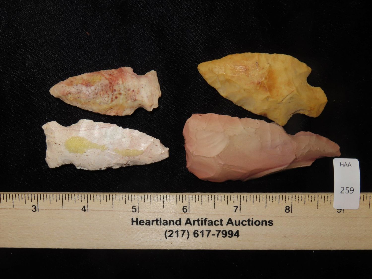 Grouping of Arrowheads, This collection was the property of the Leonard & Vivian Nelson Estate. They were life long farmers in the Dekalb County Illinois area with ancesteral roots in the Dekalb area for generations beginning in the mid 1800’s.