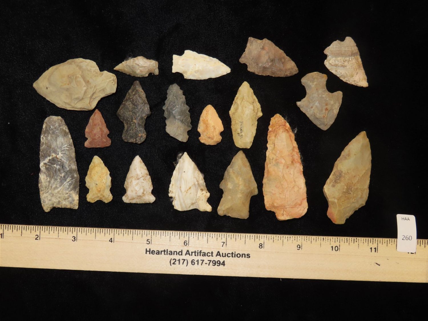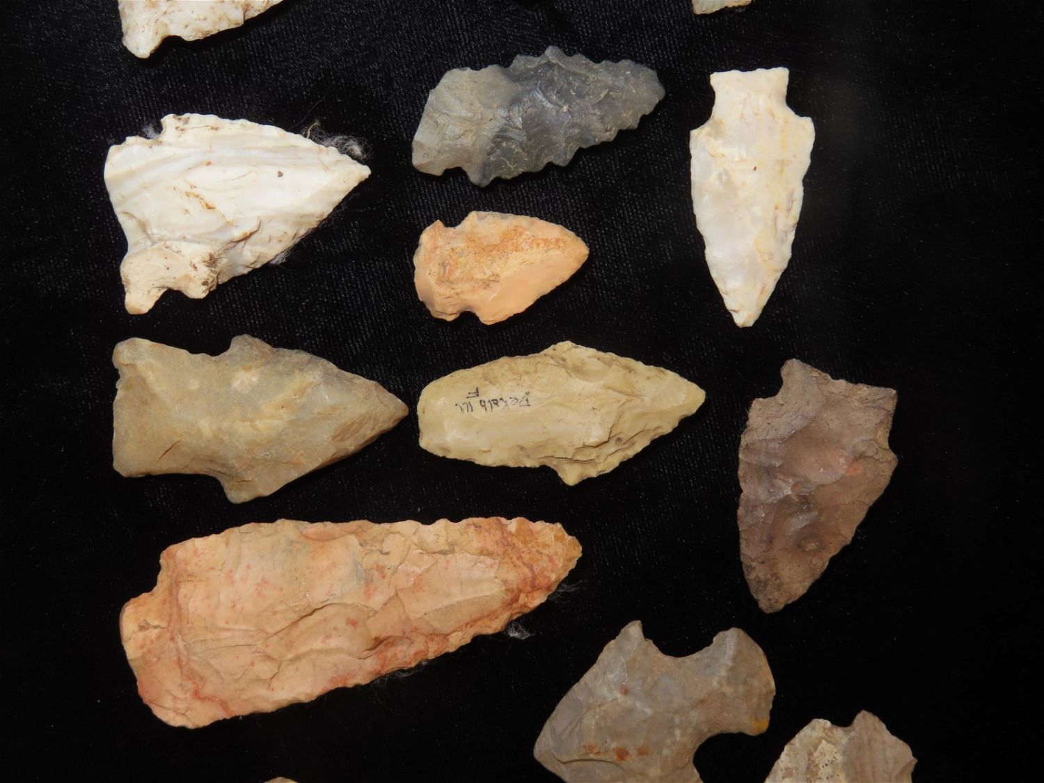 Grouping of Arrowheads, This collection was the property of the Leonard & Vivian Nelson Estate. They were life long farmers in the Dekalb County Illinois area with ancesteral roots in the Dekalb area for generations beginning in the mid 1800’s.