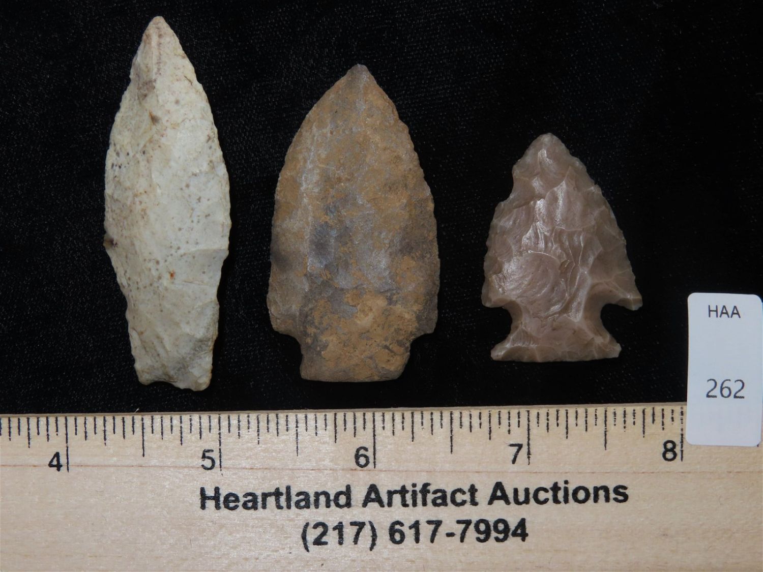 Grouping of Arrowheads, This collection was the property of the Leonard & Vivian Nelson Estate. They were life long farmers in the Dekalb County Illinois area with ancesteral roots in the Dekalb area for generations beginning in the mid 1800’s.