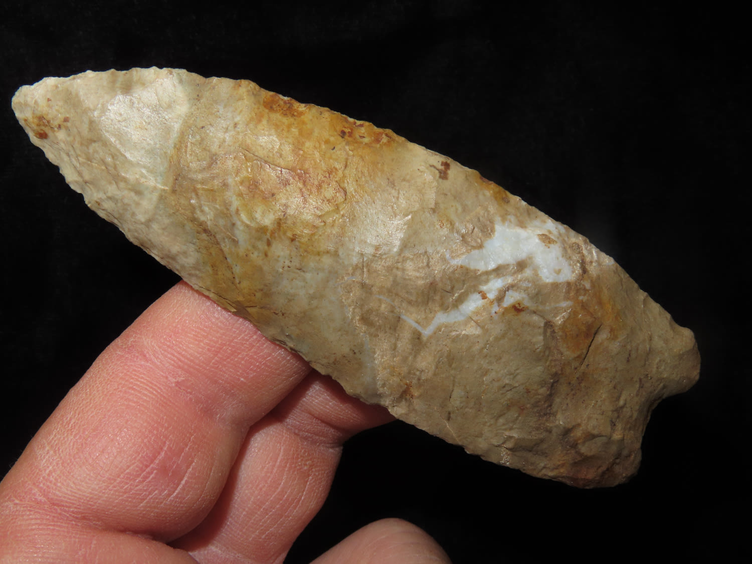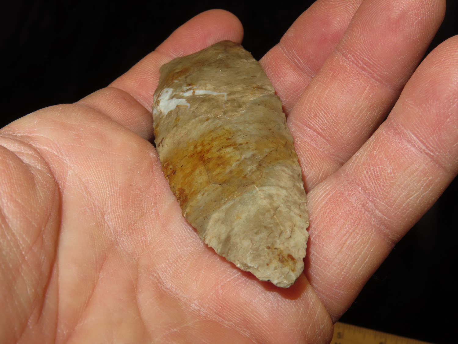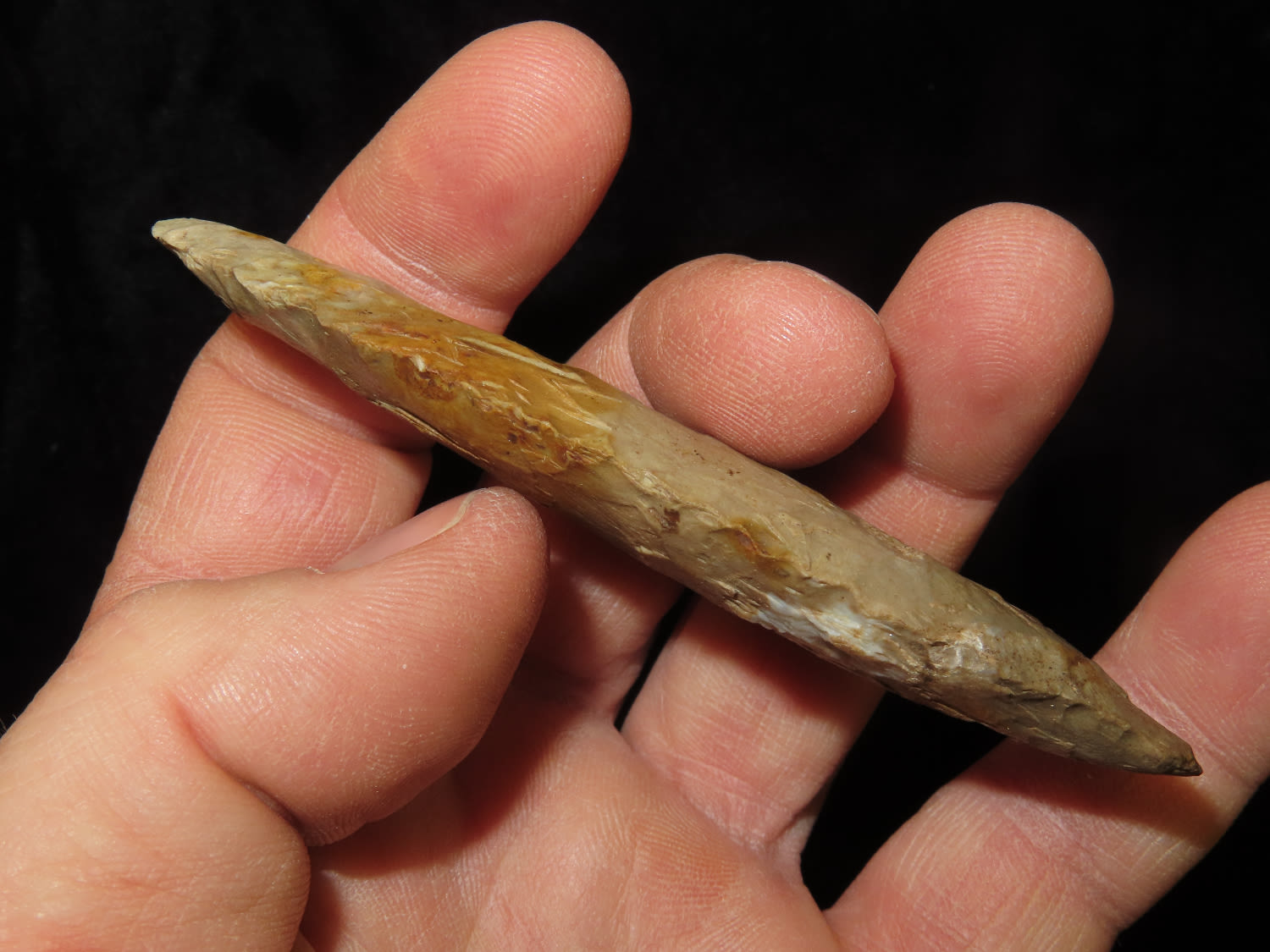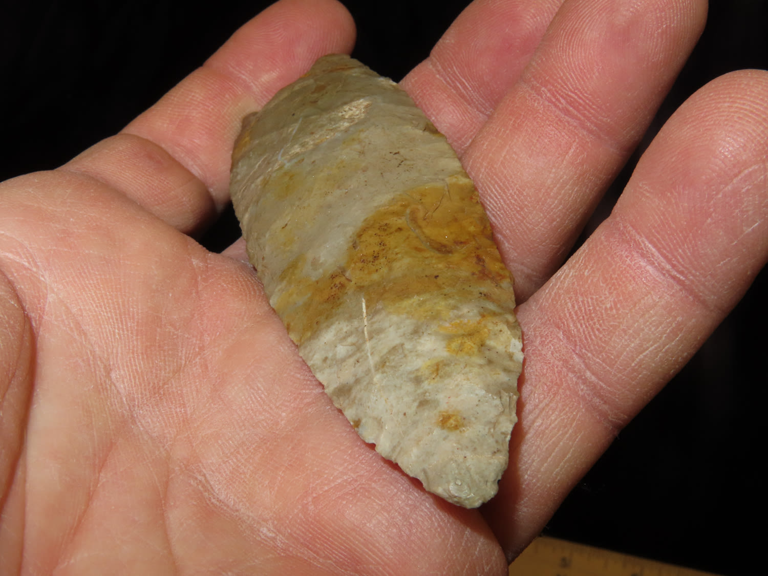 3.5/8" Paleo Lancelot, Lightly fluted on one side, Found in Southern Ohio, Purchased from Bennett’s Auction 1/8/23 lot 257, Ex Montie Milner Collection