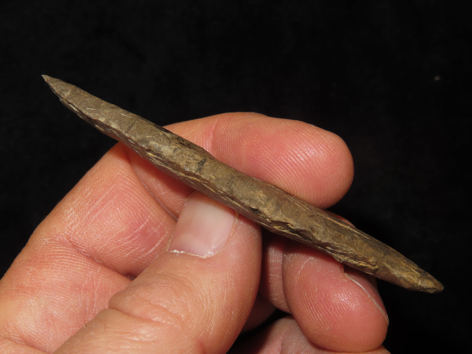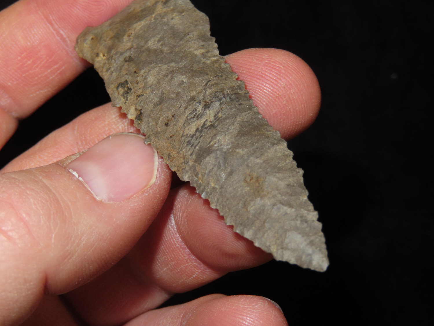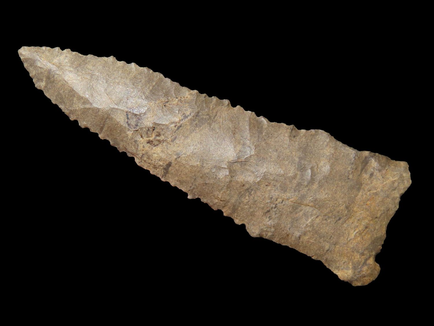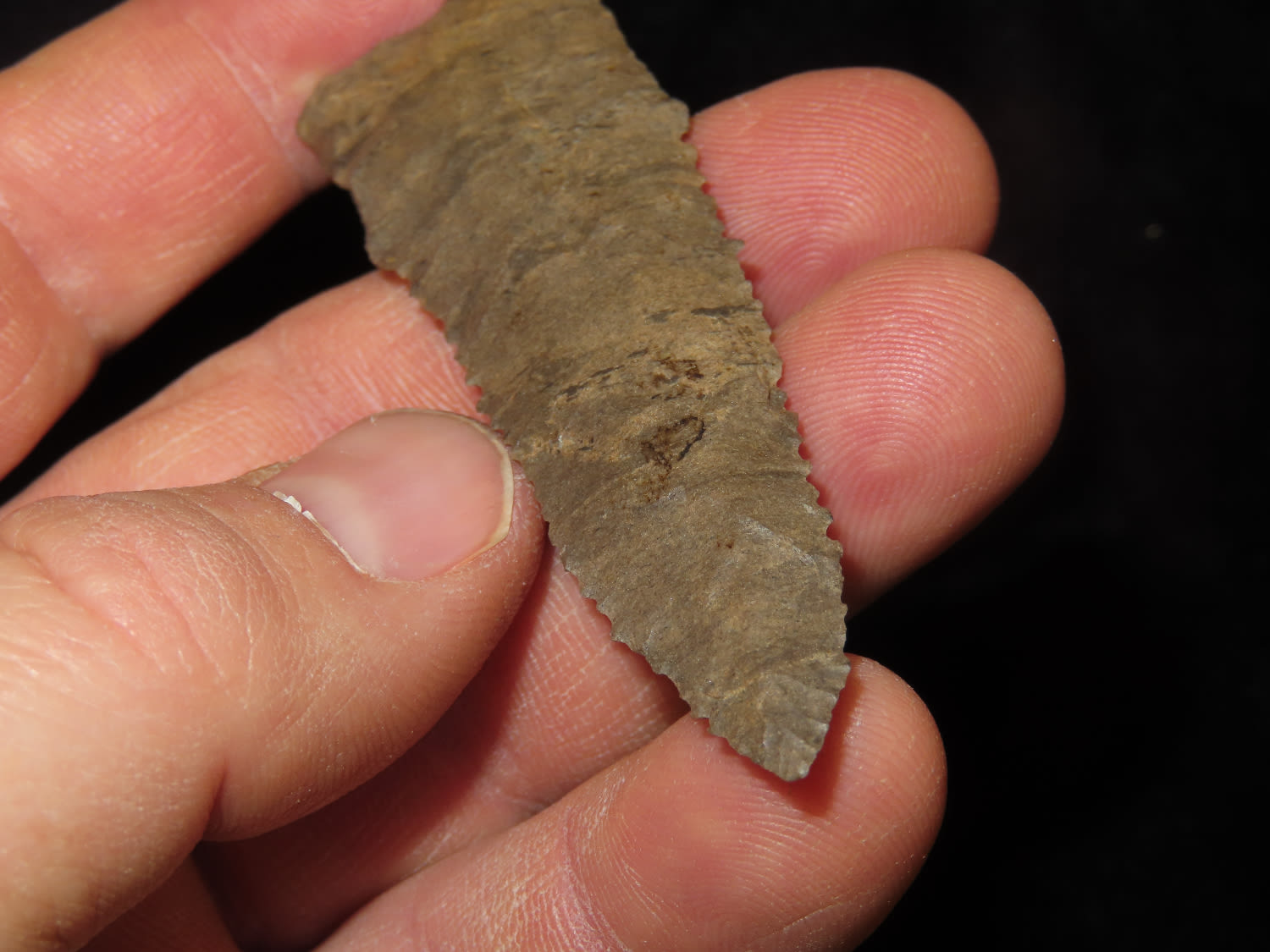 3" Paleo Point, Ground Base, Dover Chert, Serrated, Ex Mike Hosier, Ex Montie Milner Collection