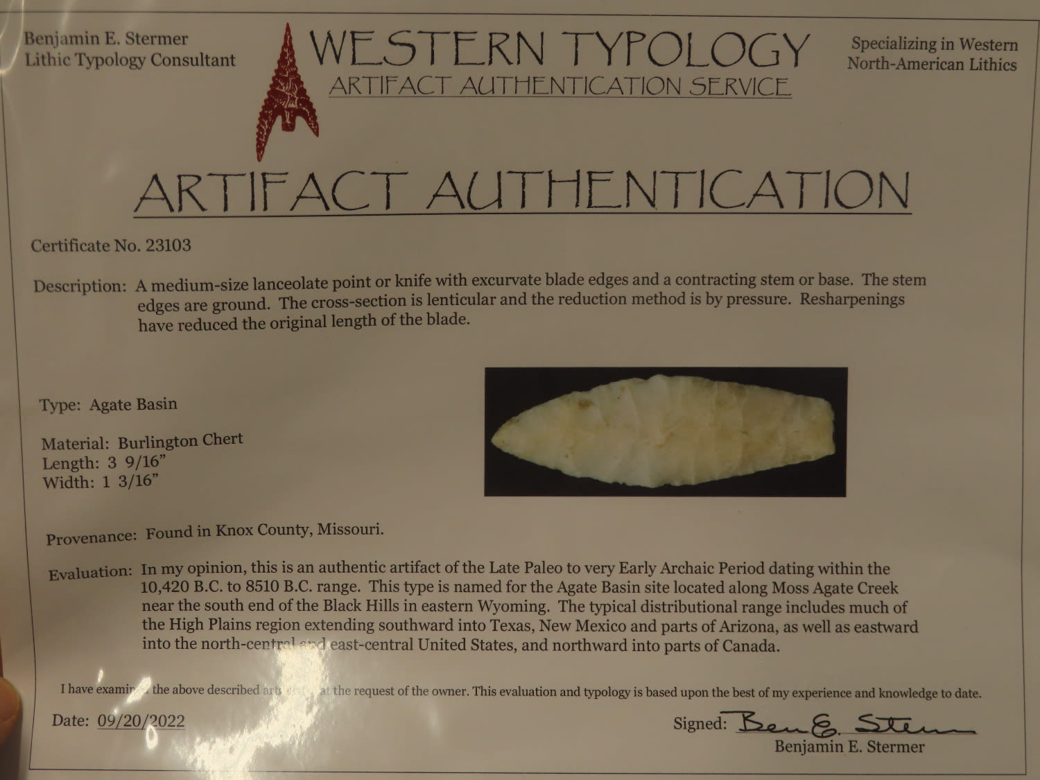 3 9/16" Burlington Chert Agate Basin Stermer COA found in Knox Co Missouri