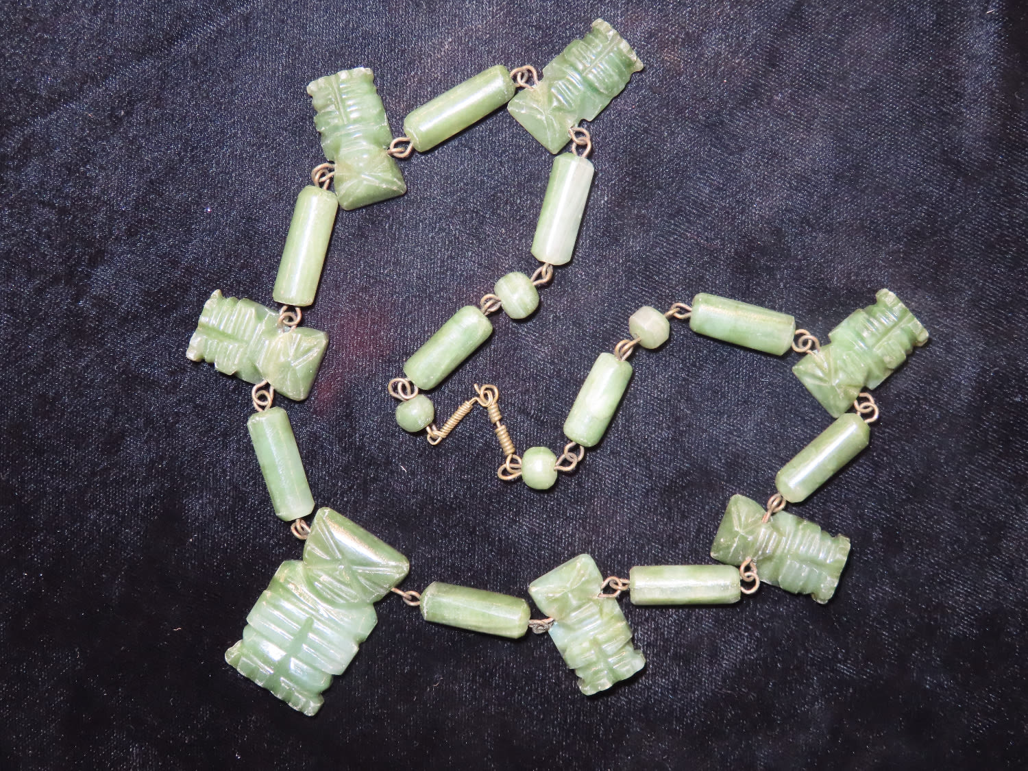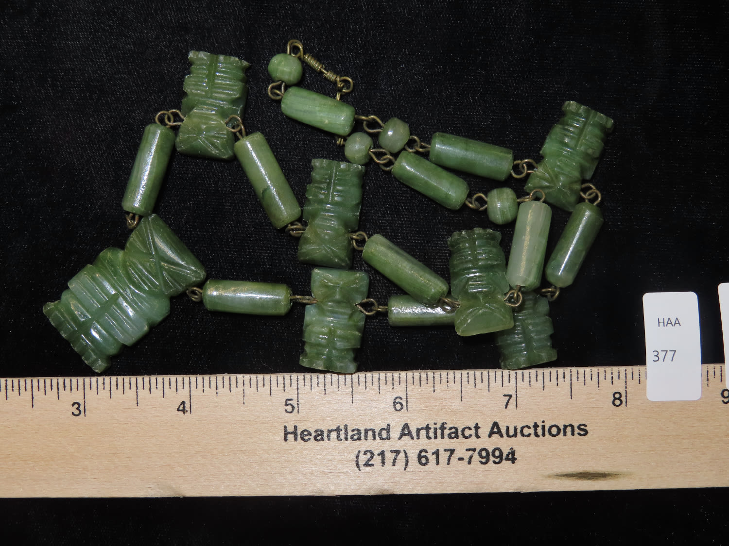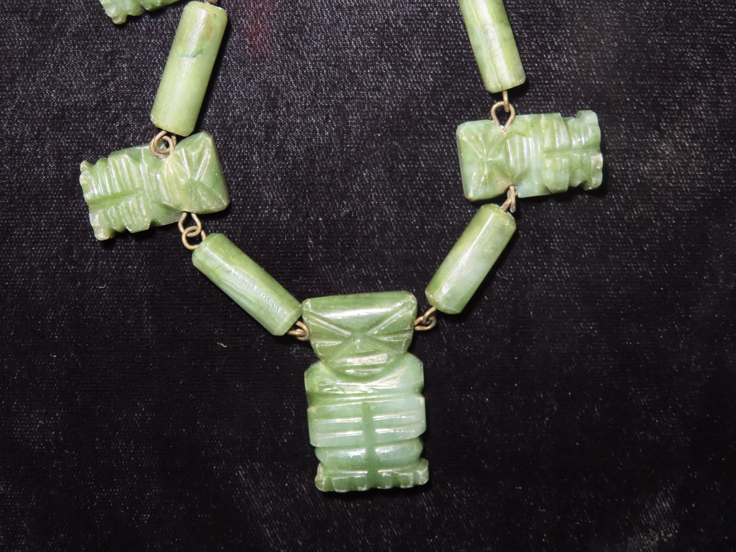 Pre Columbina Axe God Necklace Made of Green Jade with 7 Effigy pendants 1900s