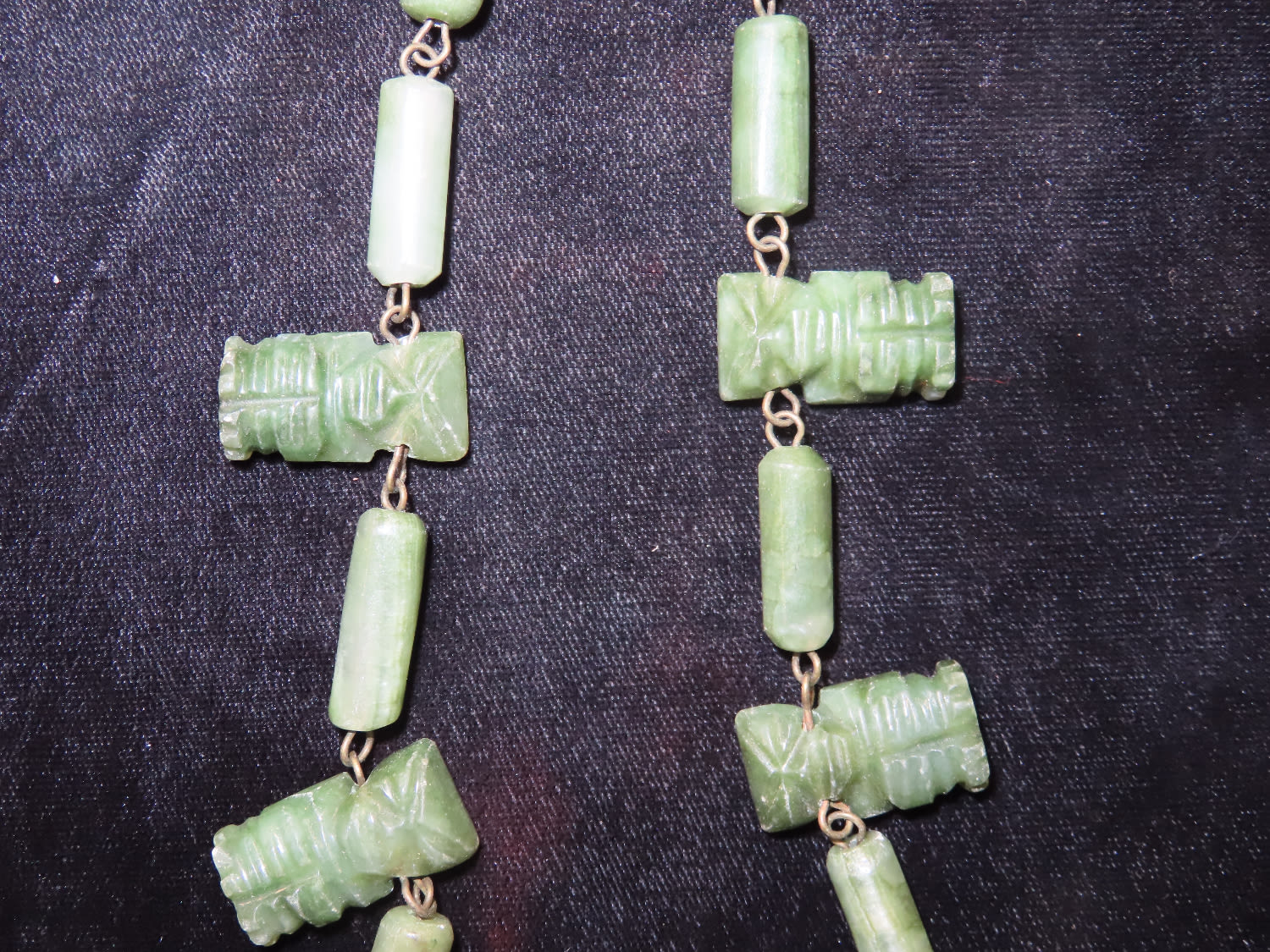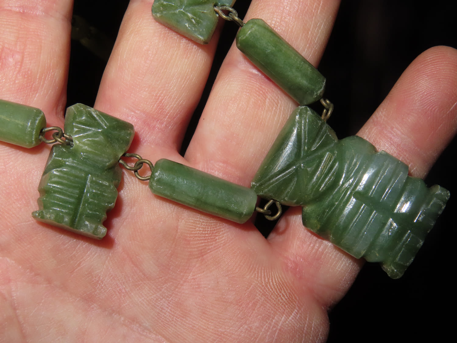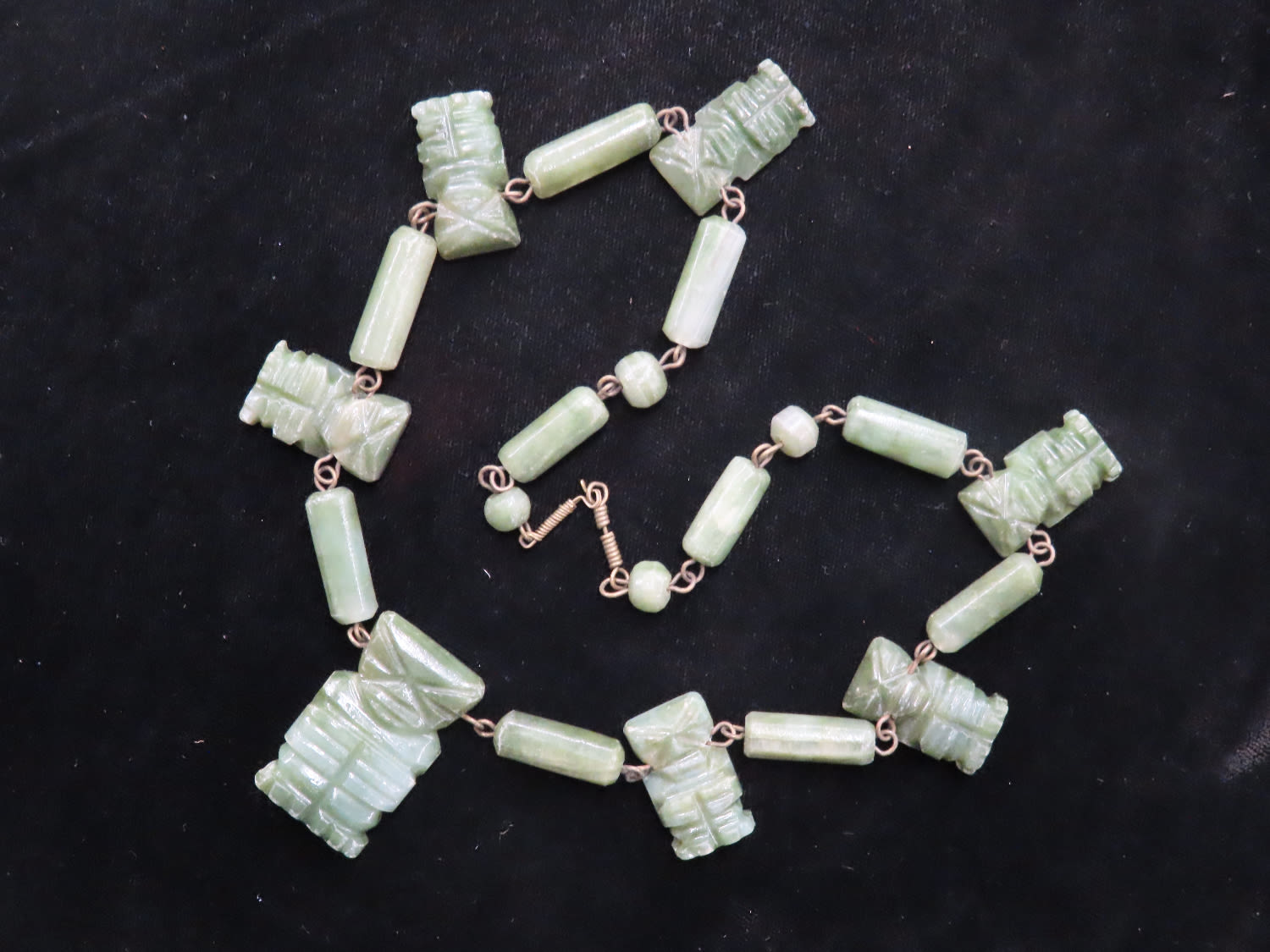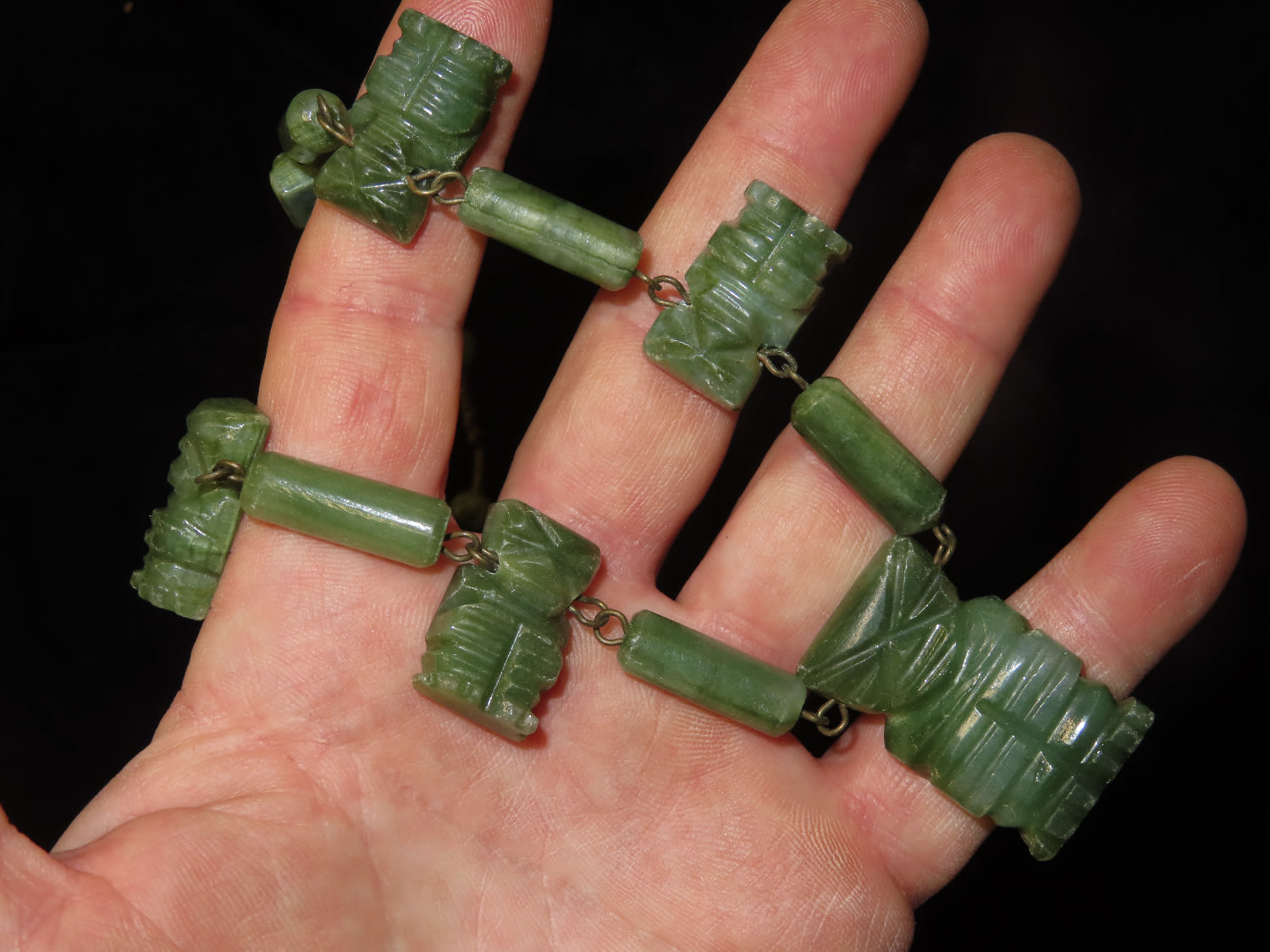 Pre Columbina Axe God Necklace Made of Green Jade with 7 Effigy pendants 1900s