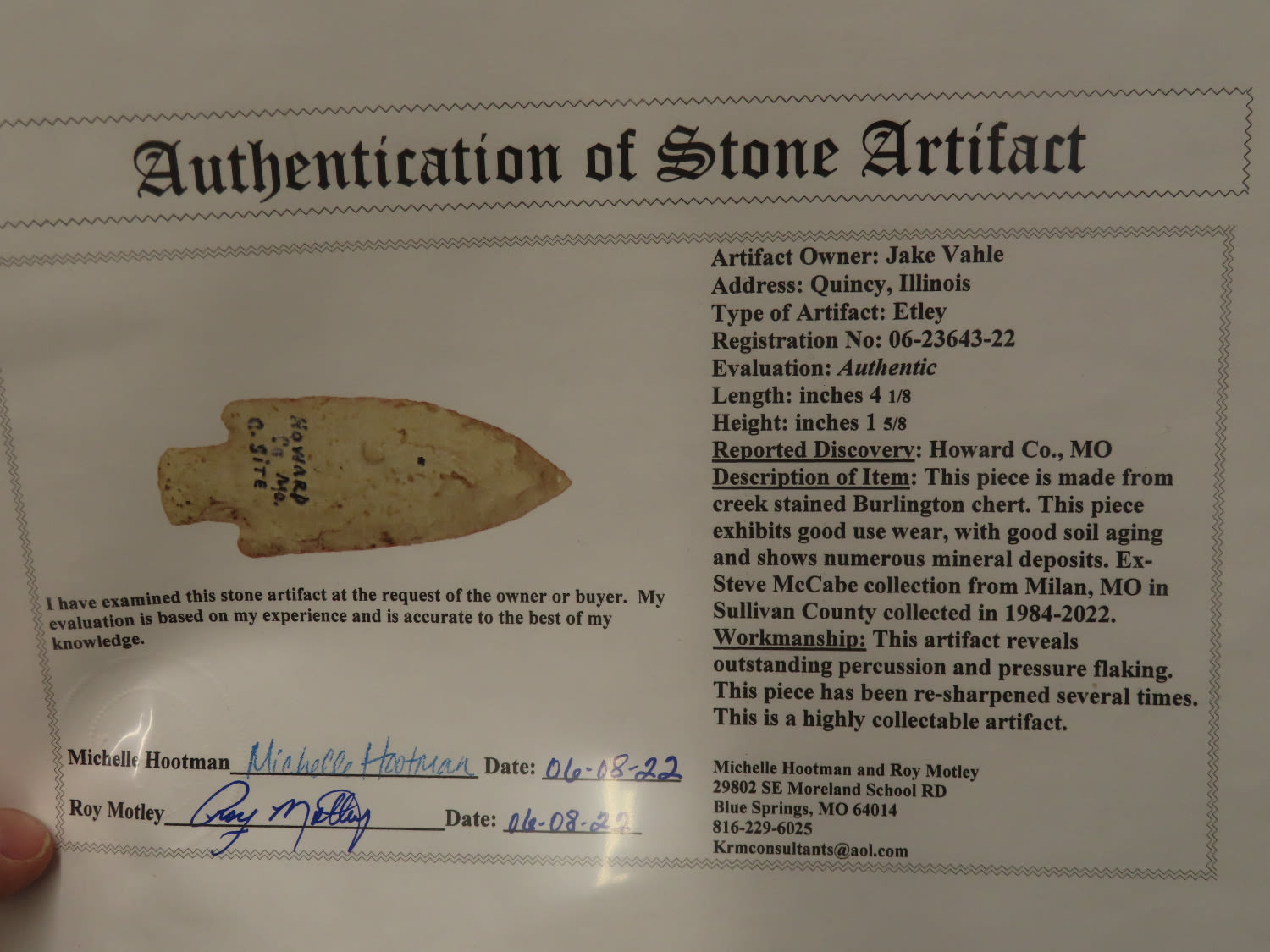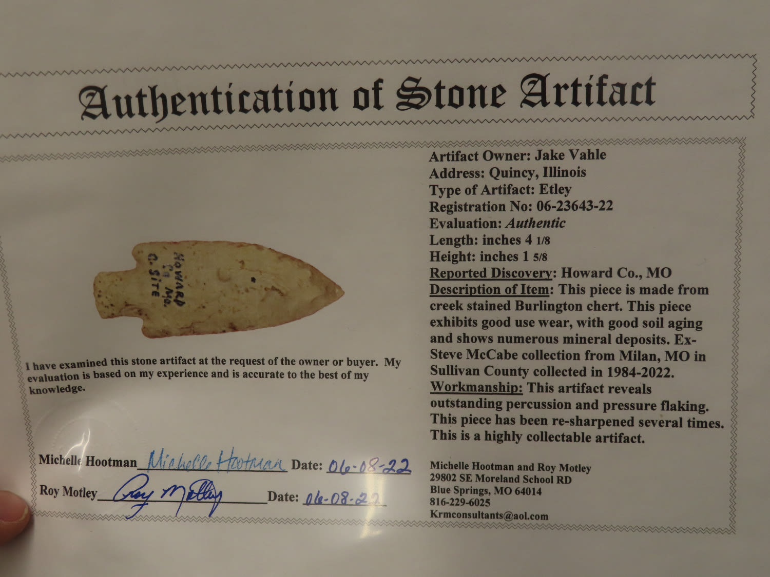 4 1/8" Etley Motley COA found in Howard Co Missouri at the C. Site