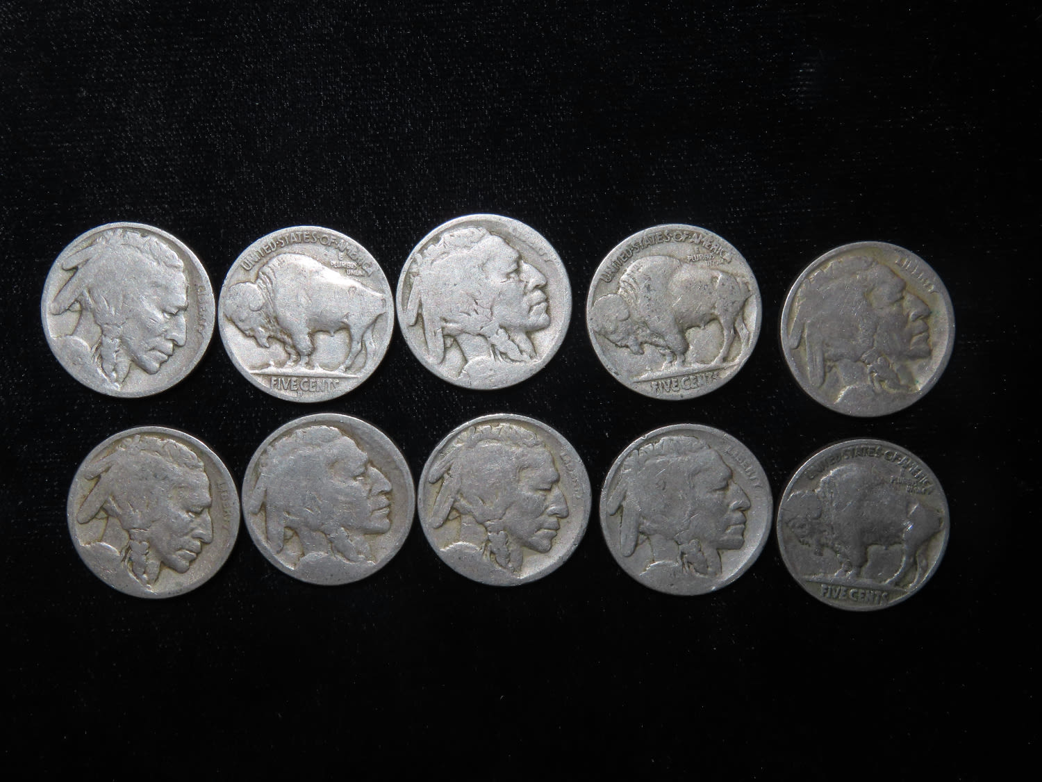 Grouping of 10 Indian Head Buffalo Nickels