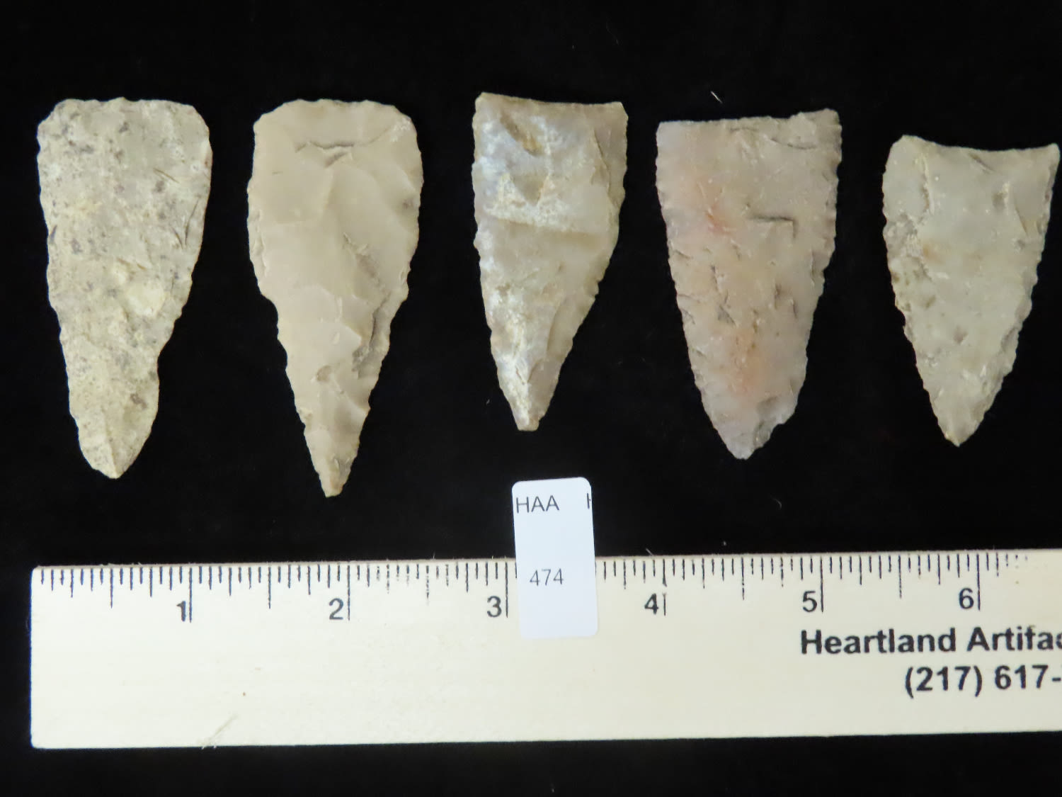 5 Texas Paleo triangles found in Texas All from Leonard Vivan Nelson Estate Dekalb Co. Il