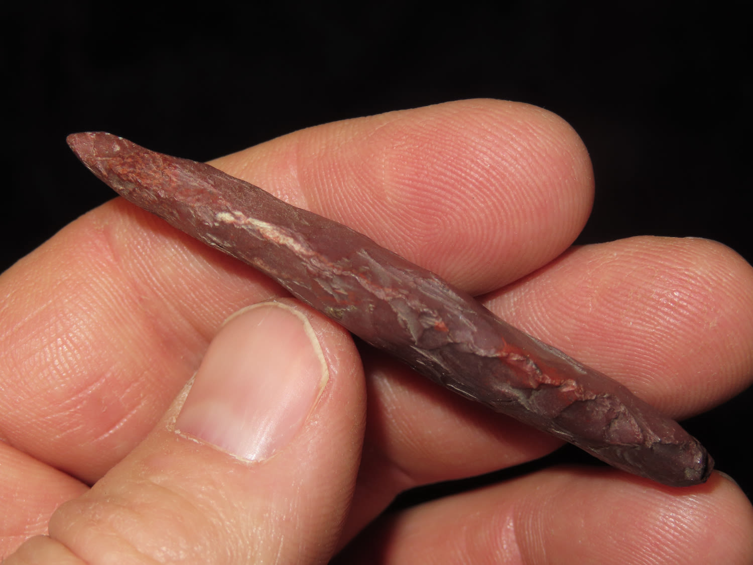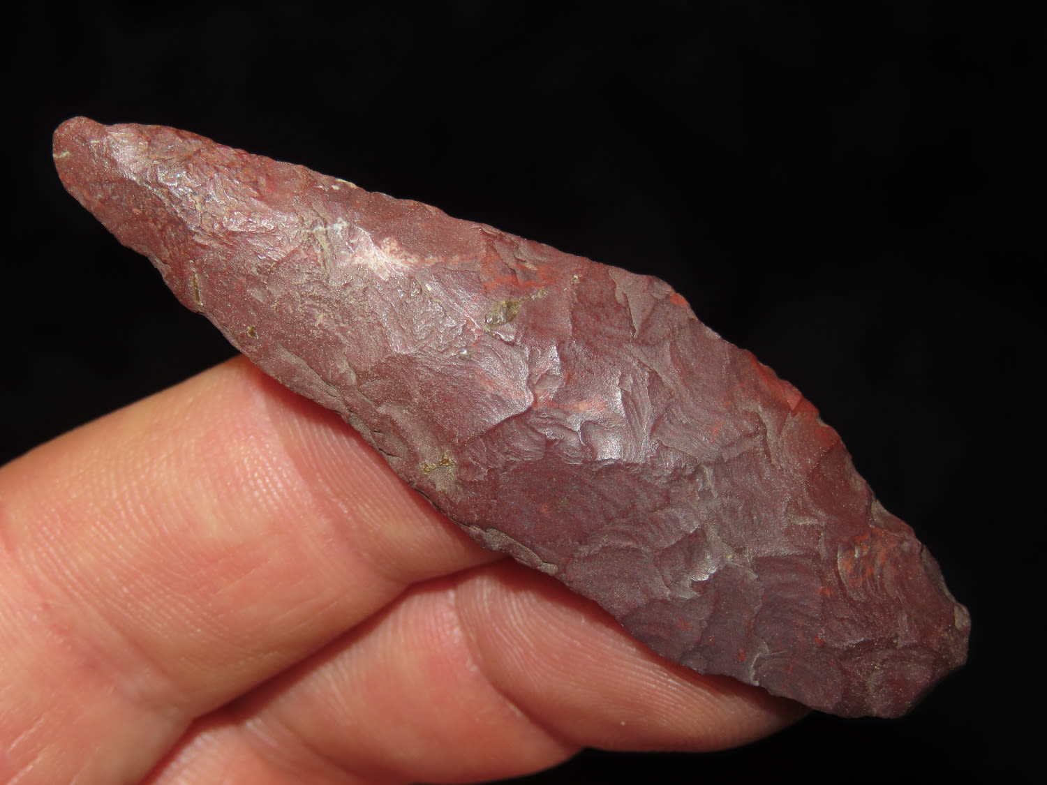 2.1/2" Western Cascade Point, Jasper, This collection was the property of the Leonard & Vivian Nelson Estate. They were life long farmers in the Dekalb County Illinois area with ancestral roots in the Dekalb area for generations beginning in the mid 1800’s.