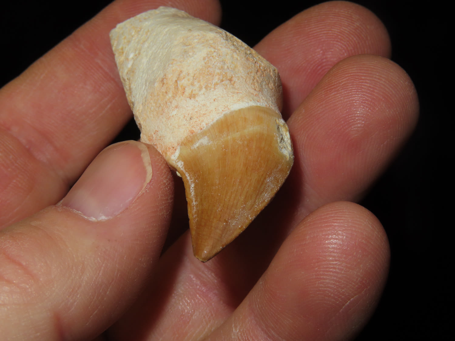 2 1/4" Mosasarous Dinosour Tooth 66 Million years old from Morocco