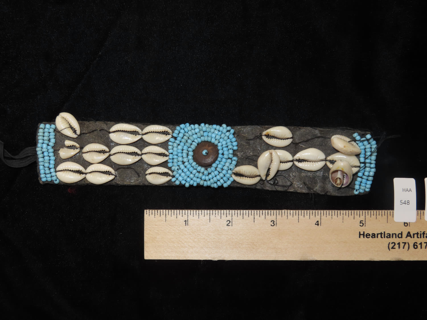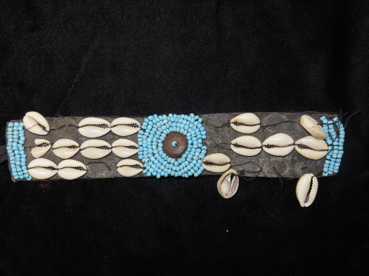 Native American Beaded item owrie and blue seed beads from southern USA 1900s