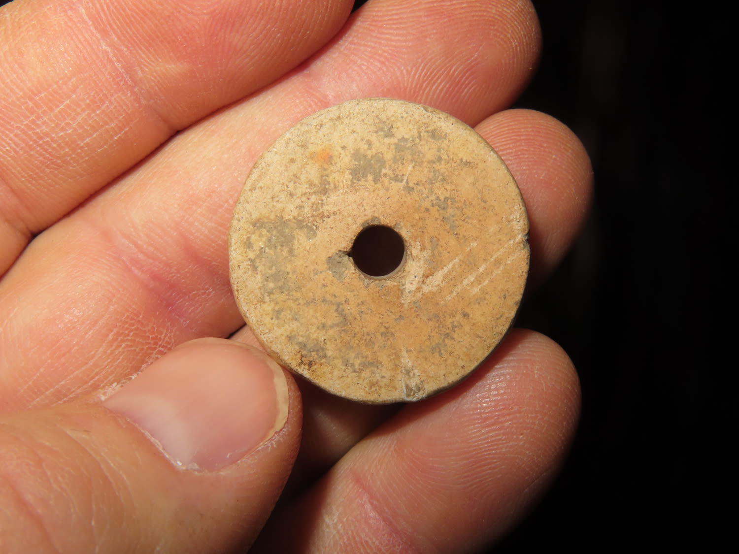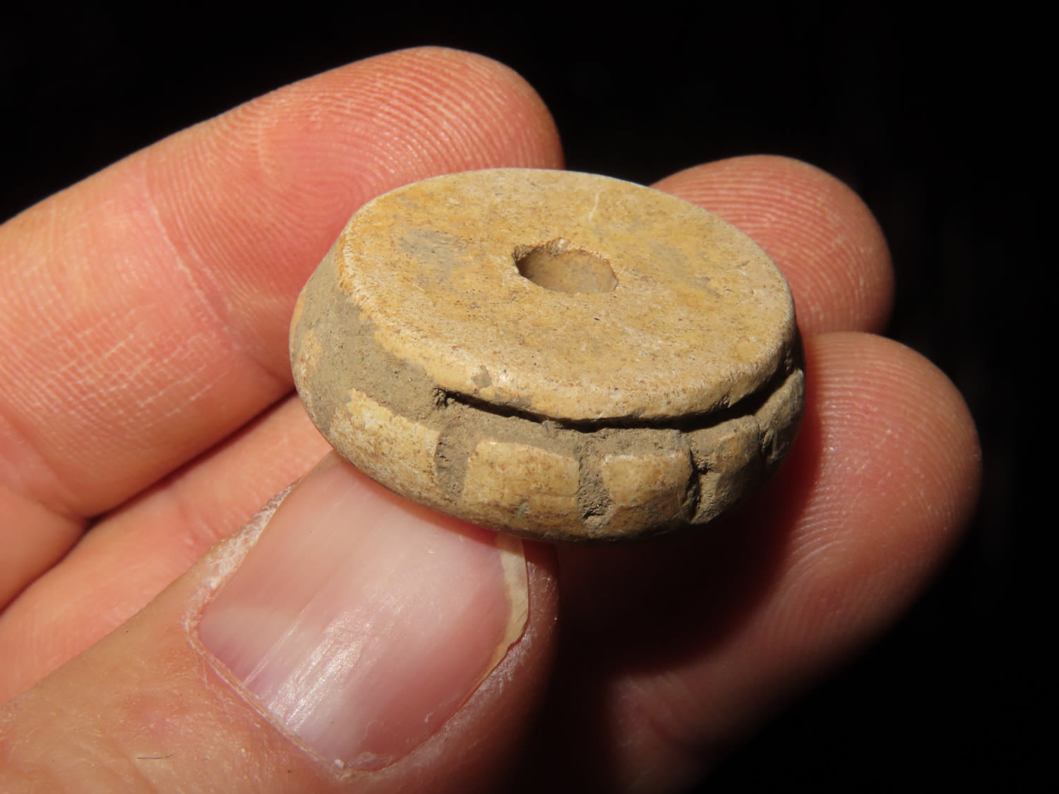 1" Pre Columbian pottery Bead whirl from Guatemala