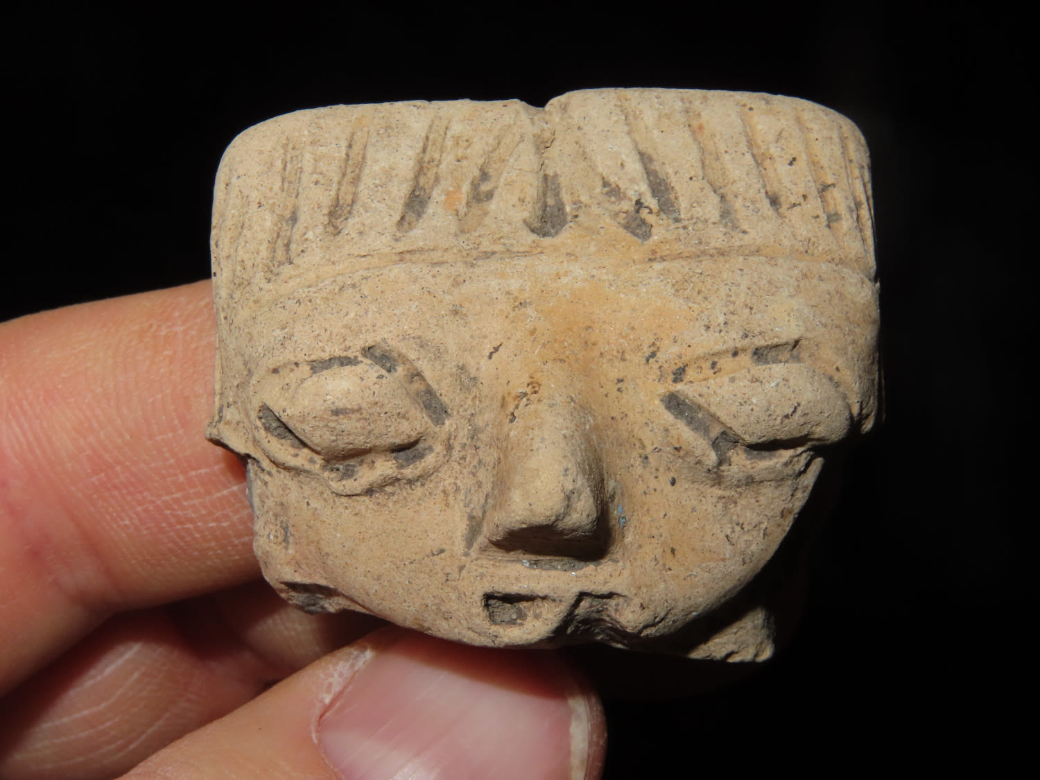 1 1/2" Pre Columbian Pottery Face Effigy Head Mayan Aztec found in South America