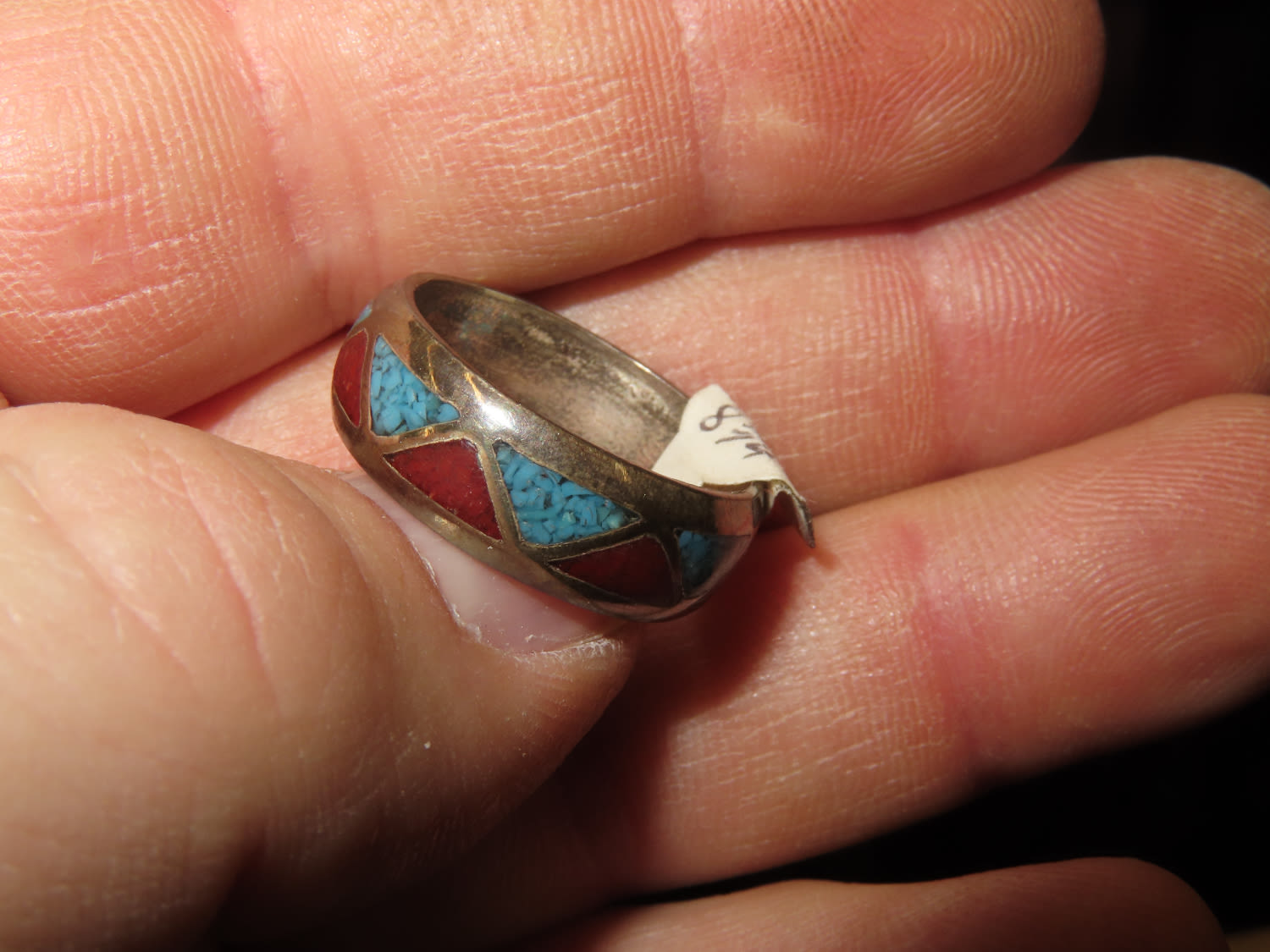 Vintage Native American Ring size 8 3/4 Blue and Red Color