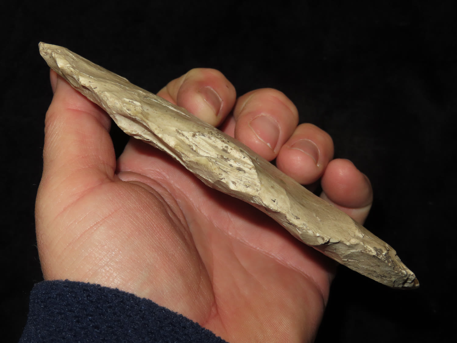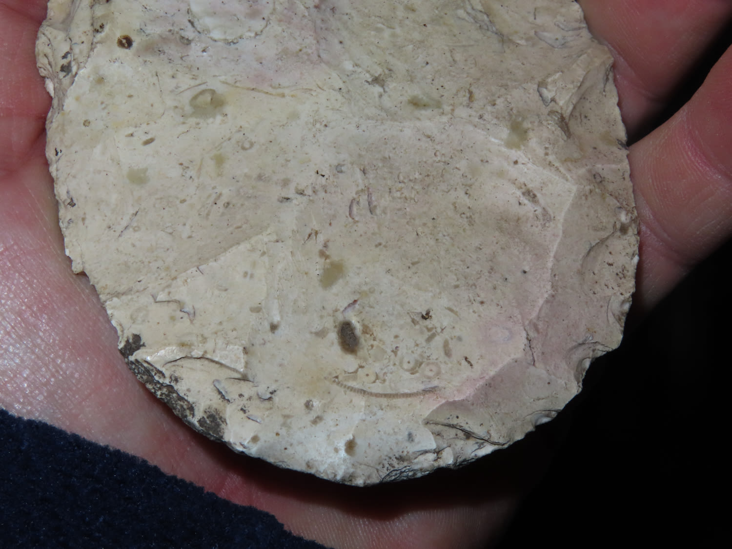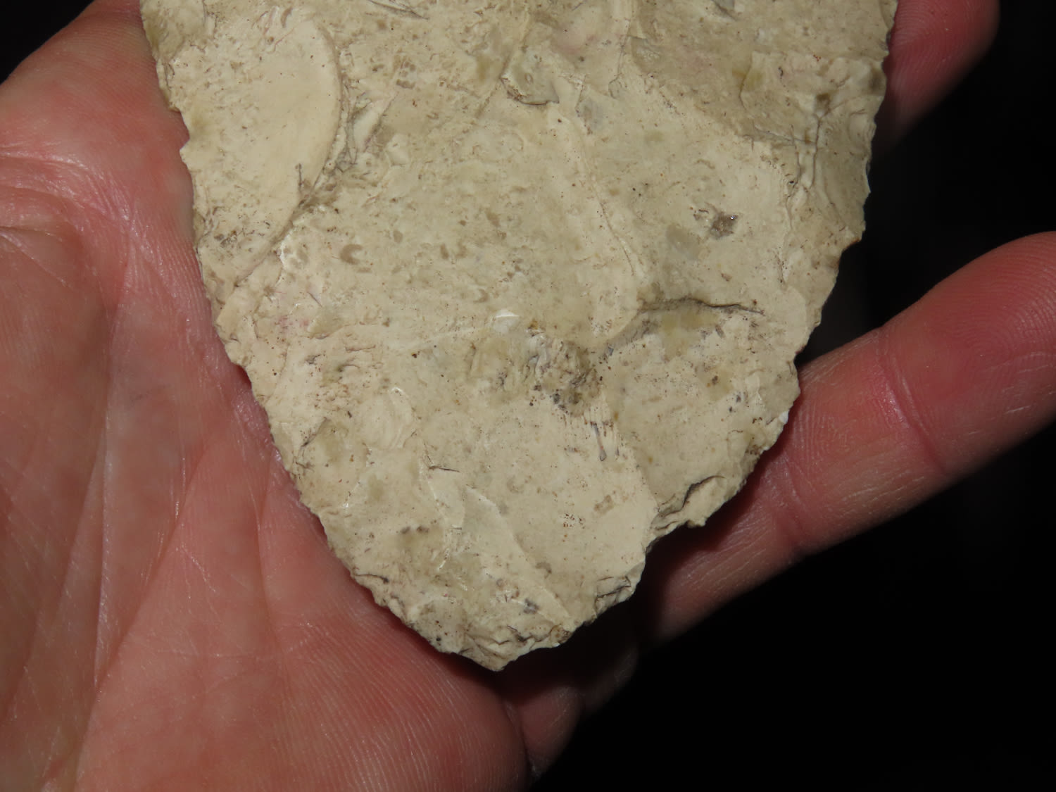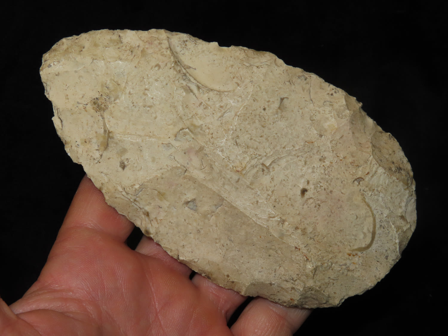 Huge 5.3/4″ Bi-Face Preform. This collection was the property of the Leonard & Vivian Nelson Estate. They were life long farmers in the Dekalb County Illinois area with ancestral roots in the Dekalb area for generations beginning in the mid 1800’s.