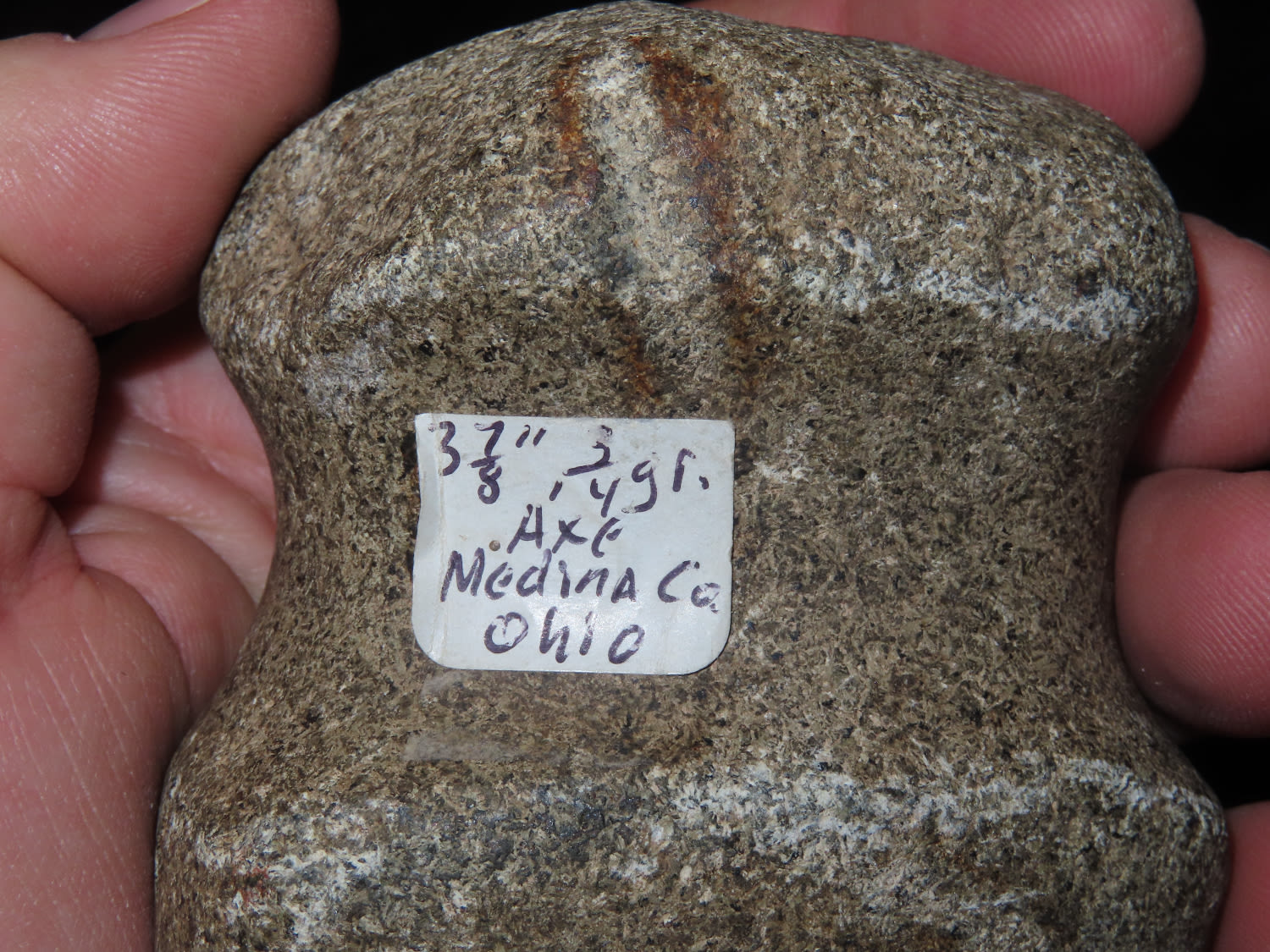4" Full Groove Axe, Medina CO Ohio. Good Color and Nice Polish. This collection was the property of the Leonard & Vivian Nelson Estate. They were life long farmers in the Dekalb County Illinois area with ancestral roots in the Dekalb area for generations beginning in the mid 1800’s.
