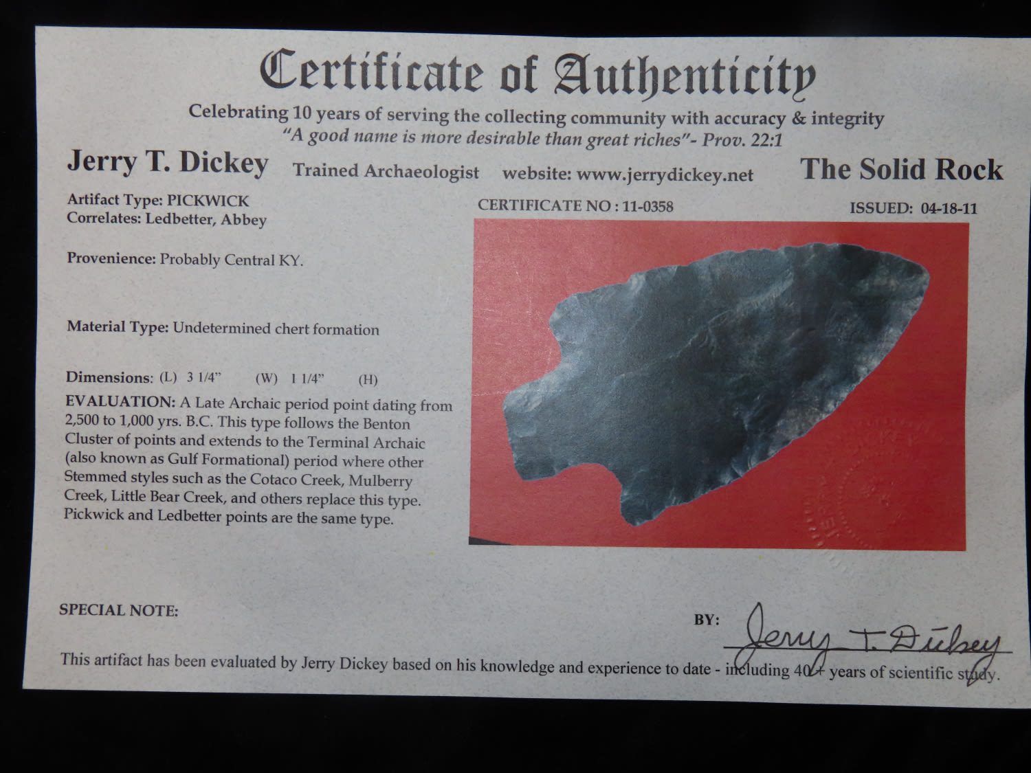 3.1/4" Pickwick, Dickey COA, Central KY, This collection was the property of the Leonard & Vivian Nelson Estate. They were life long farmers in the Dekalb County Illinois area with ancestral roots in the Dekalb area for generations beginning in the mid 1800’s.