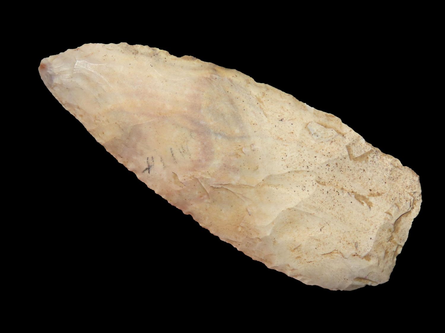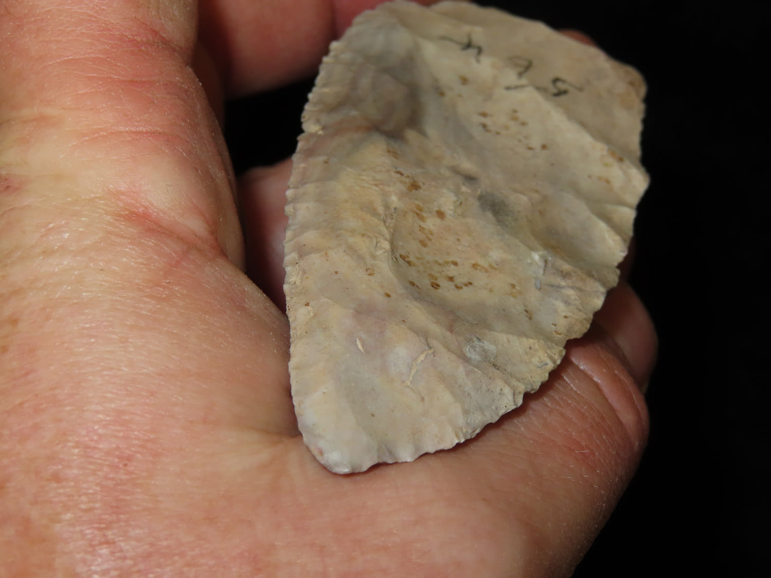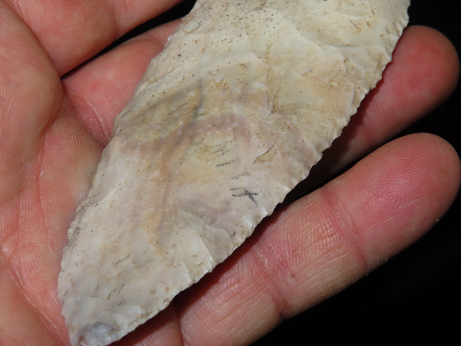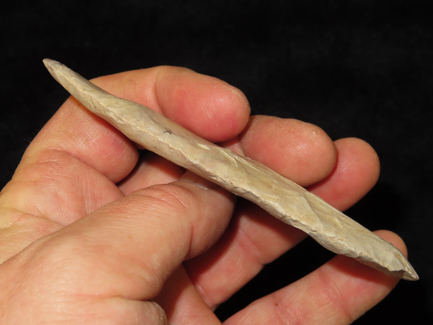 4.3/16″ Nicely Beveled Early Archaic Knife, Kane Co IL, Purchased from Nick Gatses