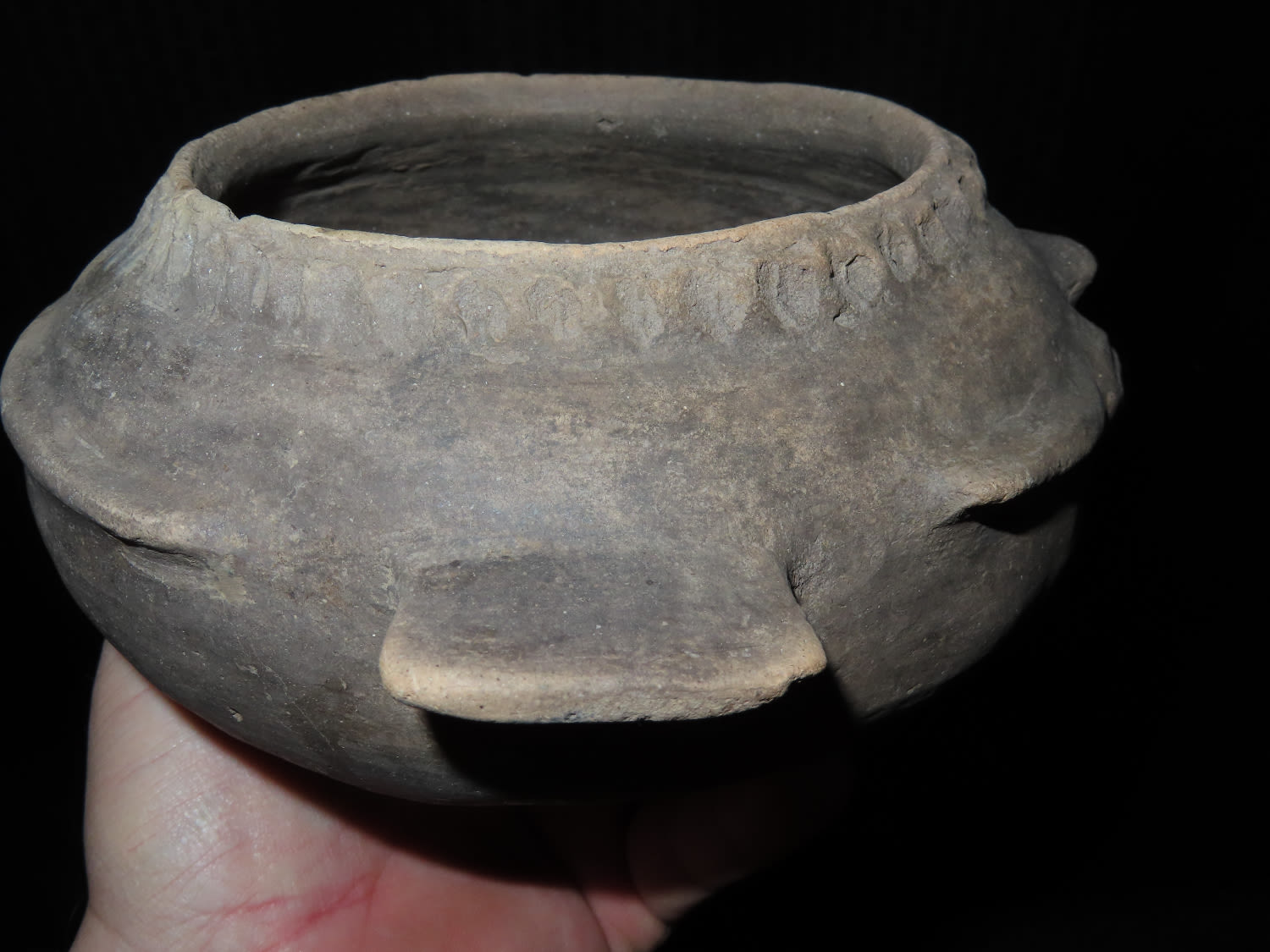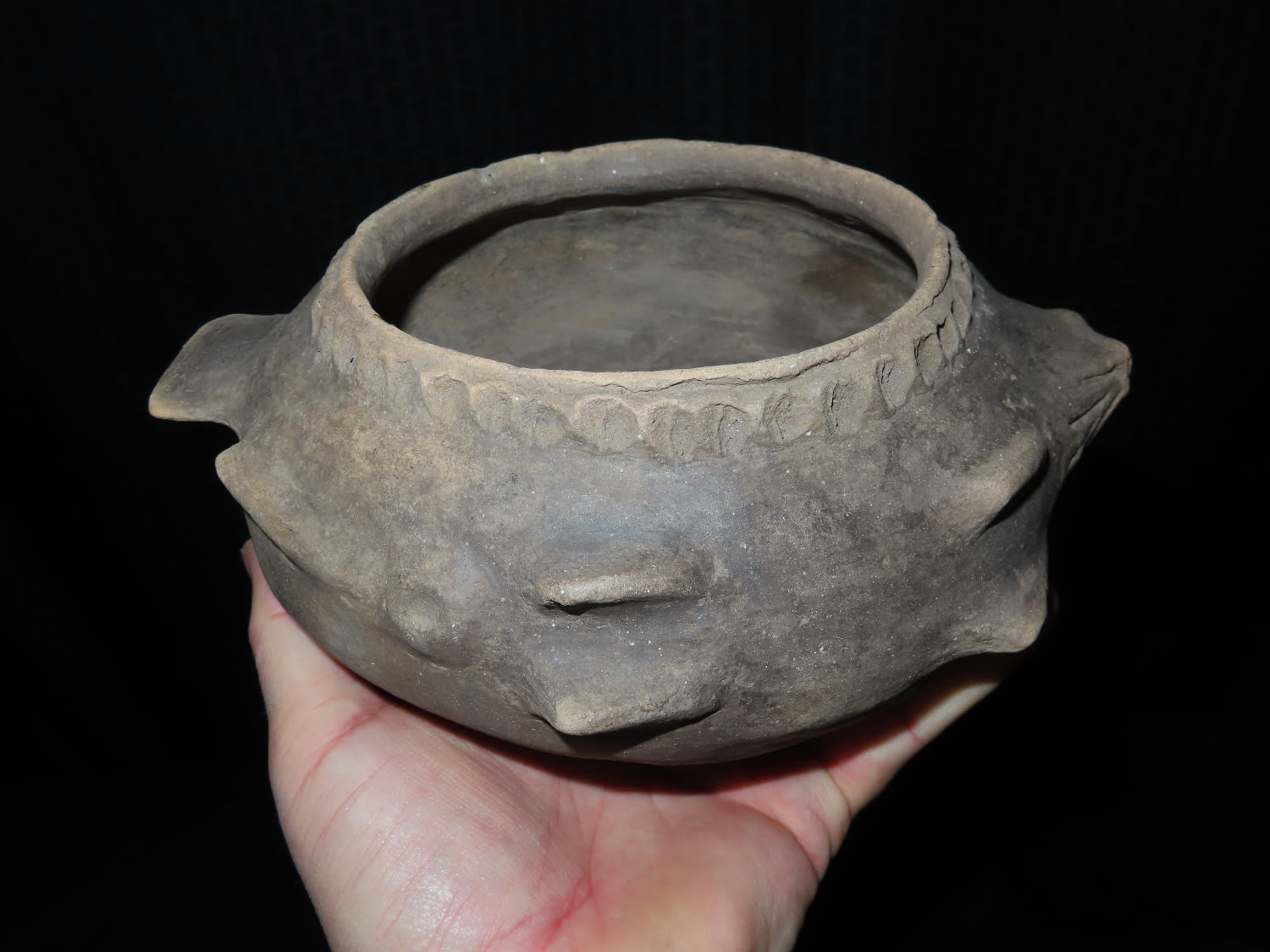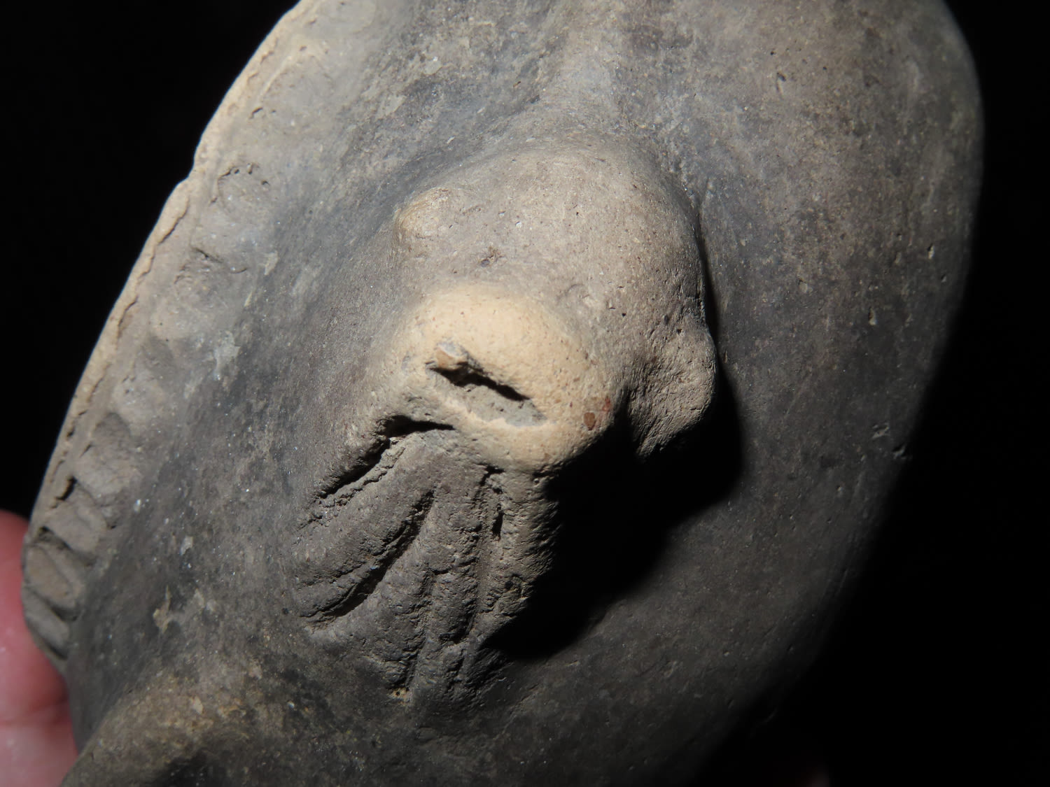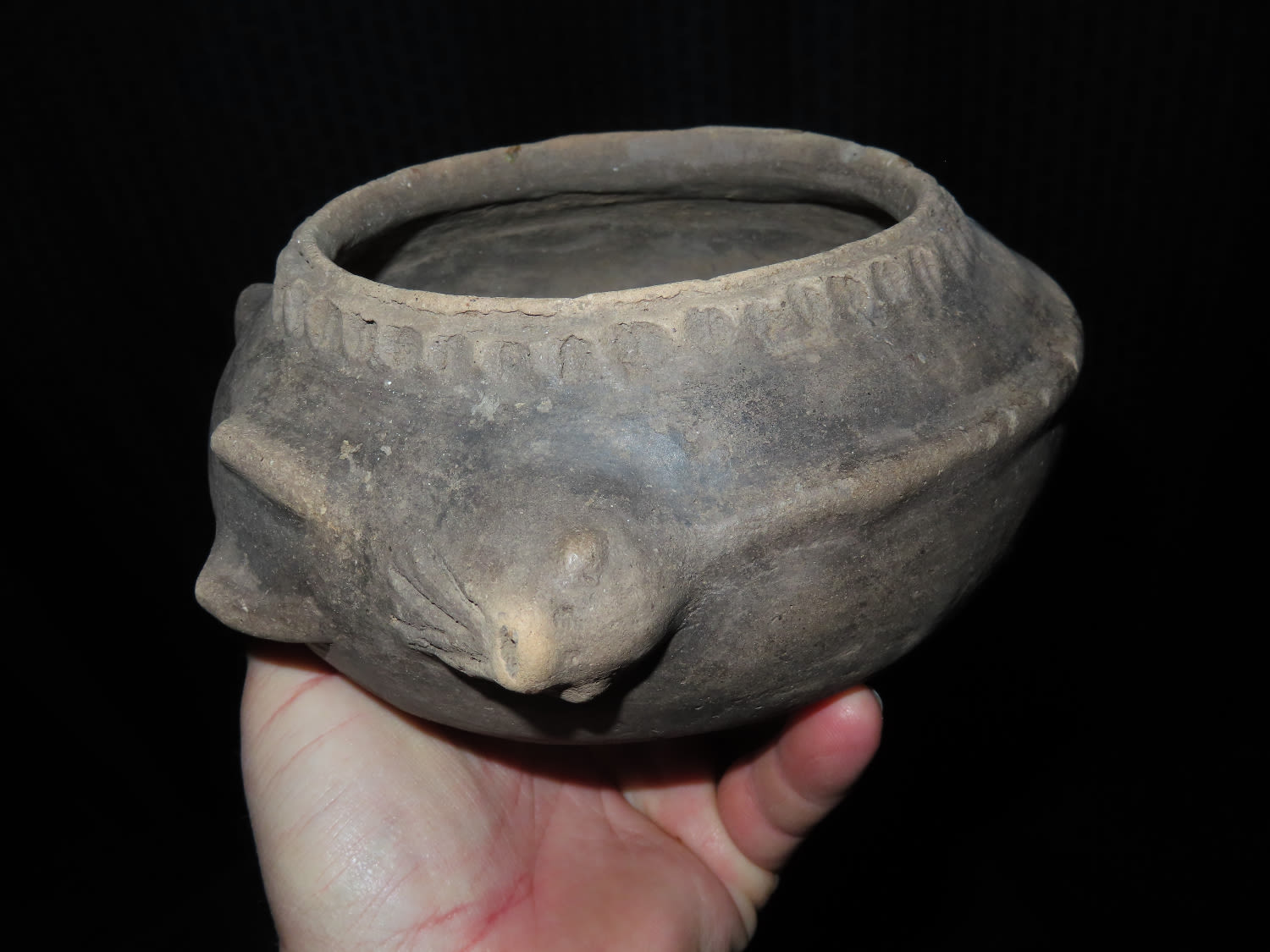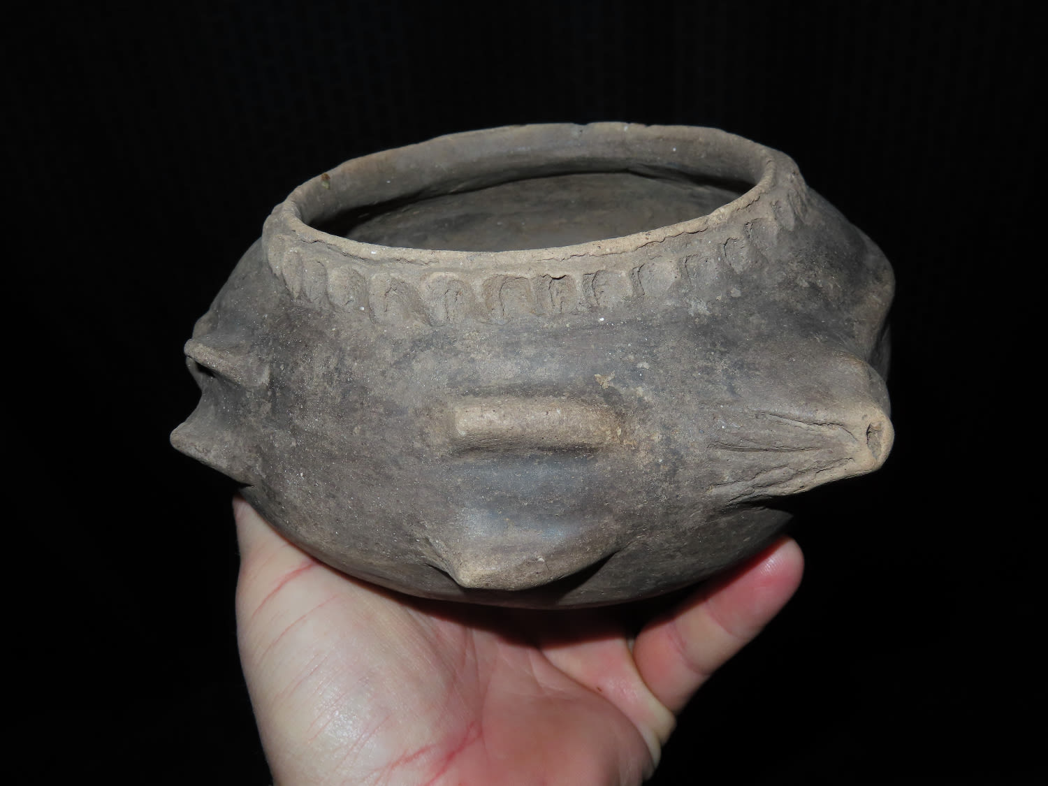 8″ Mississippian Fish Effigy Pottery Vessel, Solid found in Mississippi Co Arkansas Ex Sam Johnson