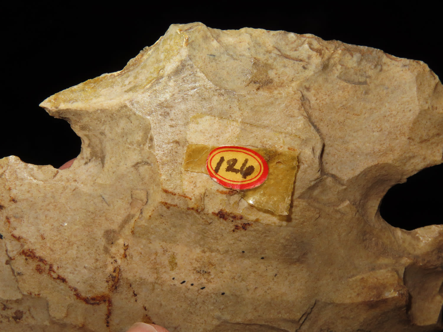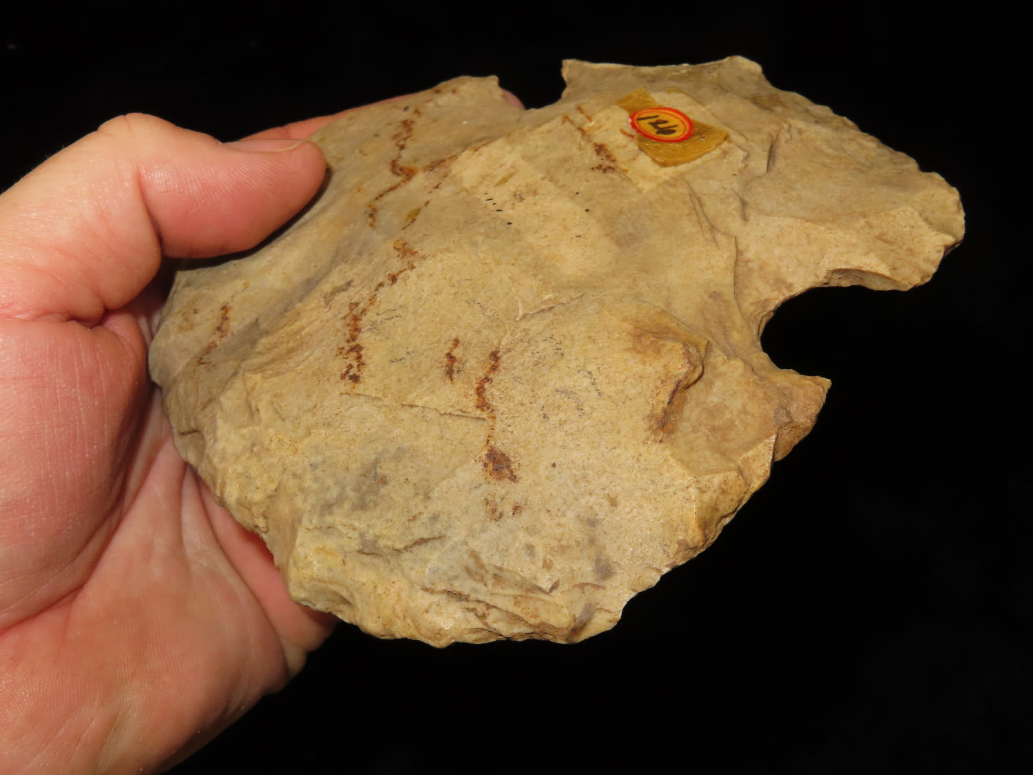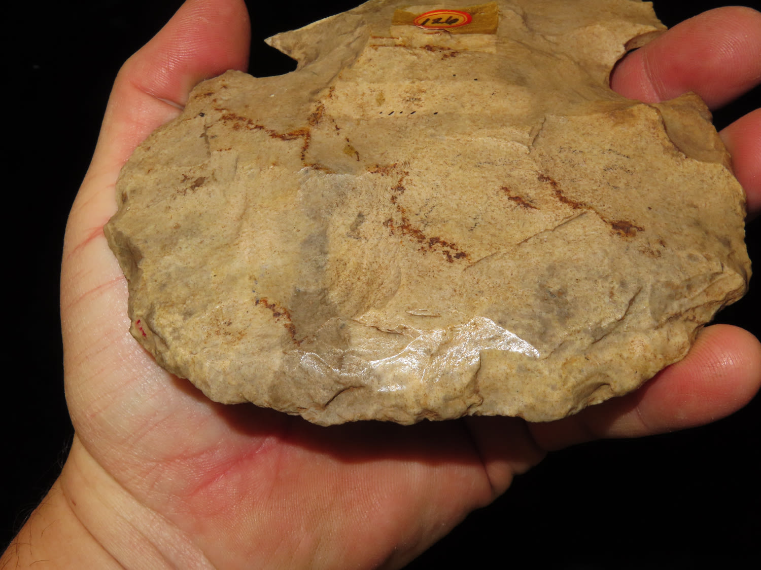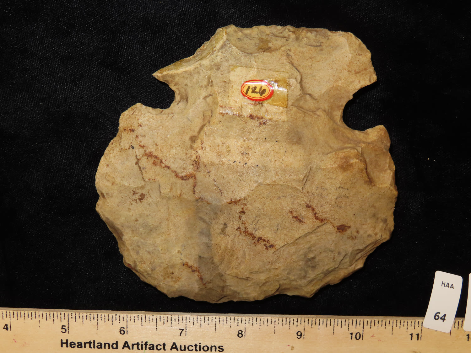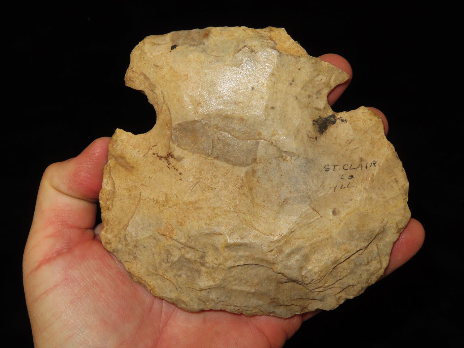 4.1/2″ Ex Byron Knoblock Notched Hoe, St Claire Co Illinois, Ex Bill Kacer Family Collection-Majority of his relics were found by family, or purchased from Stan Copeland in the 60’s. The Kacer Family owned a landscaping business in Northern Illinois near Deerfiled for several generations.