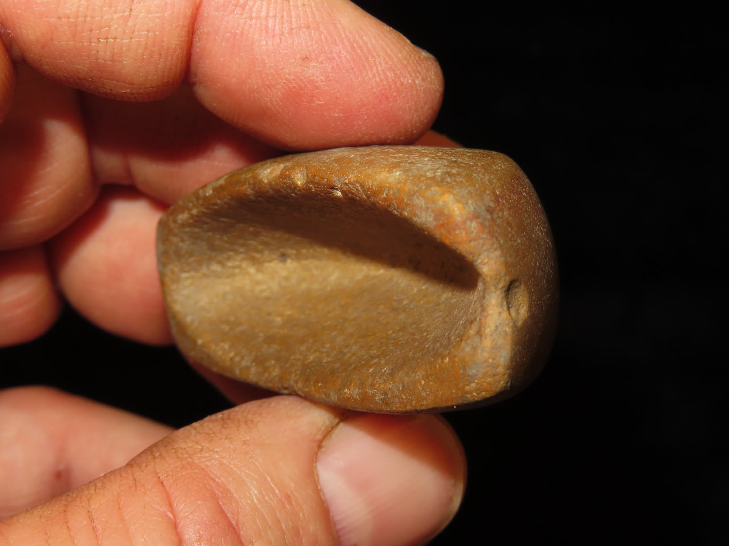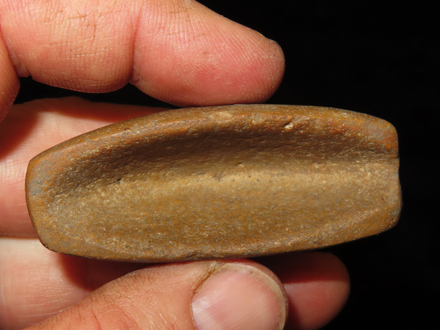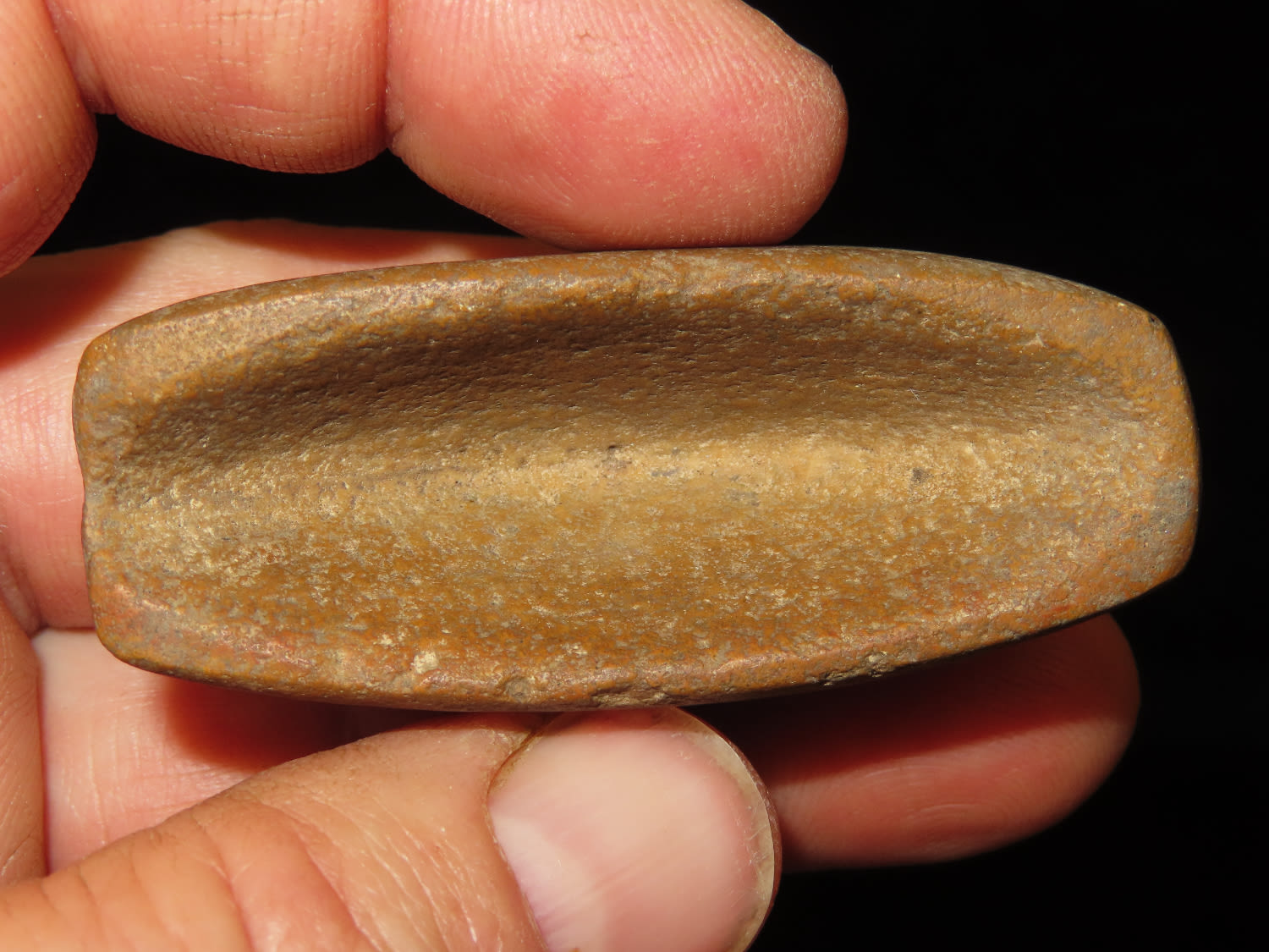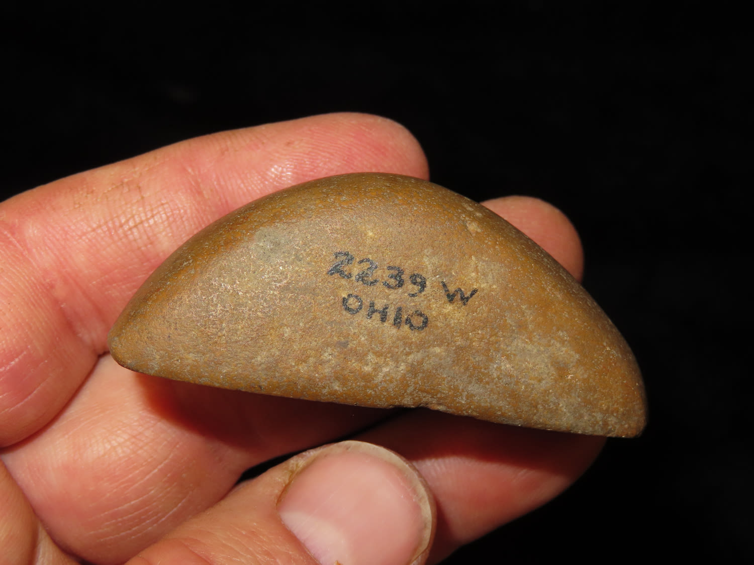 2.1/4″ Boatstone, Very Deeply Cupped, Ohio, Brown Quartz, Finely Made, , Ex Bill Kacer Family Collection-Majority of his relics were found by family, or purchased from Stan Copeland in the 60’s. The Kacer Family owned a landscaping business in Northern Illinois near Deerfiled for several generations.