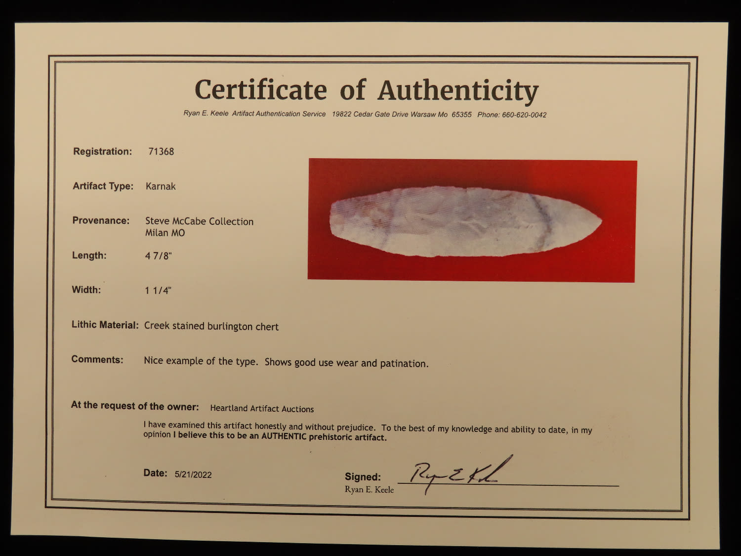 4 7/8″ Karnak, Keele COA, Ex Steve McCabe Collection, Sullivan Co Missouri