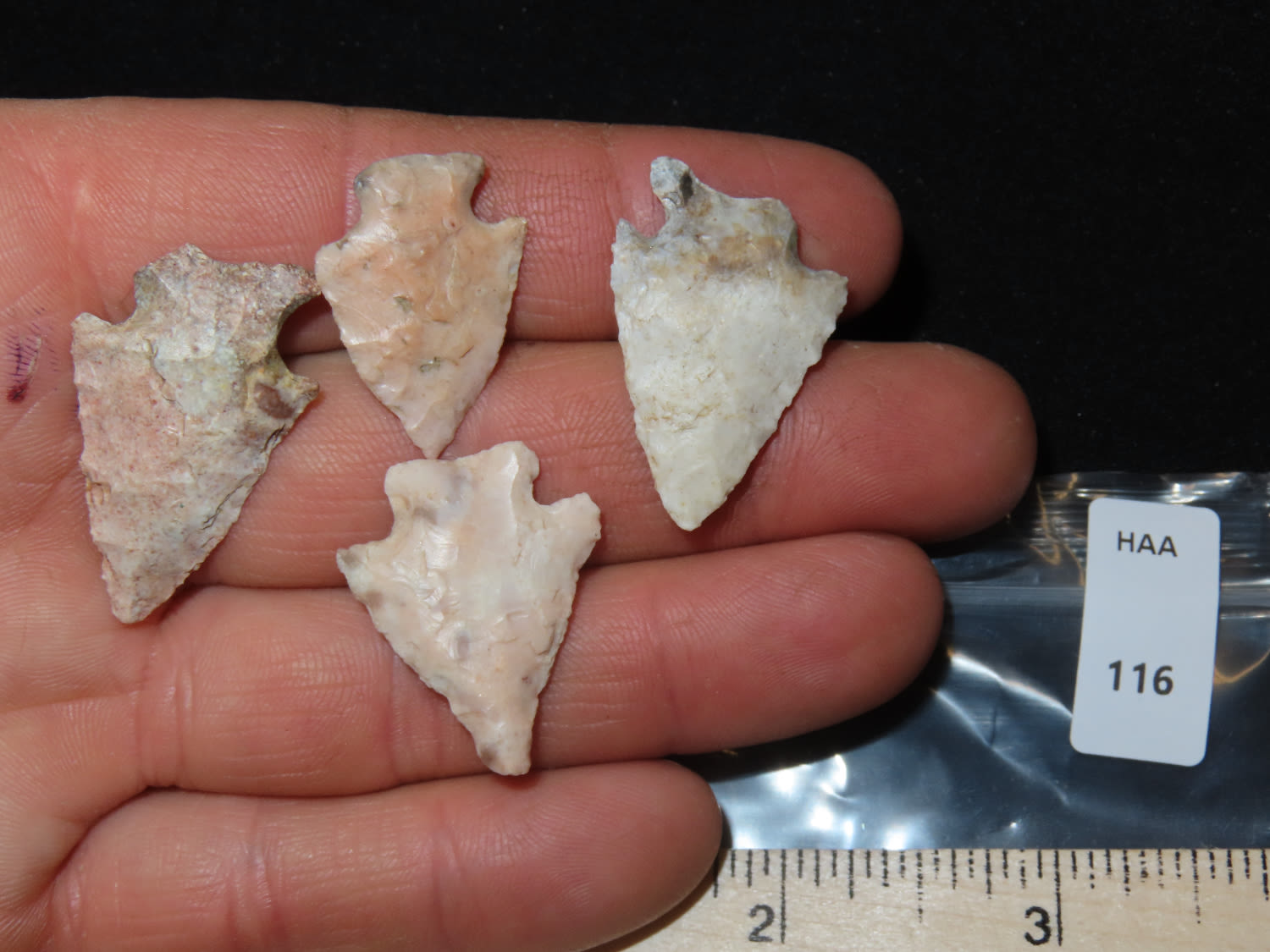 Lot of 4 Points, Arrowheads, found by Gauge Craig in Adair Co MO