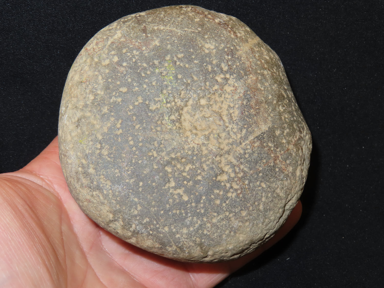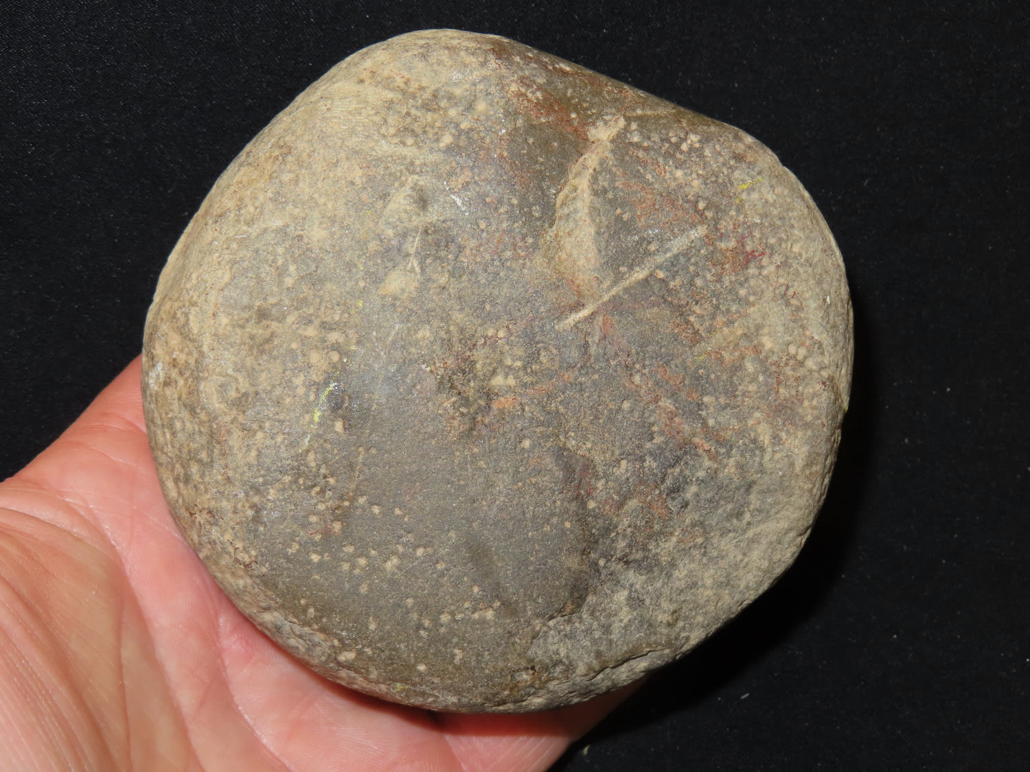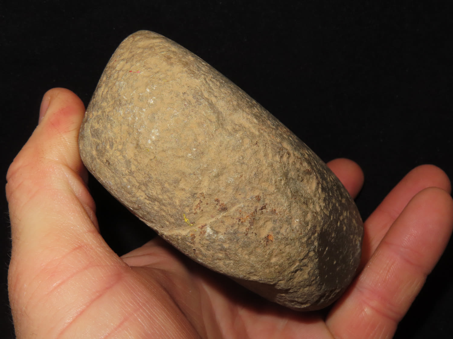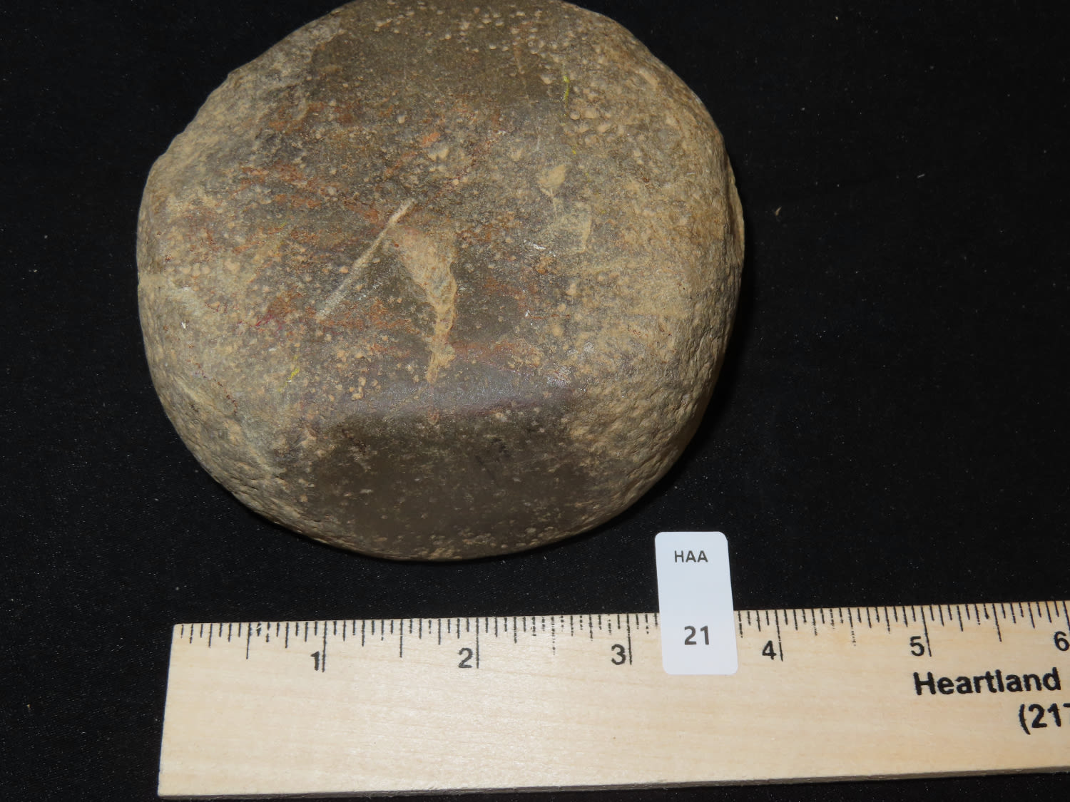 4″ Nutting Stone, Ex Bill Kacer Family Collection-Majority of his relics were found by family, or purchased from Stan Copeland in the 60’s. The Kacer Family owned a landscaping business in Northern Illinois near Deerfiled for several generations.