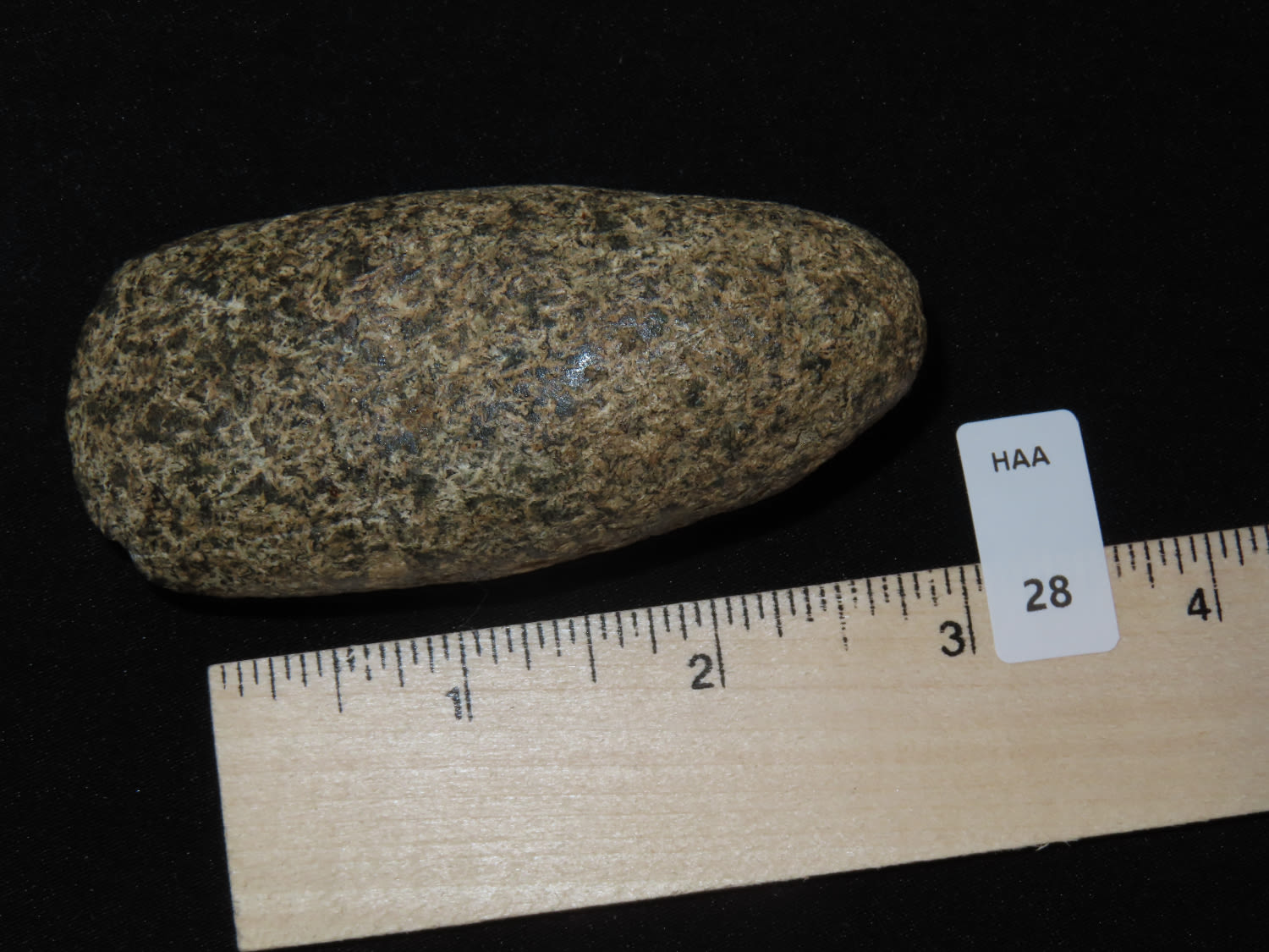 3.1/4″ Celt, Nice Material and Use Wear, Lake CO IL, Ex Bill Kacer Family Collection-Majority of his relics were found by family, or purchased from Stan Copeland in the 60’s. The Kacer Family owned a landscaping business in Northern Illinois near Deerfiled for several generations.