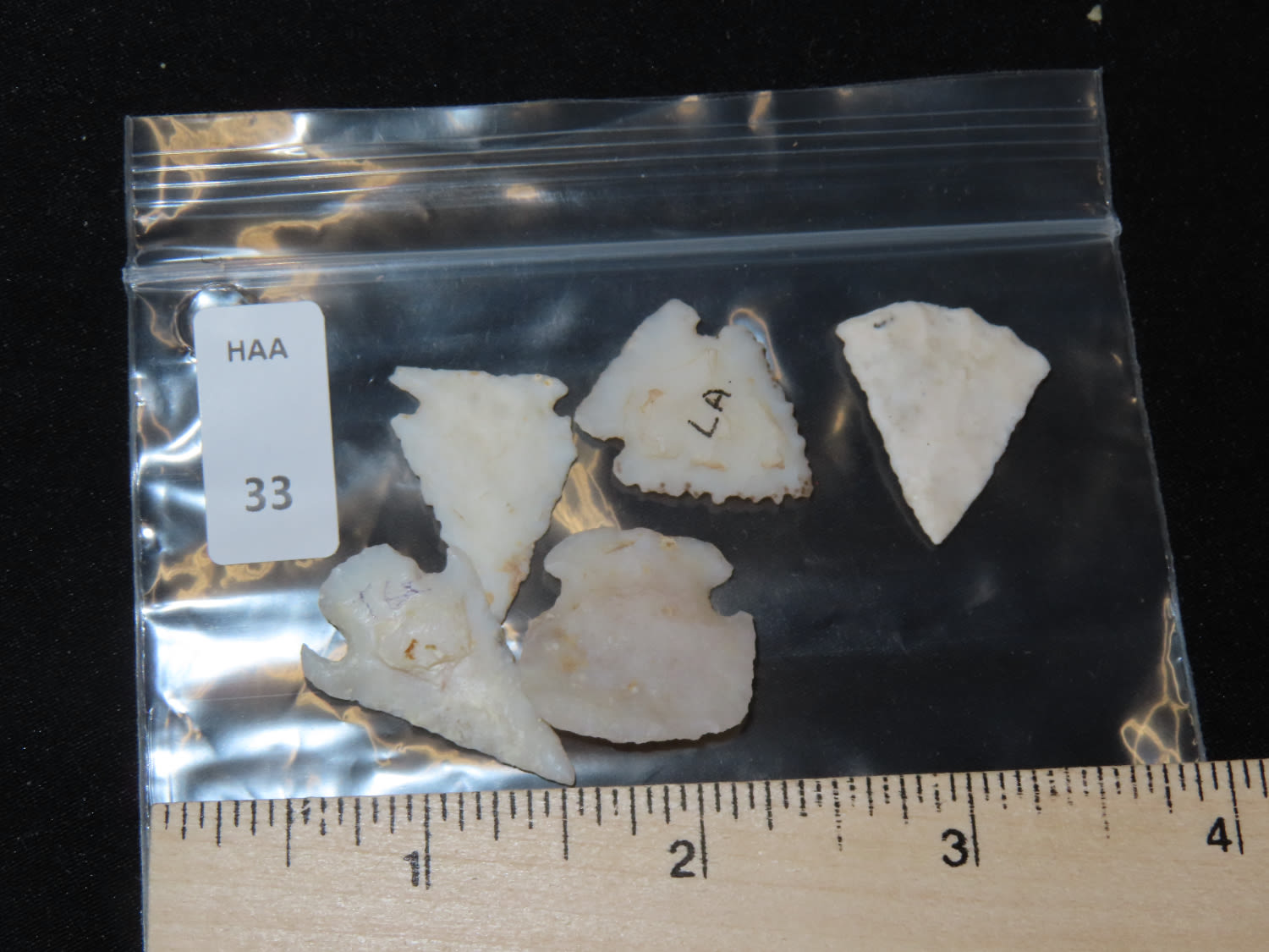 Grouping of Arrowheads, Ex Bill Kacer Family Collection-Majority of his relics were found by family, or purchased from Stan Copeland in the 60’s. The Kacer Family owned a landscaping business in Northern Illinois near Deerfiled for several generations.