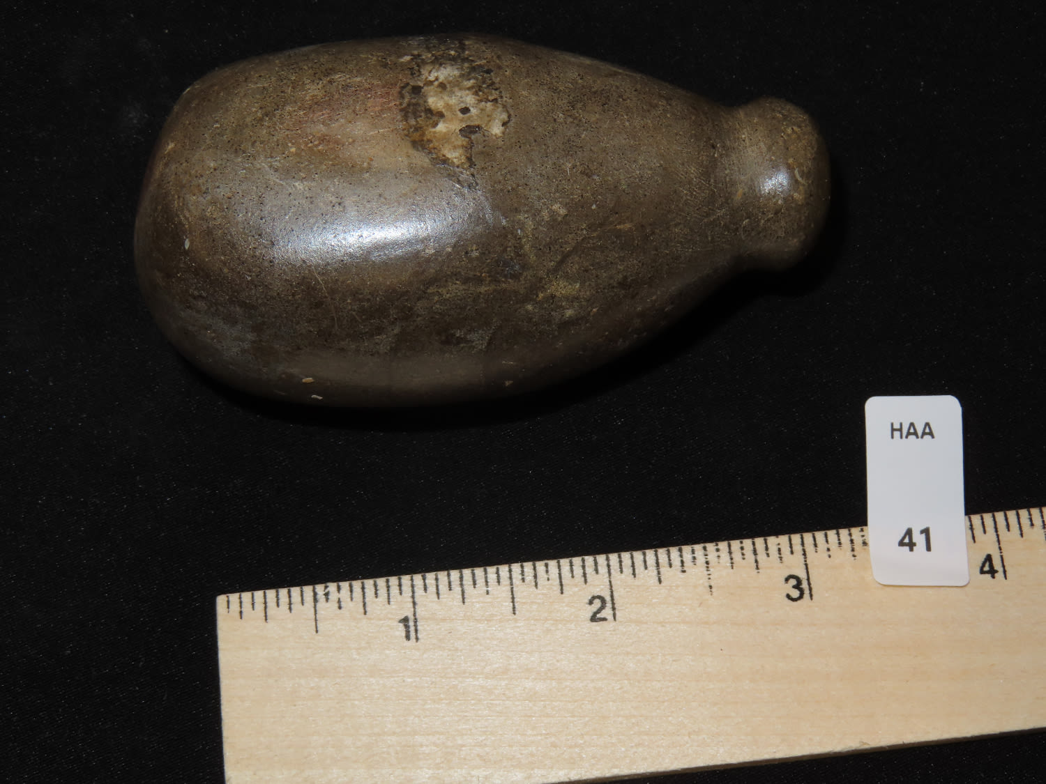 3.1/2″ Plummet, Arizonia, Ex Bill Kacer Family Collection-Majority of his relics were found by family, or purchased from Stan Copeland in the 60’s. The Kacer Family owned a landscaping business in Northern Illinois near Deerfiled for several generations.