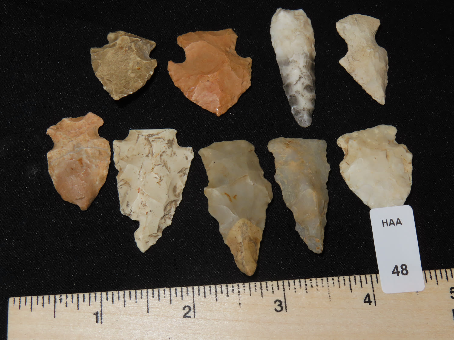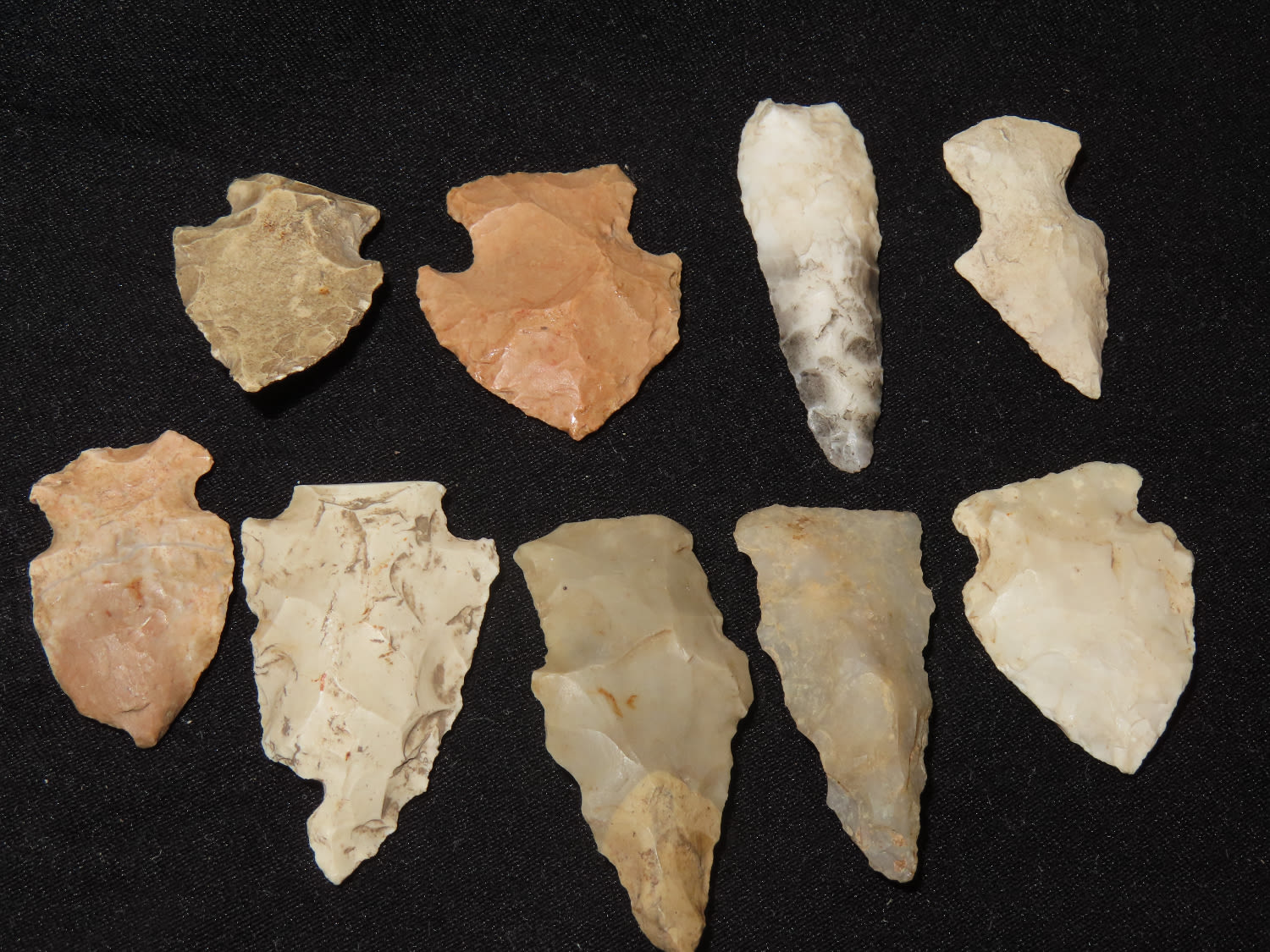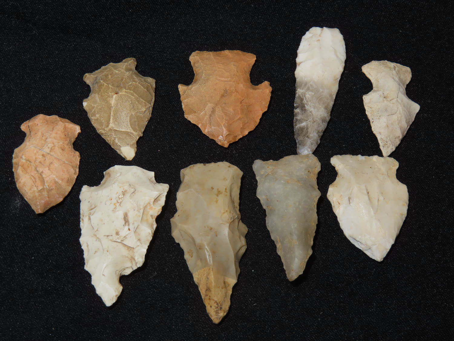 Grouping of Arrowheads, Ex Bill Kacer Family Collection-Majority of his relics were found by family, or purchased from Stan Copeland in the 60’s. The Kacer Family owned a landscaping business in Northern Illinois near Deerfiled for several generations.