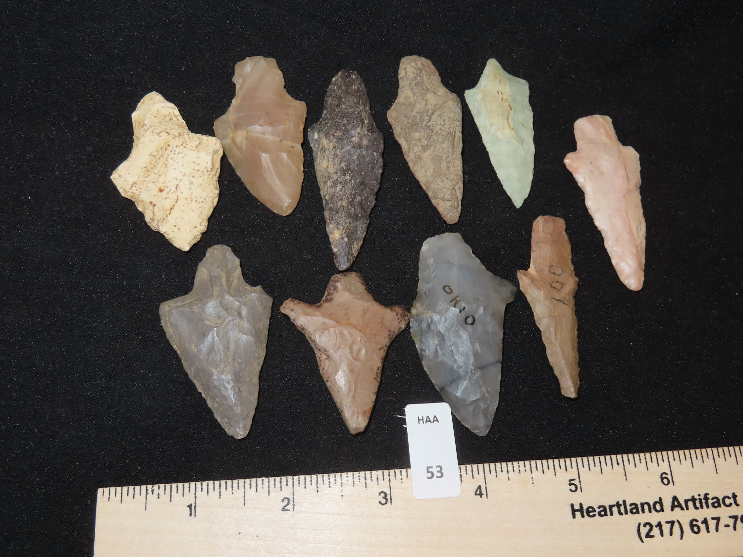 Grouping of Arrowheads, Ex Bill Kacer Family Collection-Majority of his relics were found by family, or purchased from Stan Copeland in the 60’s. The Kacer Family owned a landscaping business in Northern Illinois near Deerfiled for several generations.