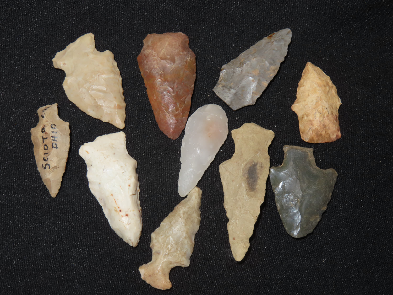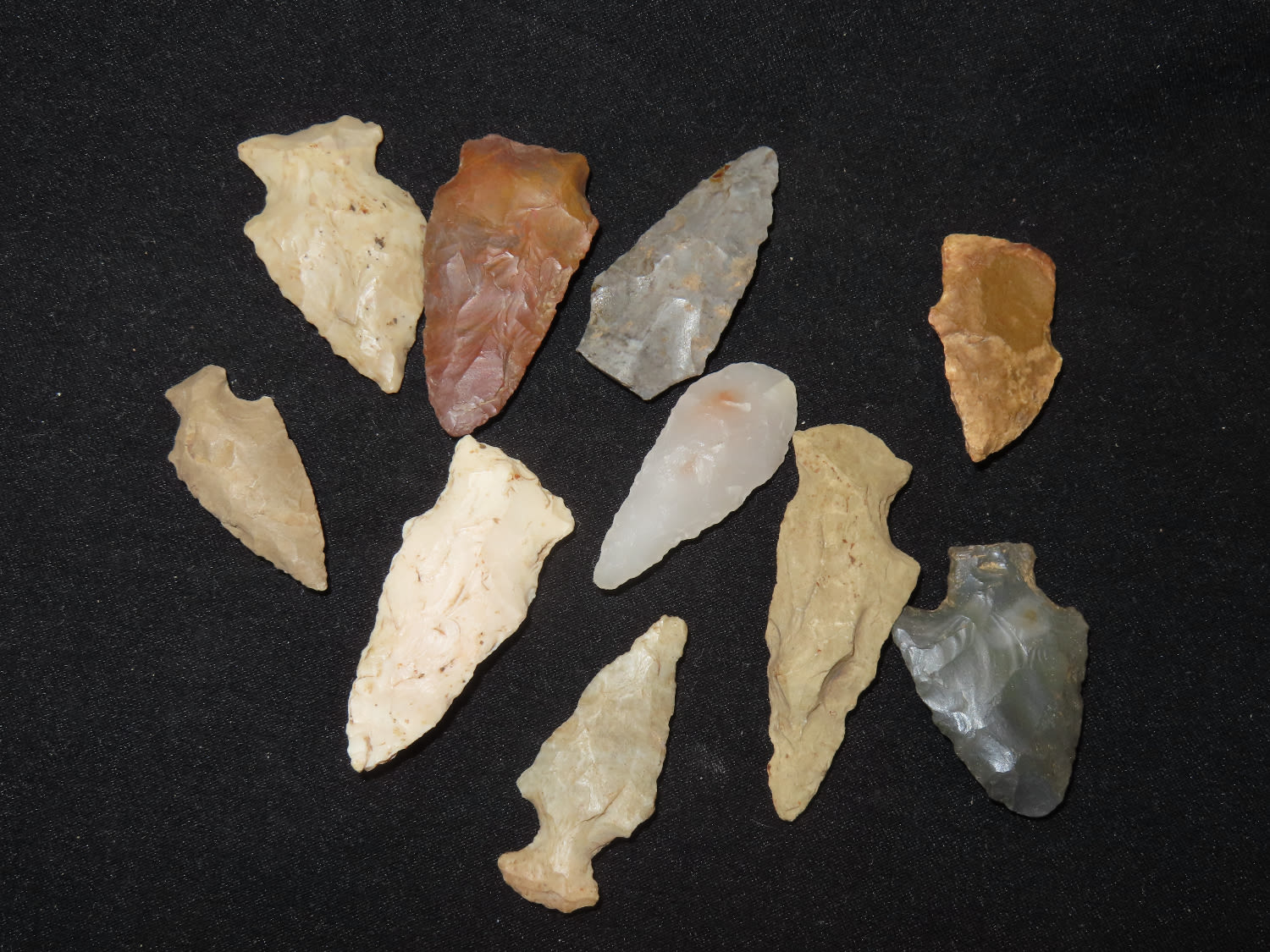Grouping of Arrowheads, Ex Bill Kacer Family Collection-Majority of his relics were found by family, or purchased from Stan Copeland in the 60’s. The Kacer Family owned a landscaping business in Northern Illinois near Deerfiled for several generations.