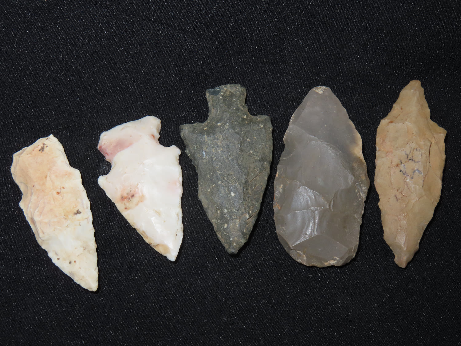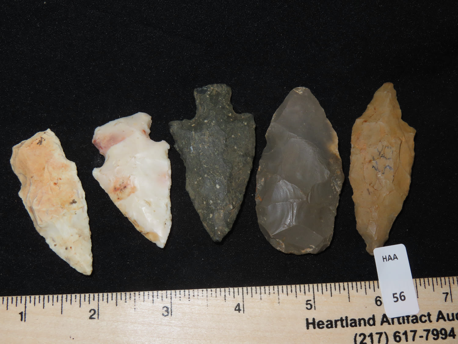 Grouping of Arrowheads, Ex Bill Kacer Family Collection-Majority of his relics were found by family, or purchased from Stan Copeland in the 60’s. The Kacer Family owned a landscaping business in Northern Illinois near Deerfiled for several generations.