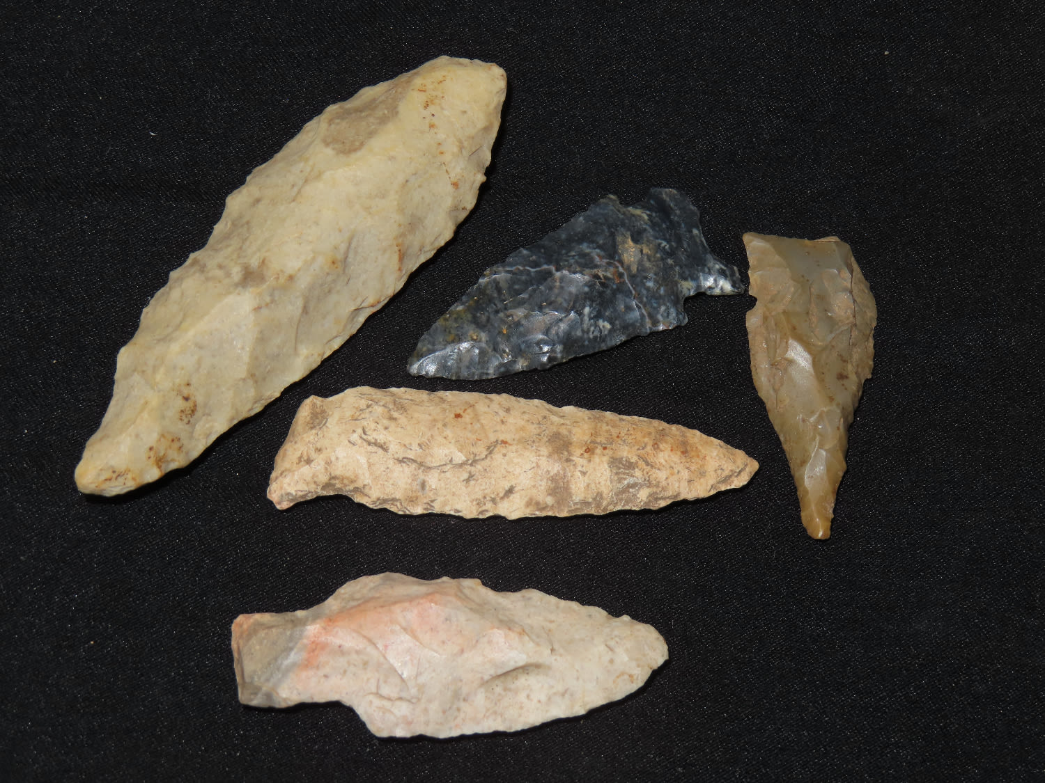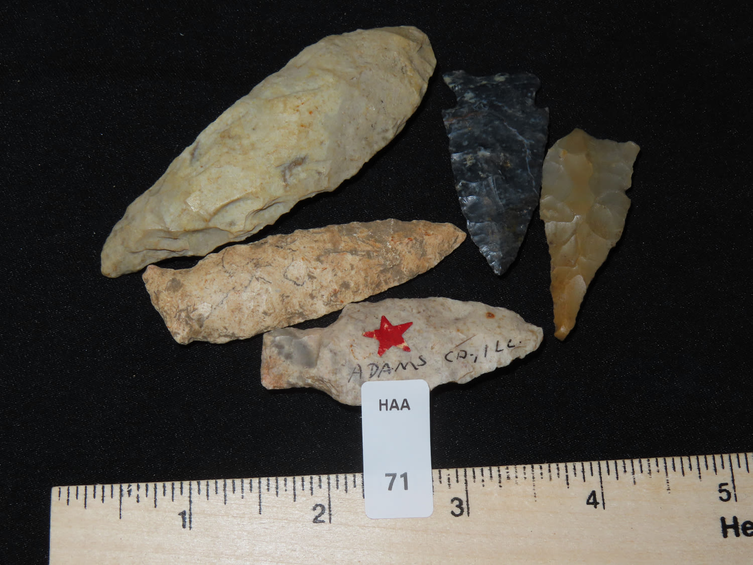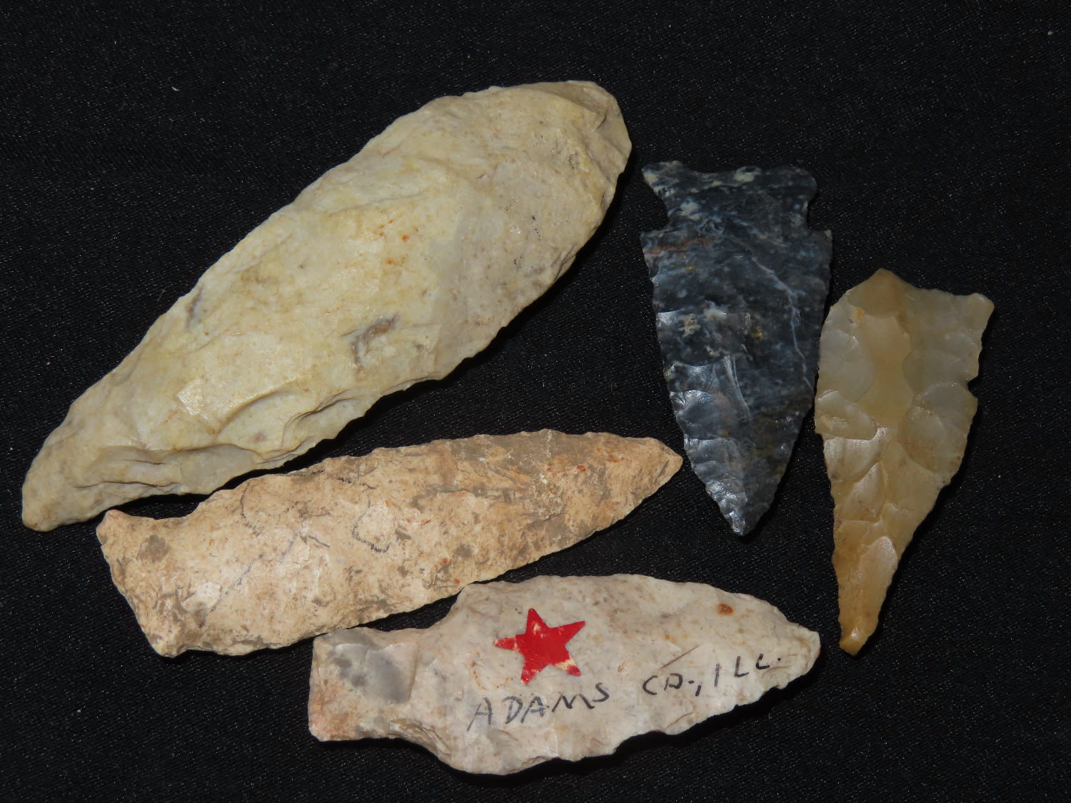 Grouping of Arrowheads, Ex Bill Kacer Family Collection-Majority of his relics were found by family, or purchased from Stan Copeland in the 60’s. The Kacer Family owned a landscaping business in Northern Illinois near Deerfiled for several generations.