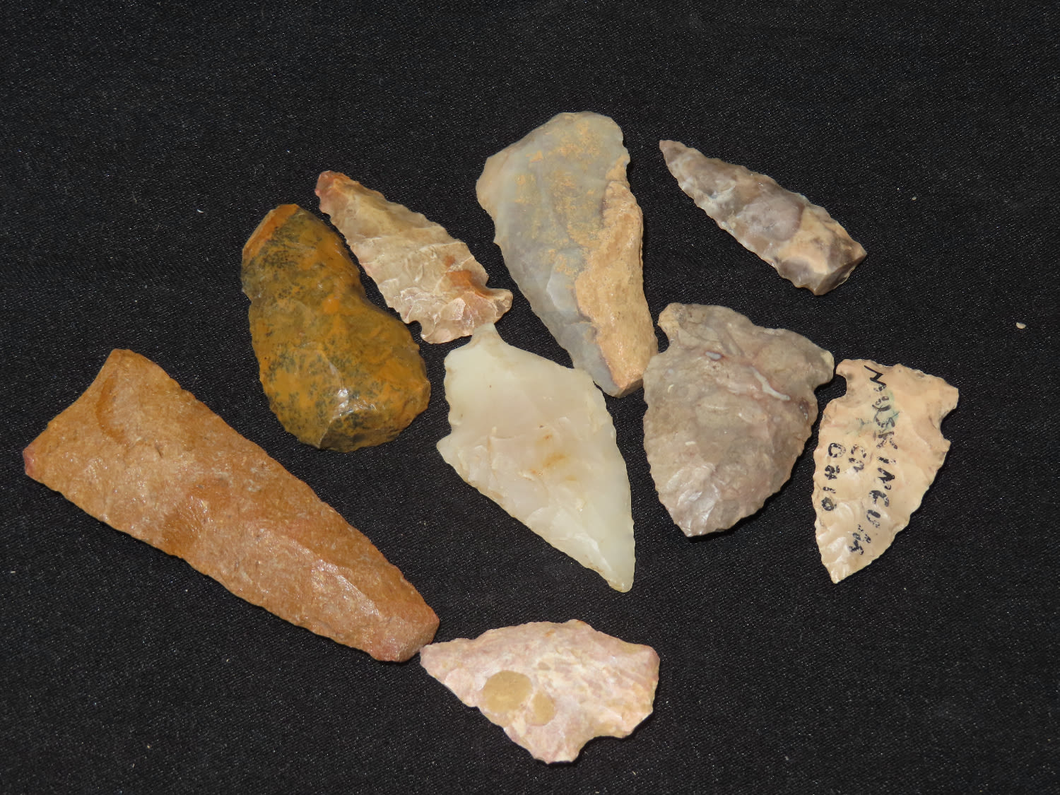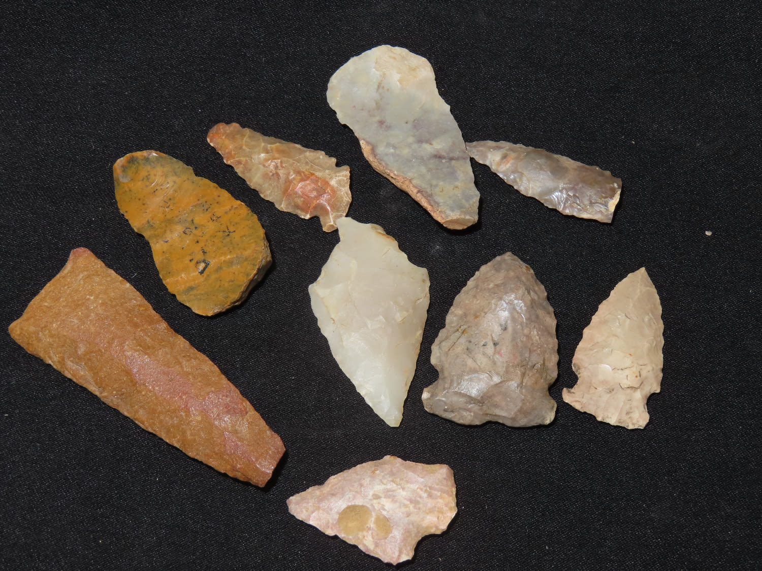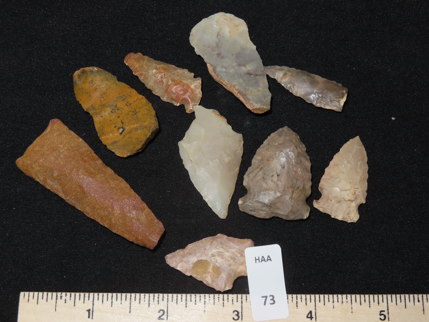 Grouping of Arrowheads, Ex Bill Kacer Family Collection-Majority of his relics were found by family, or purchased from Stan Copeland in the 60’s. The Kacer Family owned a landscaping business in Northern Illinois near Deerfiled for several generations.