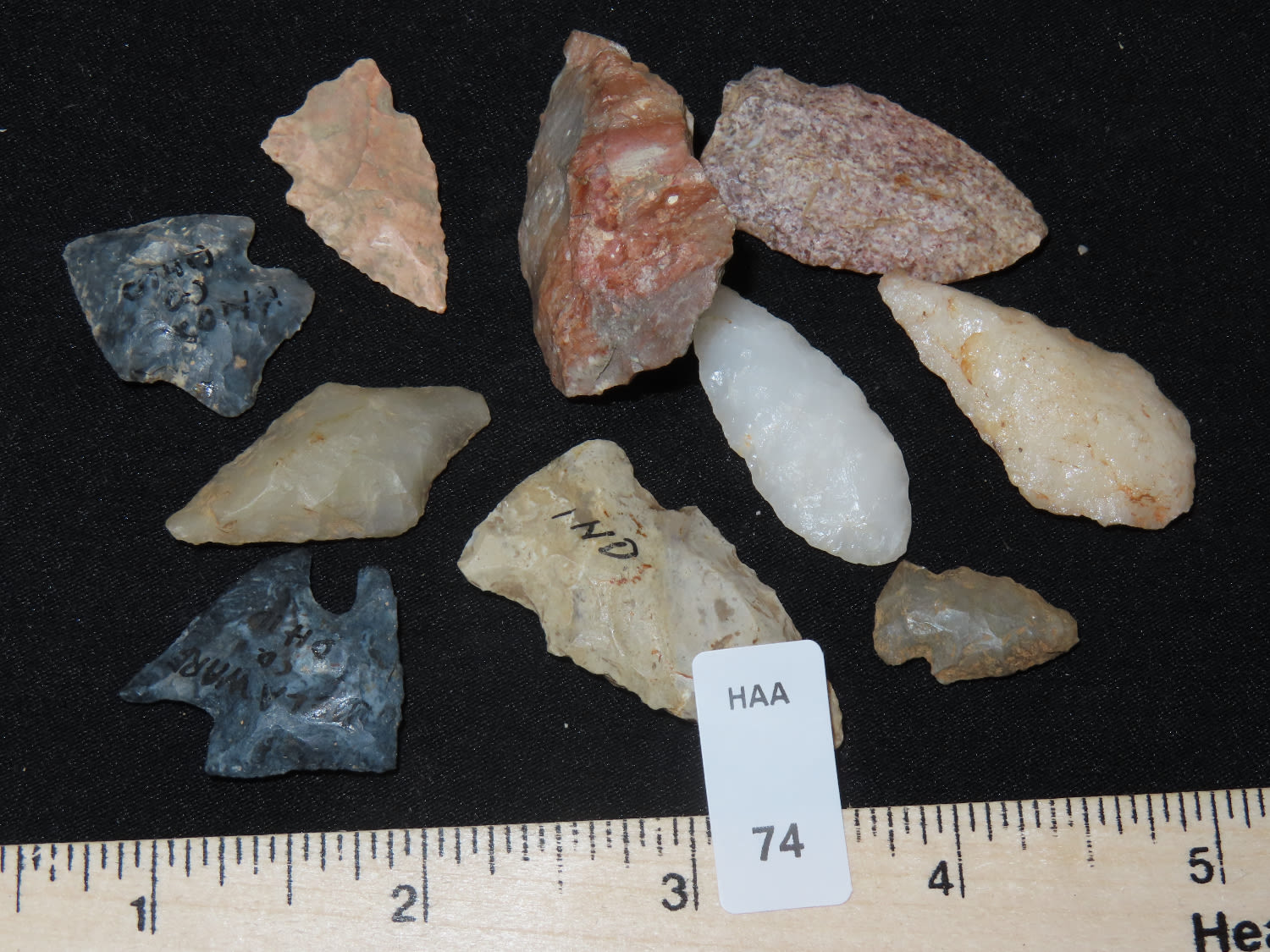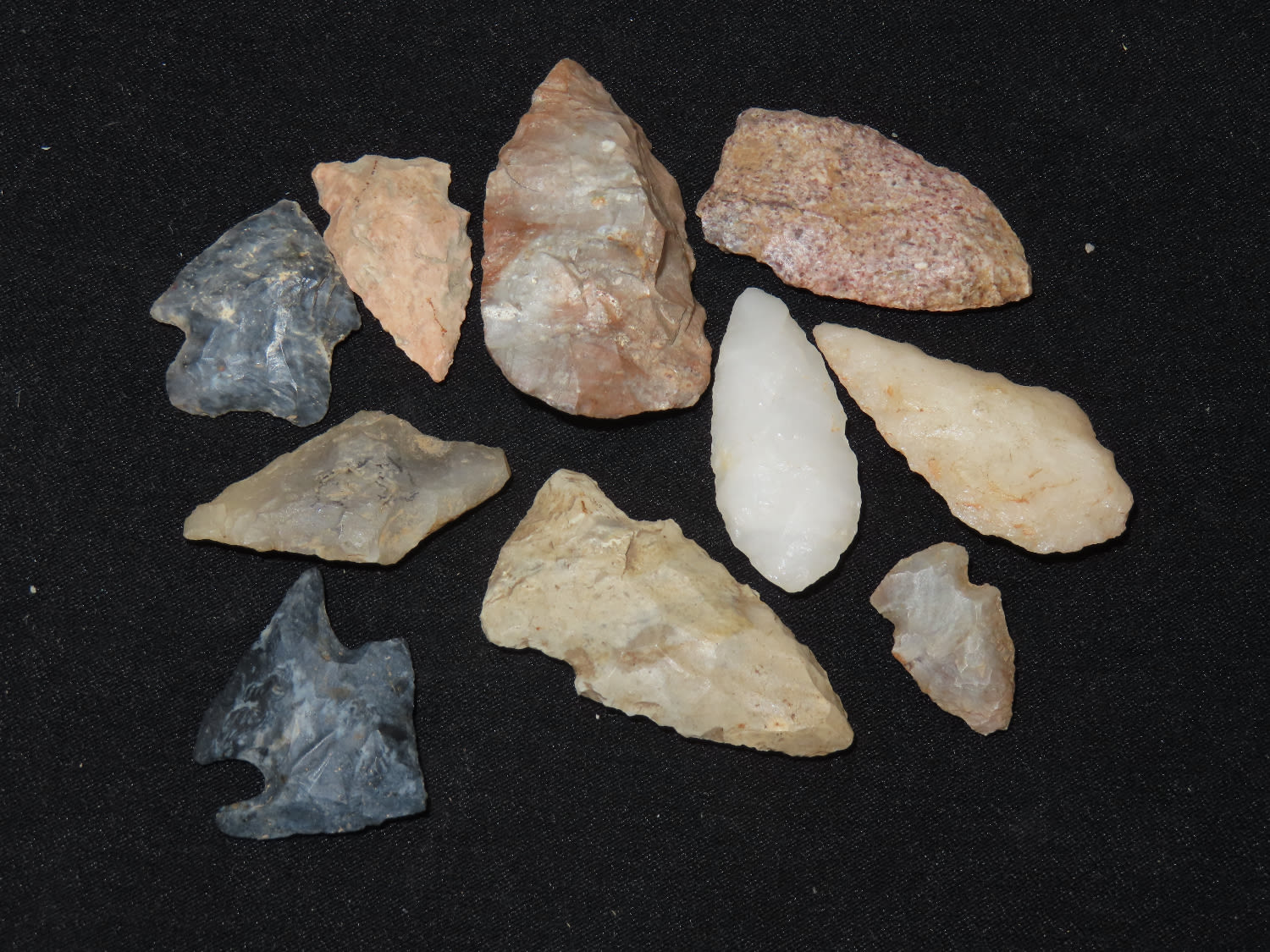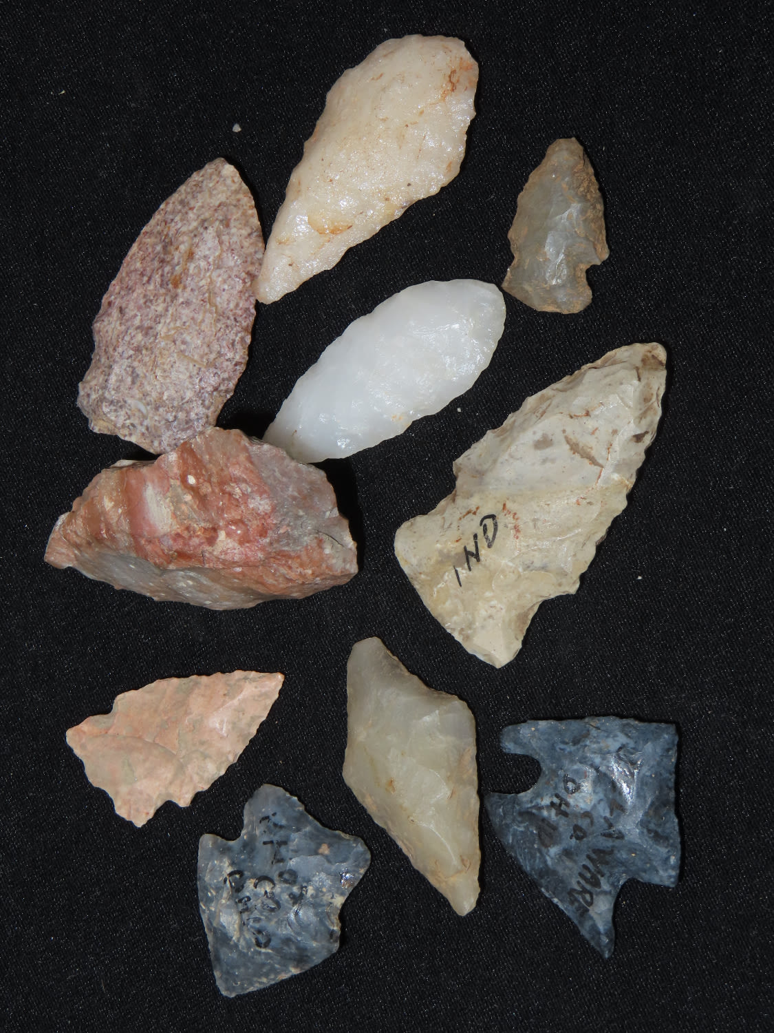 Grouping of Arrowheads, Ex Bill Kacer Family Collection-Majority of his relics were found by family, or purchased from Stan Copeland in the 60’s. The Kacer Family owned a landscaping business in Northern Illinois near Deerfiled for several generations.