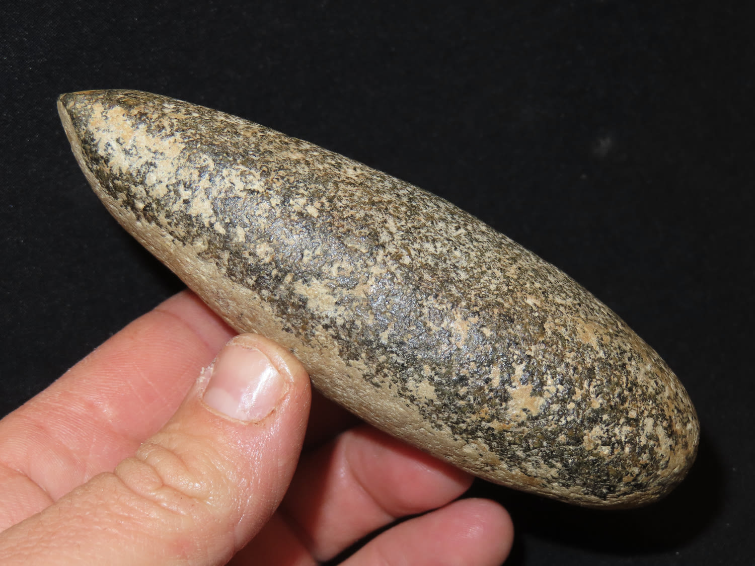 4.7/8″ Celt, Ex Bill Kacer Family Collection-Majority of his relics were found by family, or purchased from Stan Copeland in the 60’s. The Kacer Family owned a landscaping business in Northern Illinois near Deerfiled for several generations.